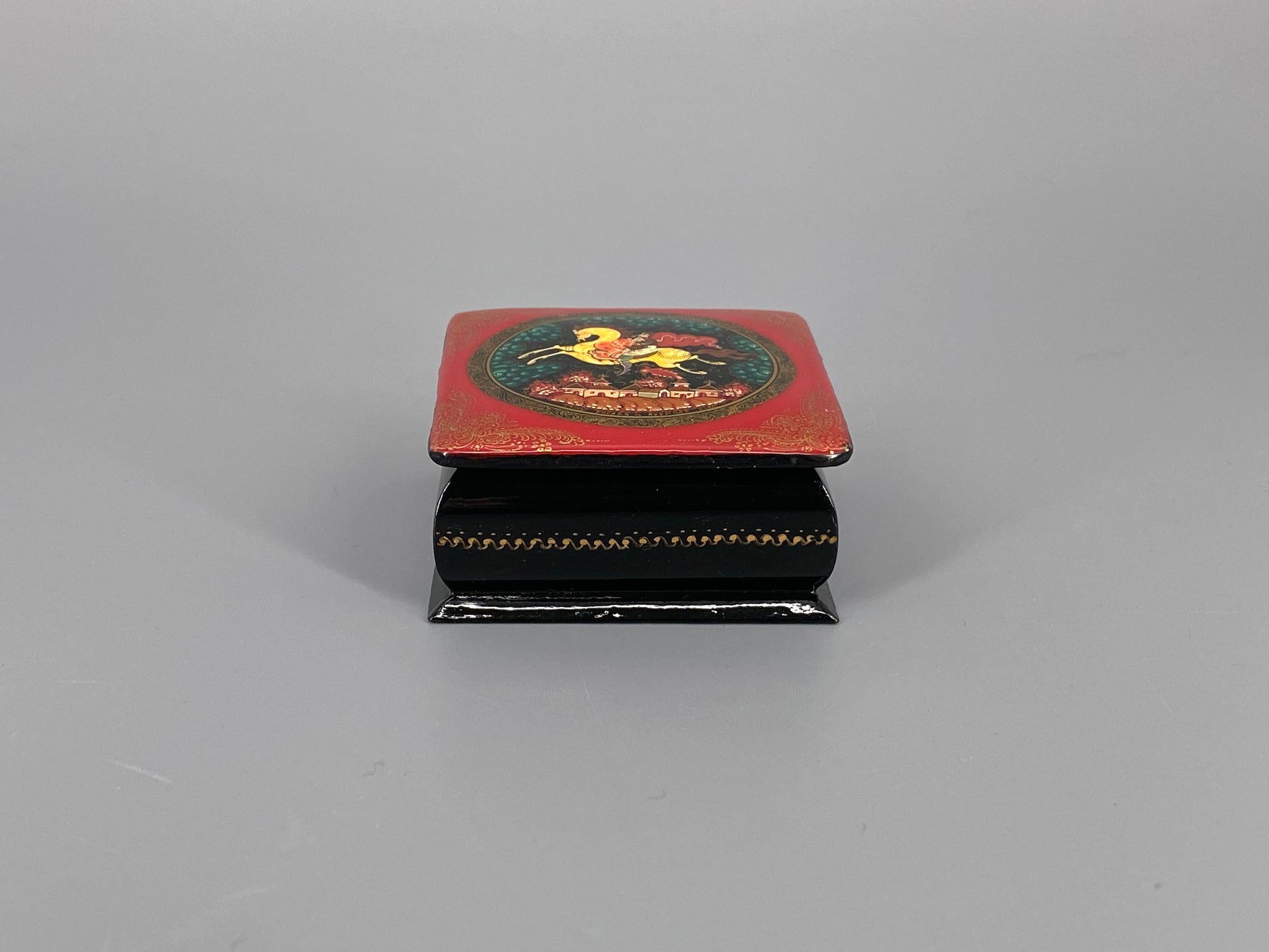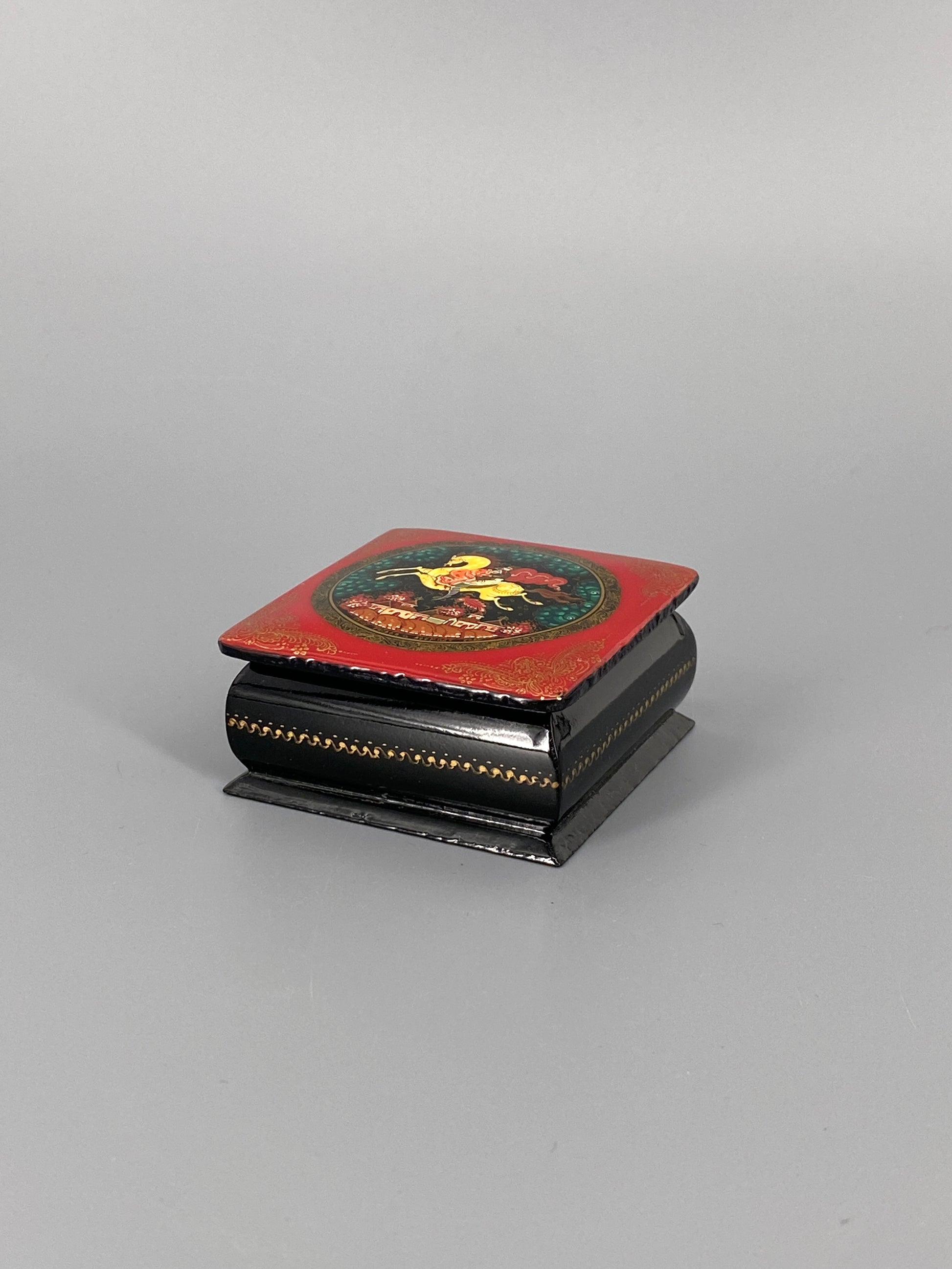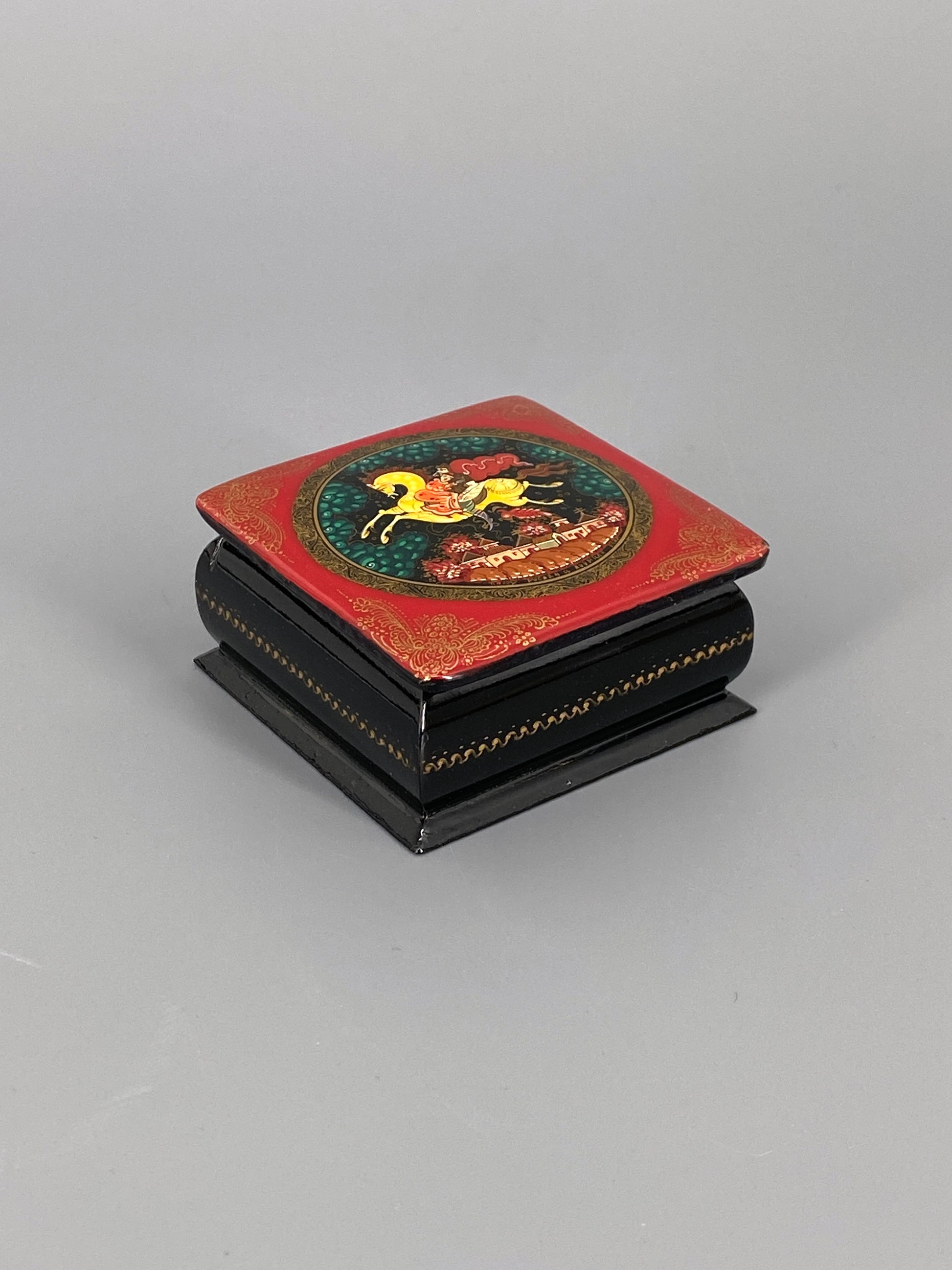 Russische, alte Lackdose mit Miniaturmalerei