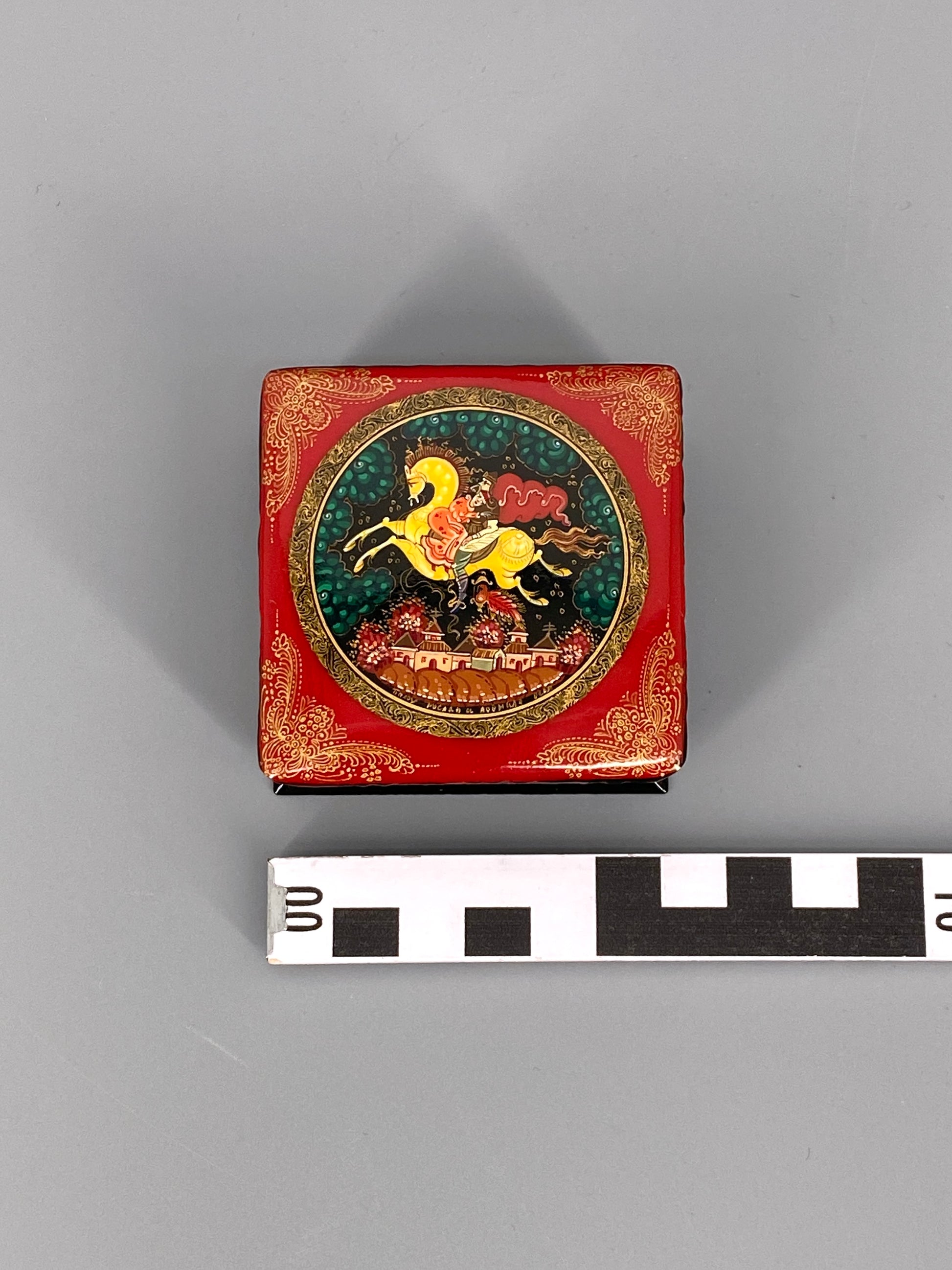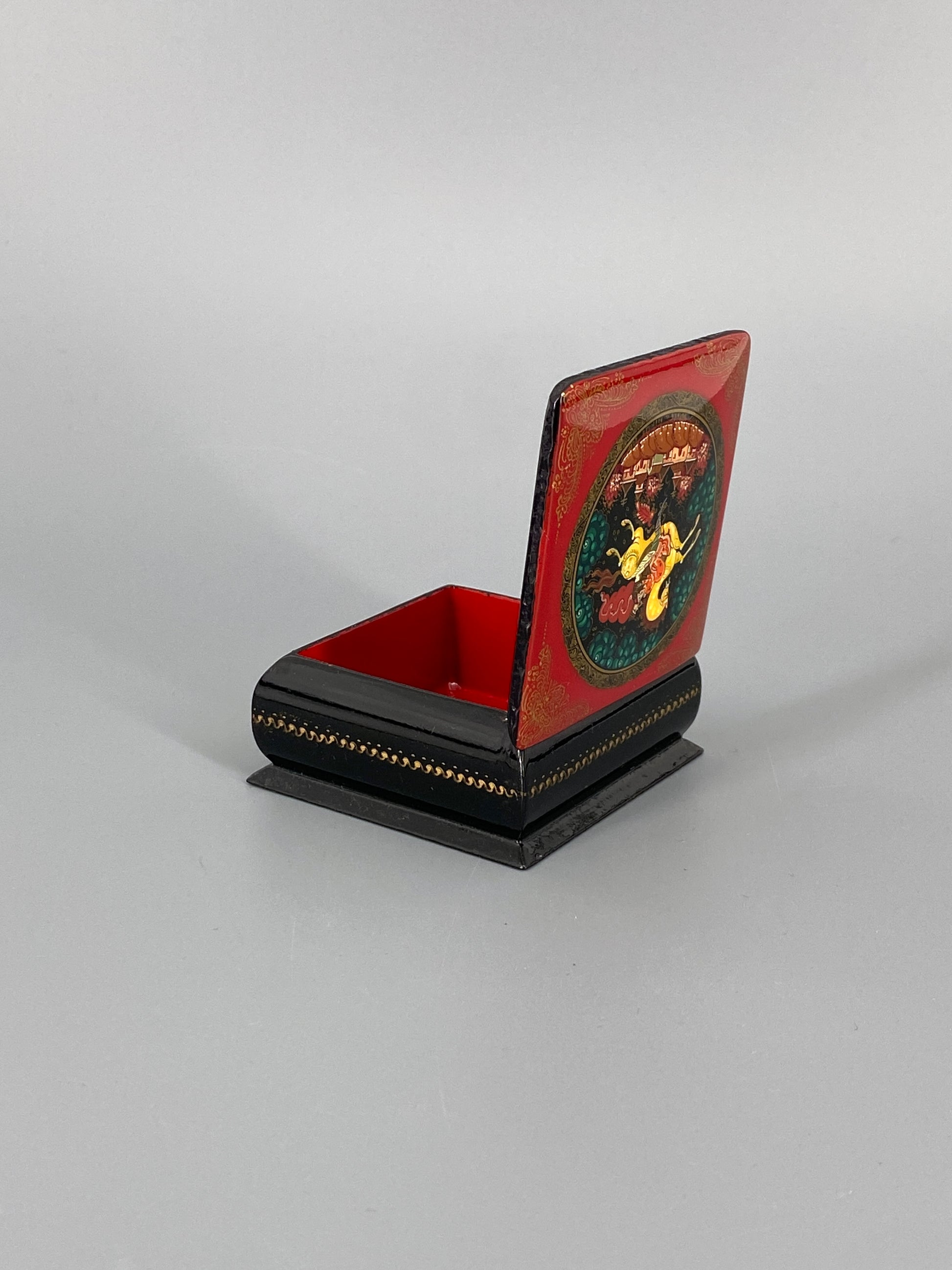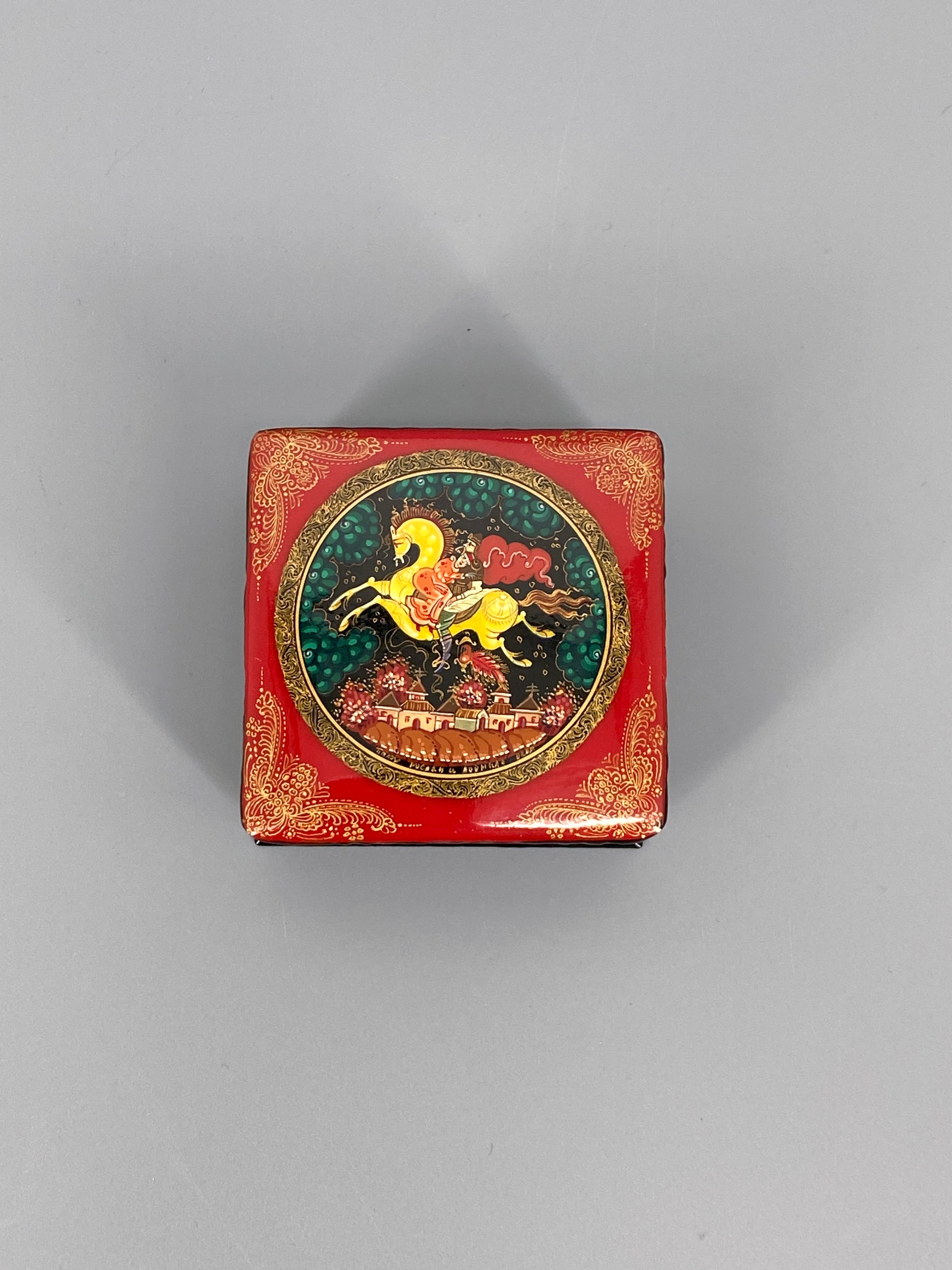 * ALTE RUSSISCHE LACKDOSE MINIATUR MALEREI MÄRCHEN HANDBEMALT