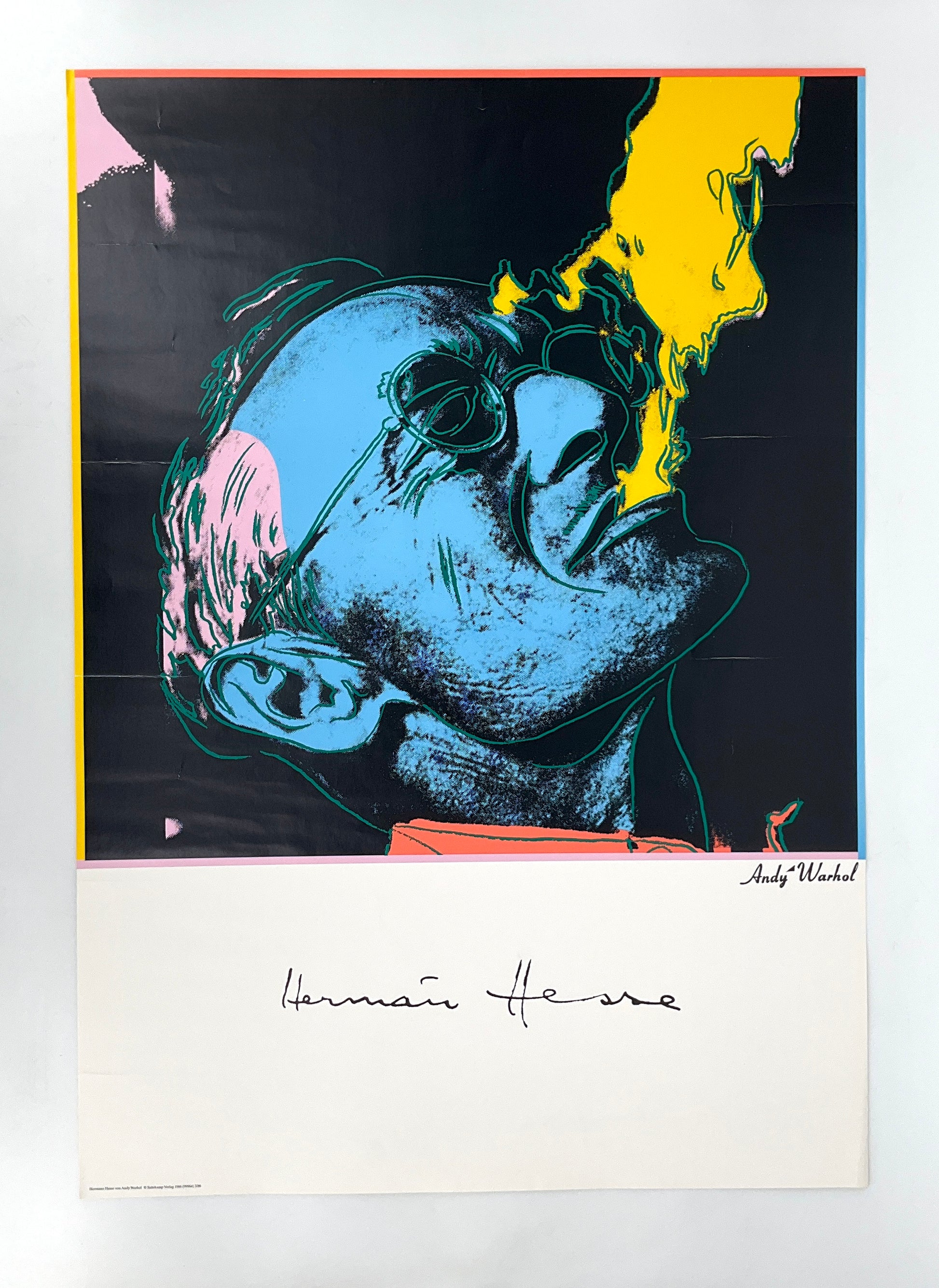* links unten Druckvermerk: „Hermann Hesse von Andy Warhol © Suhrkamp Verlag 1986 (99964) 3/86“