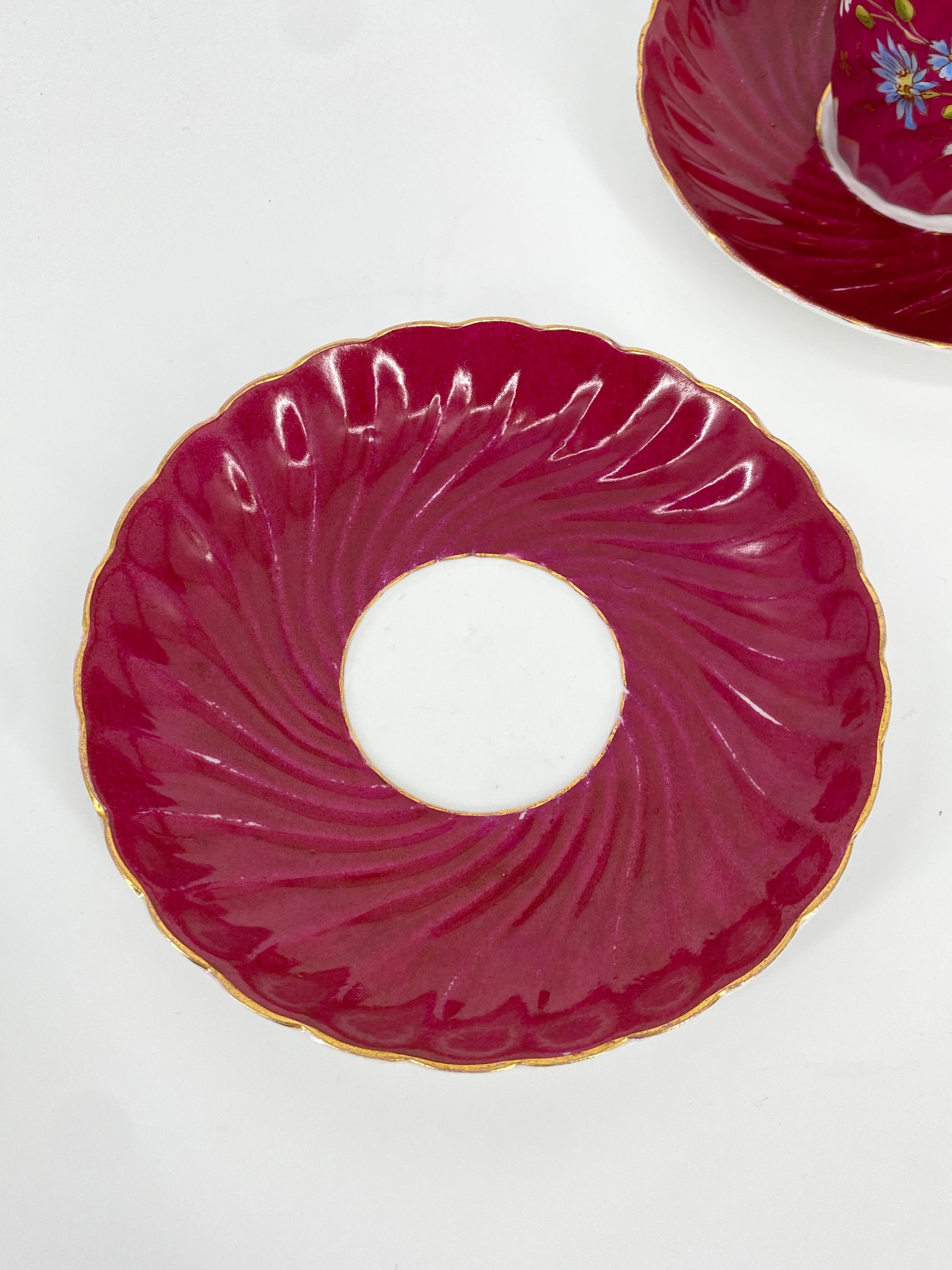 * eine Tasse mit zwei passenden Untertassen