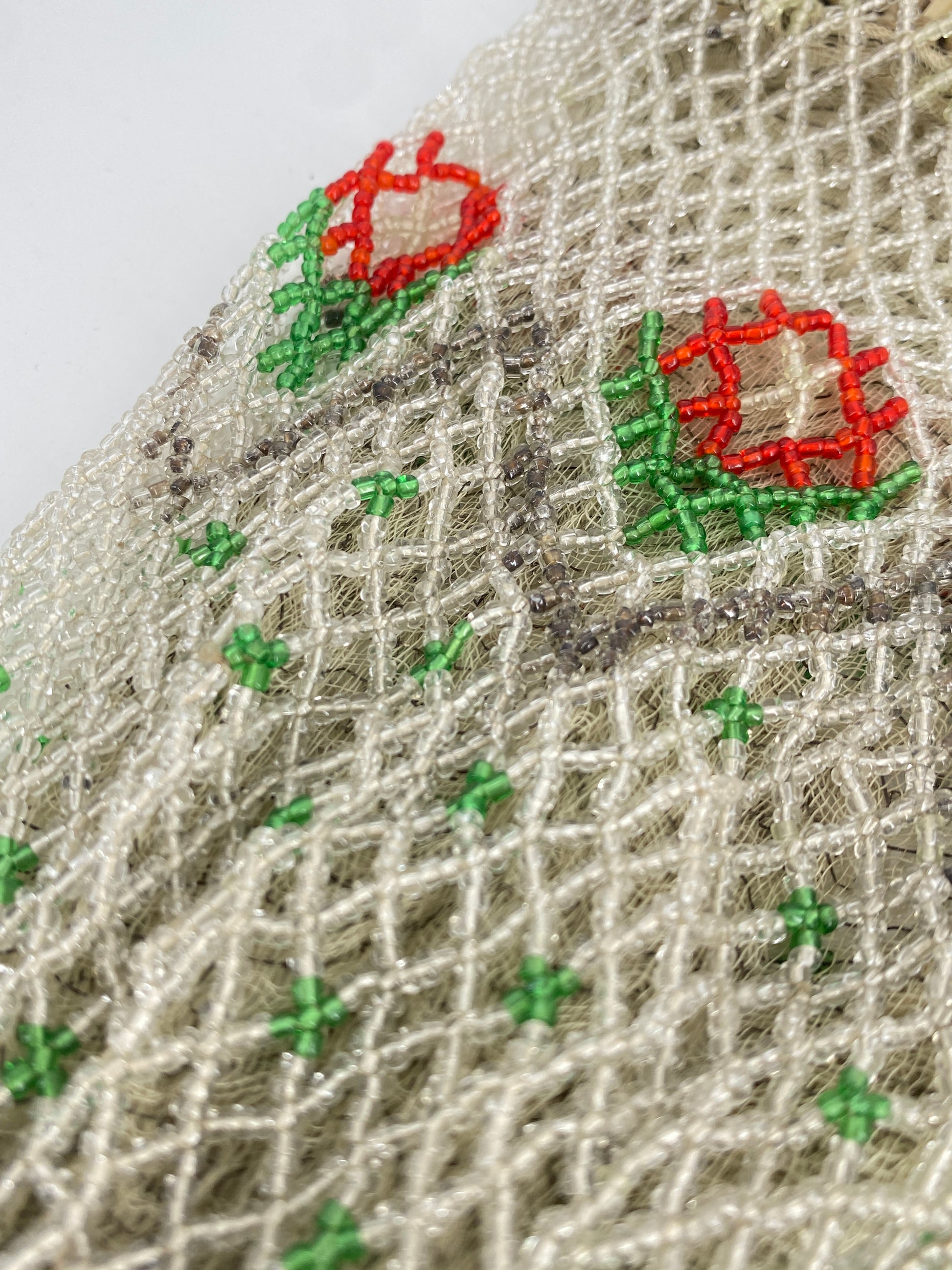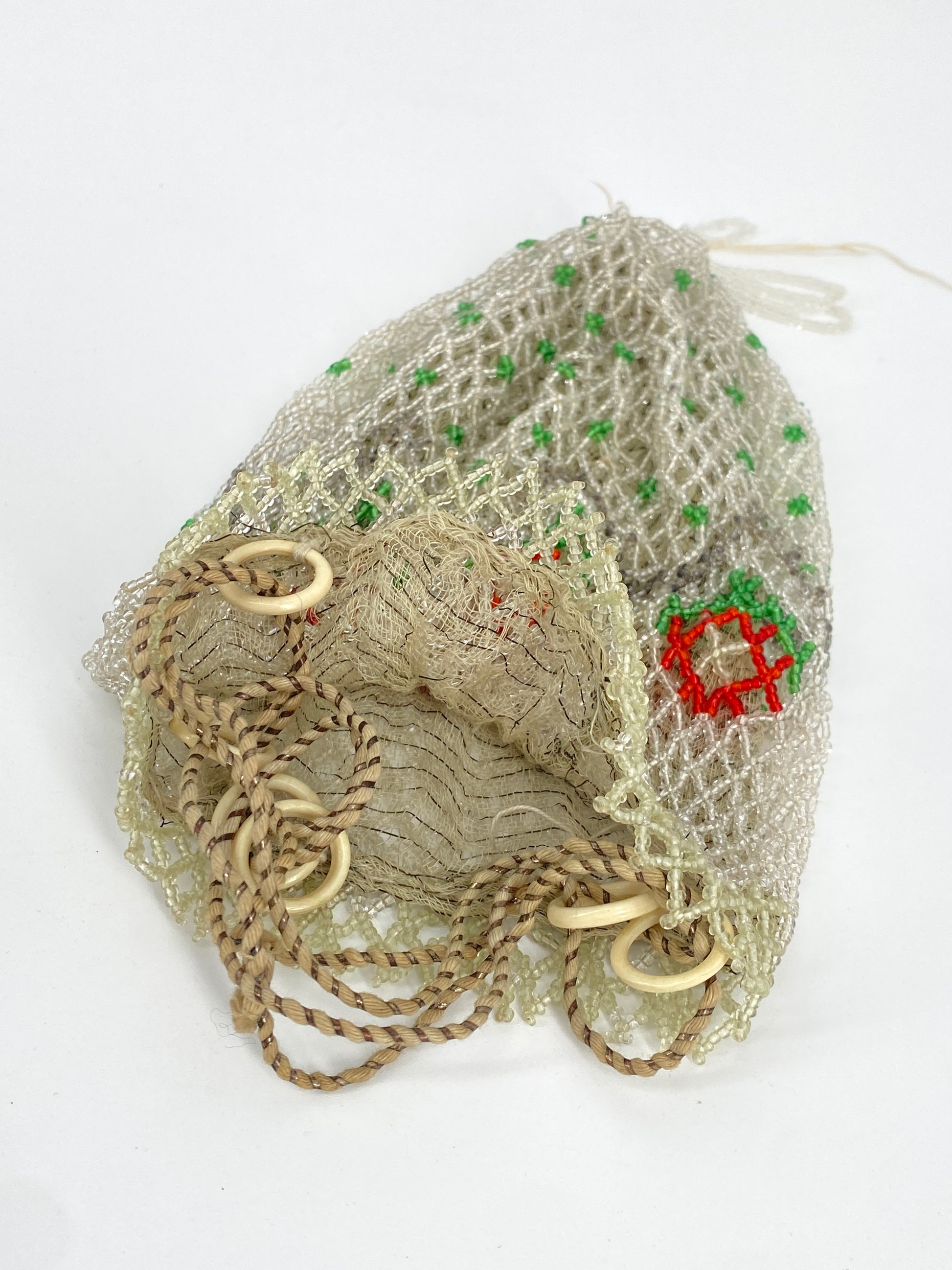 * kleiner Beutel aus einem filigranen Netz aus Glasperlen