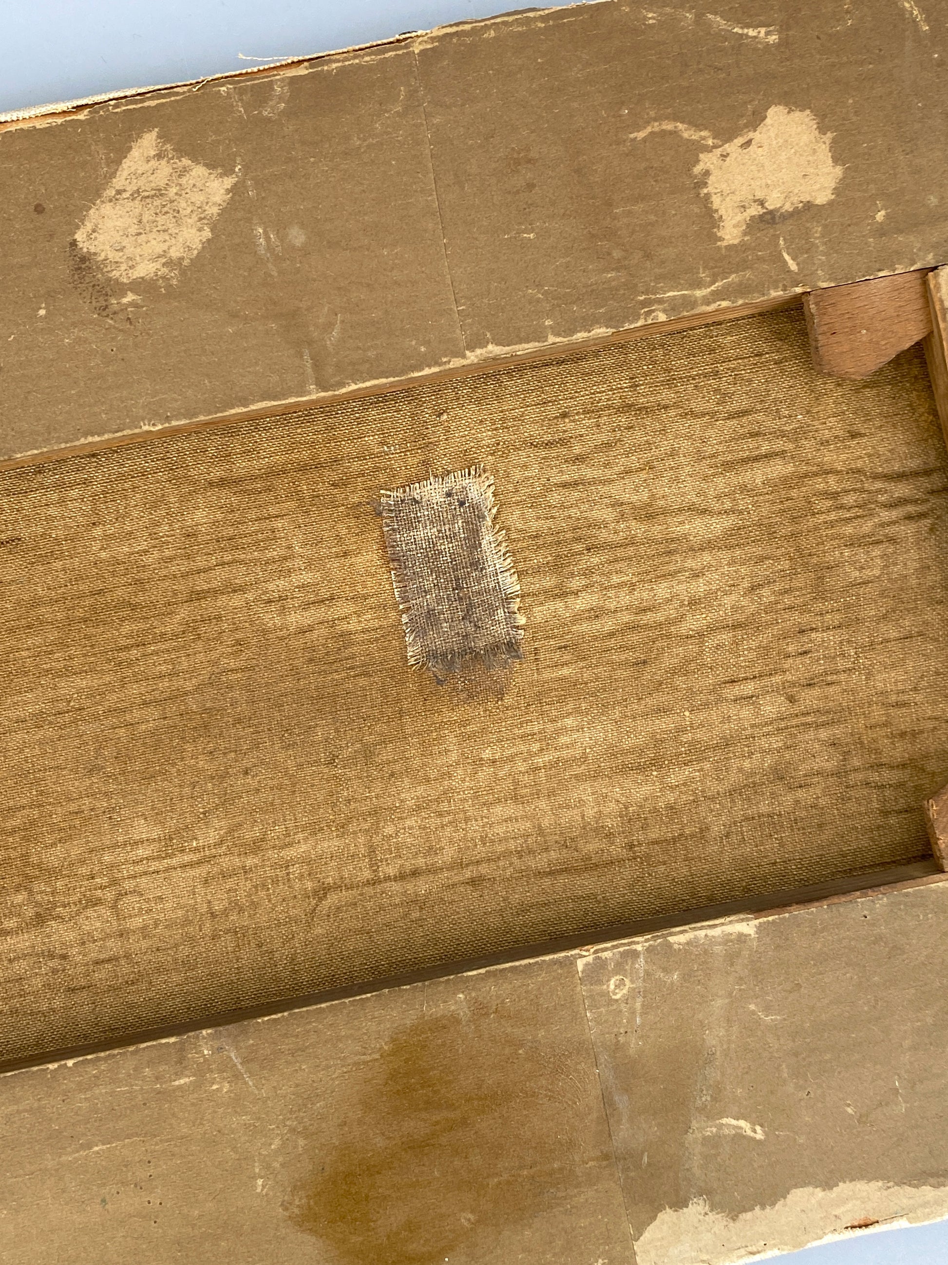 * eine ausgebesserte Stelle in der Leinwand, wurde sachgerecht retuschiert, siehe Fotos