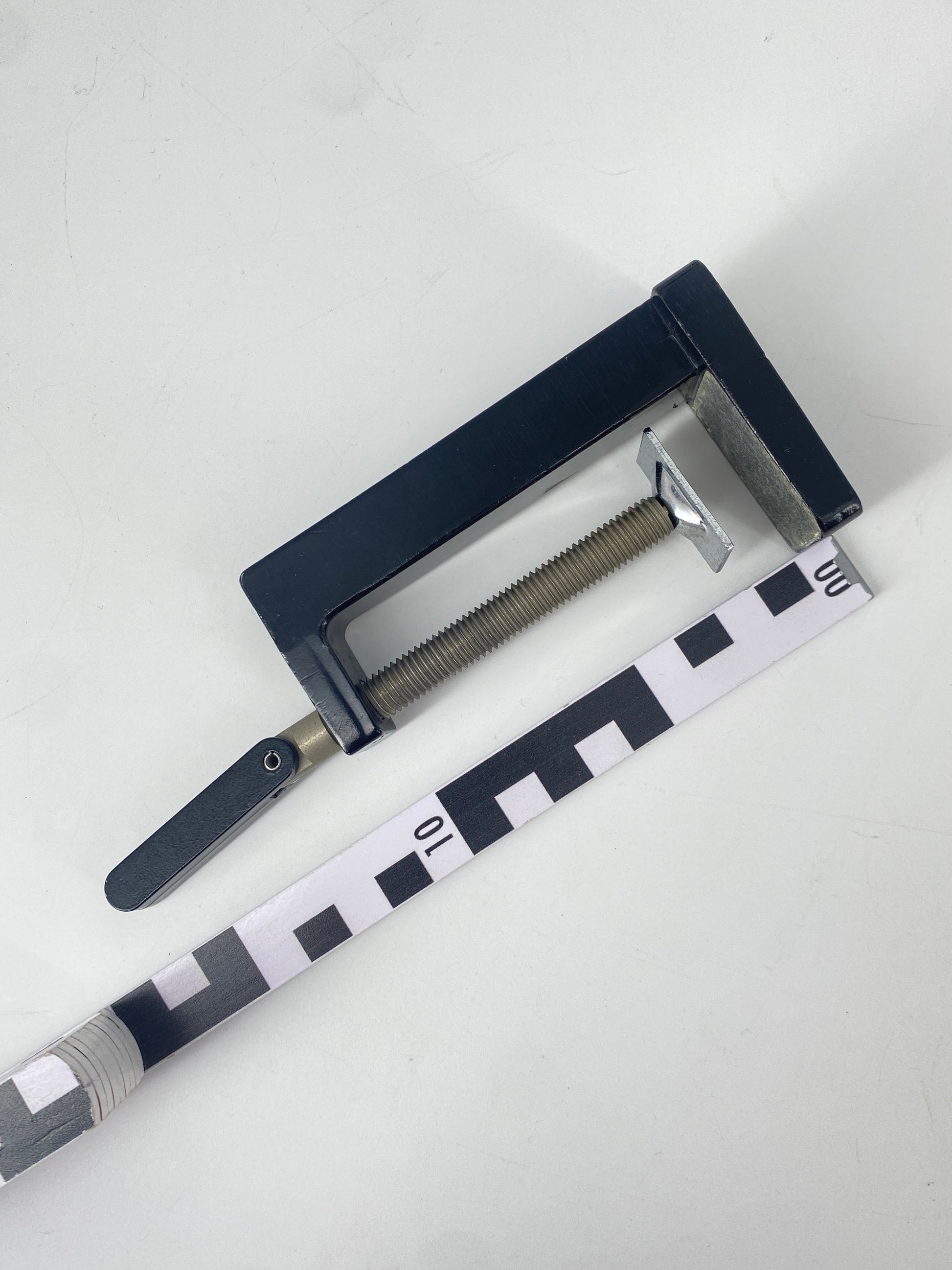 * schwarze Aufnahme mit Schraubzwinge zur Befestigung an der Tischplatte
