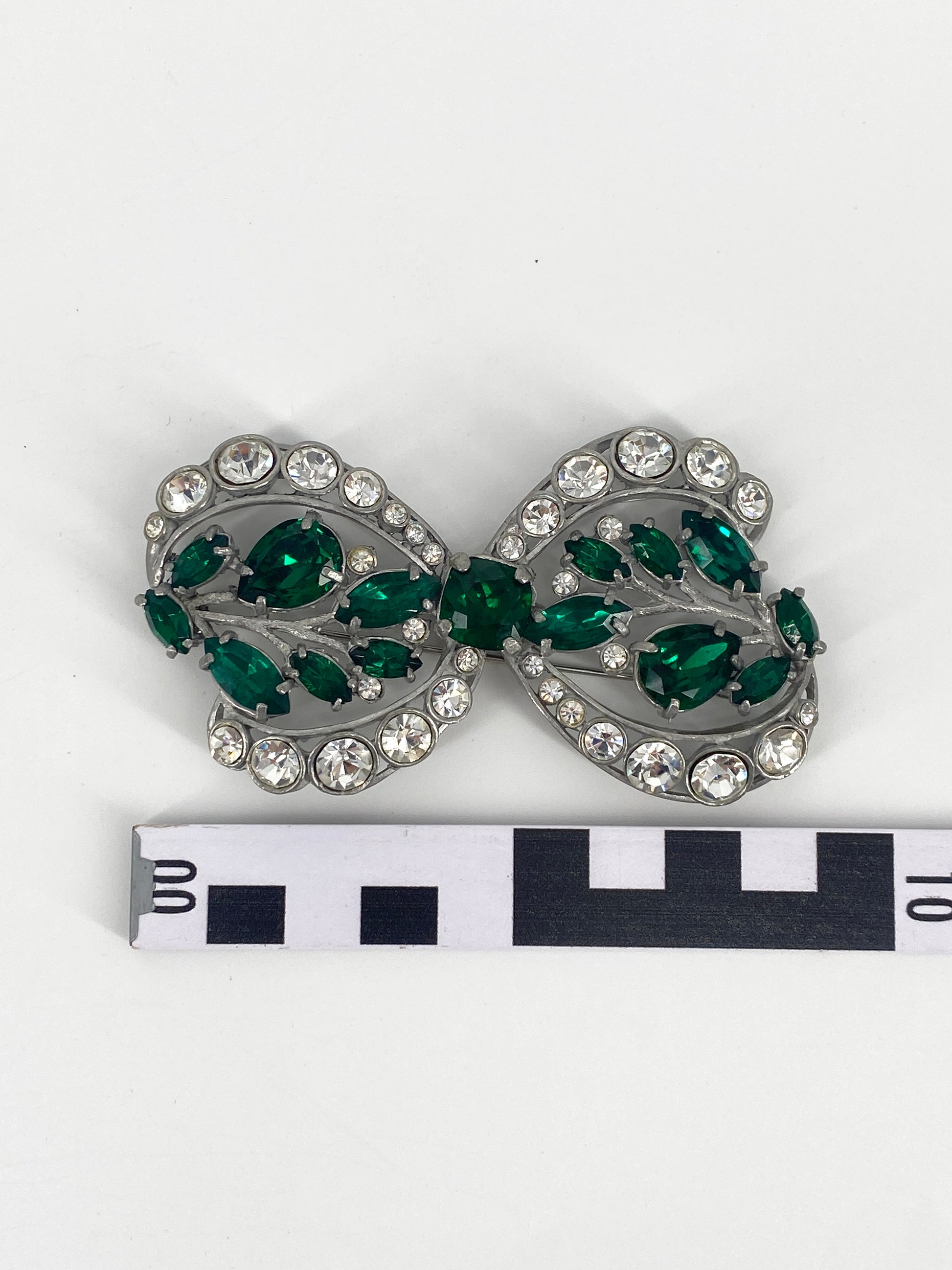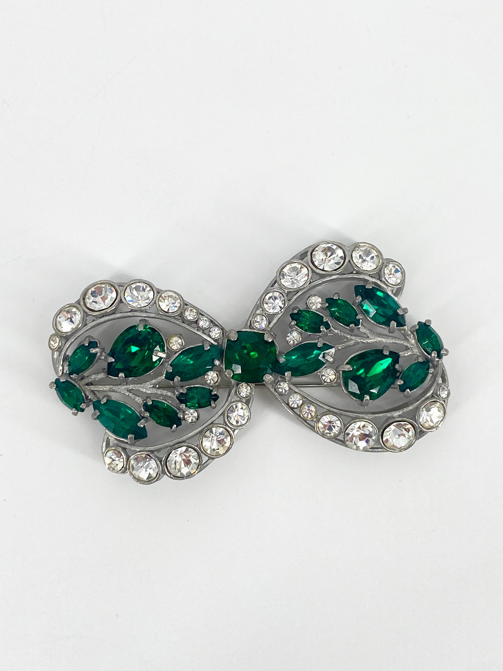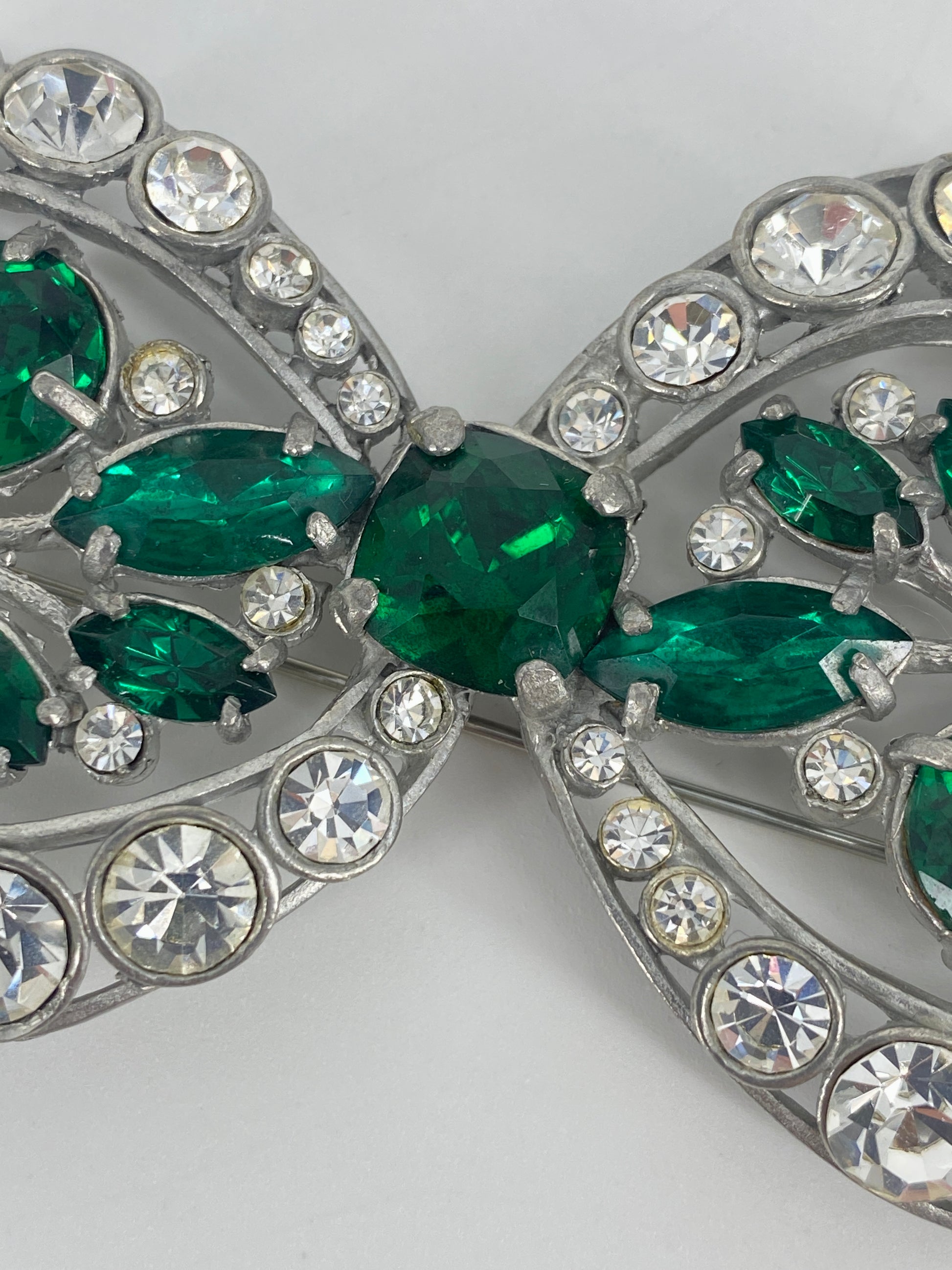 * GROßE ART DECO EISENBERG BROSCHE SCHLEIFE FLIEGE GRÜN VINTAGE 30ER 40ER