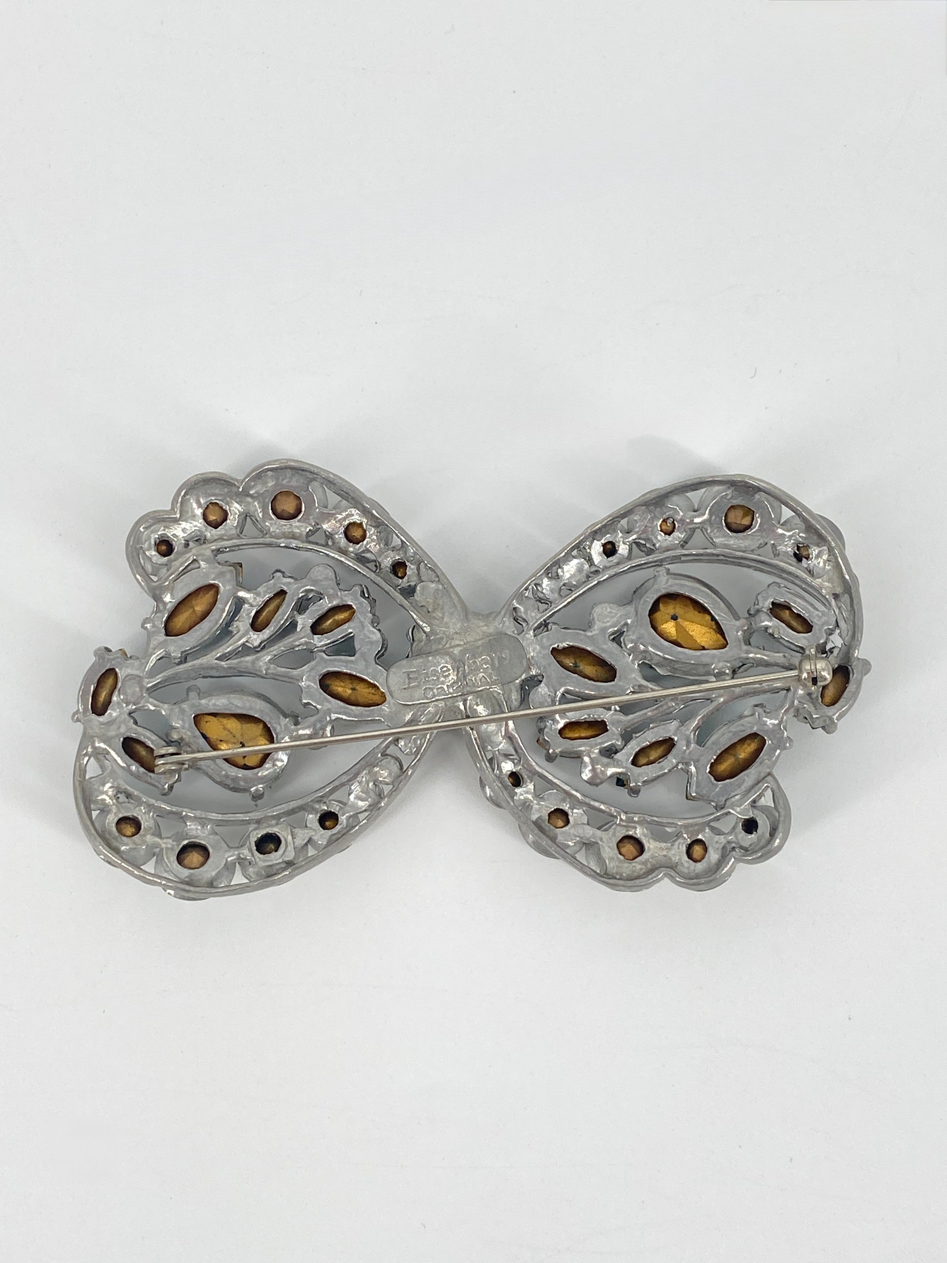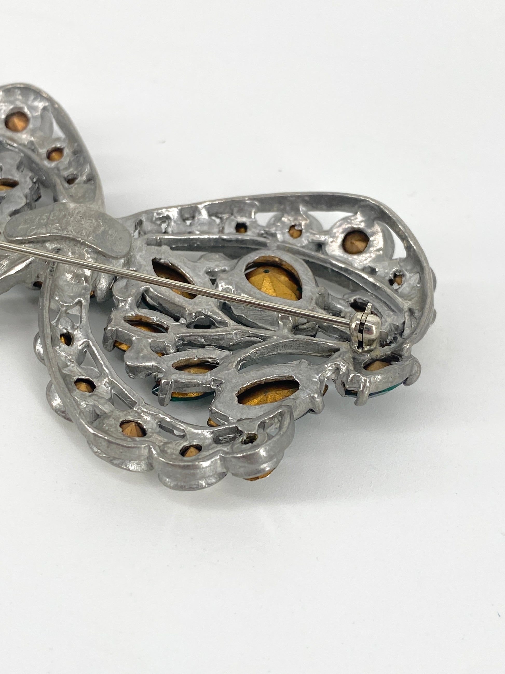 * große Brosche in Form einer Fliege oder Schleife mit Blätter Motiv