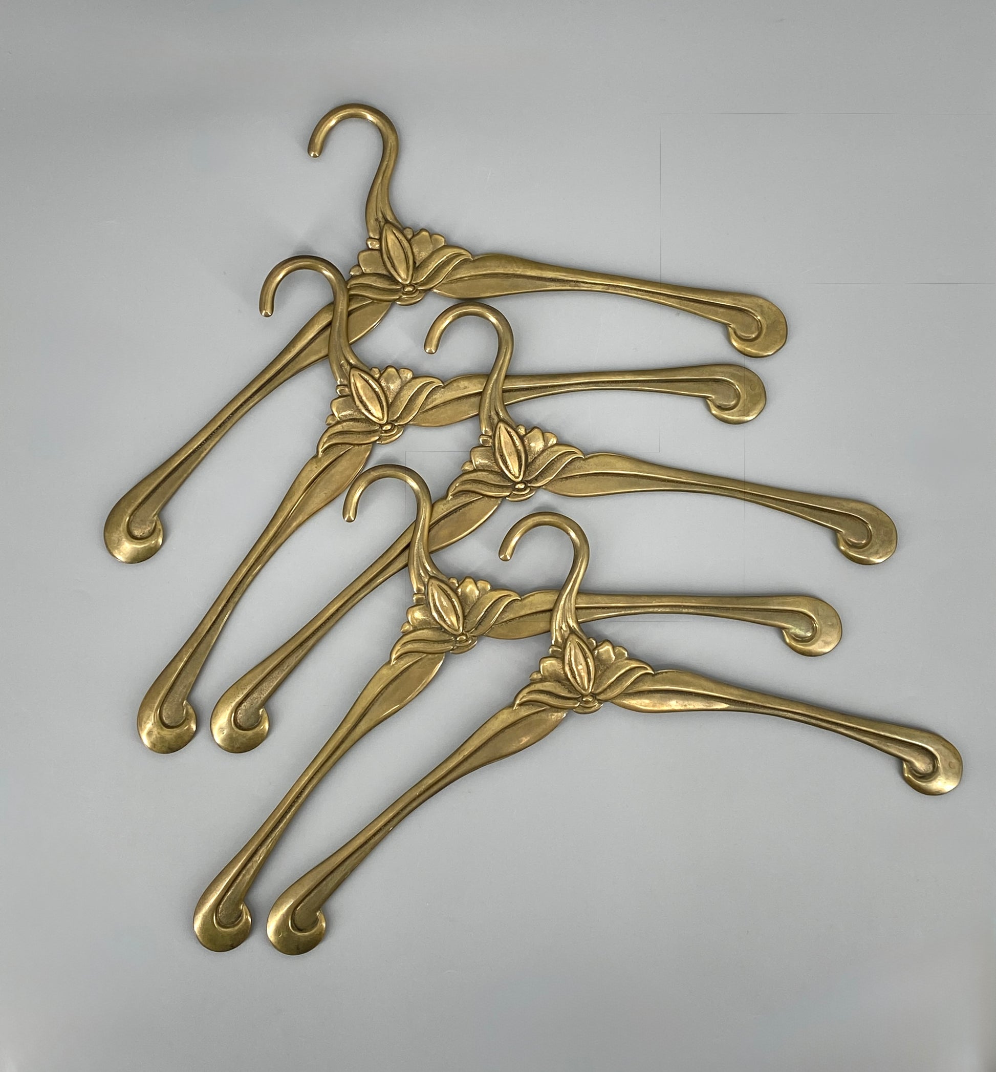 Art Deco / Jugendstil Kleiderbügel aus Messing, 5 Stk.