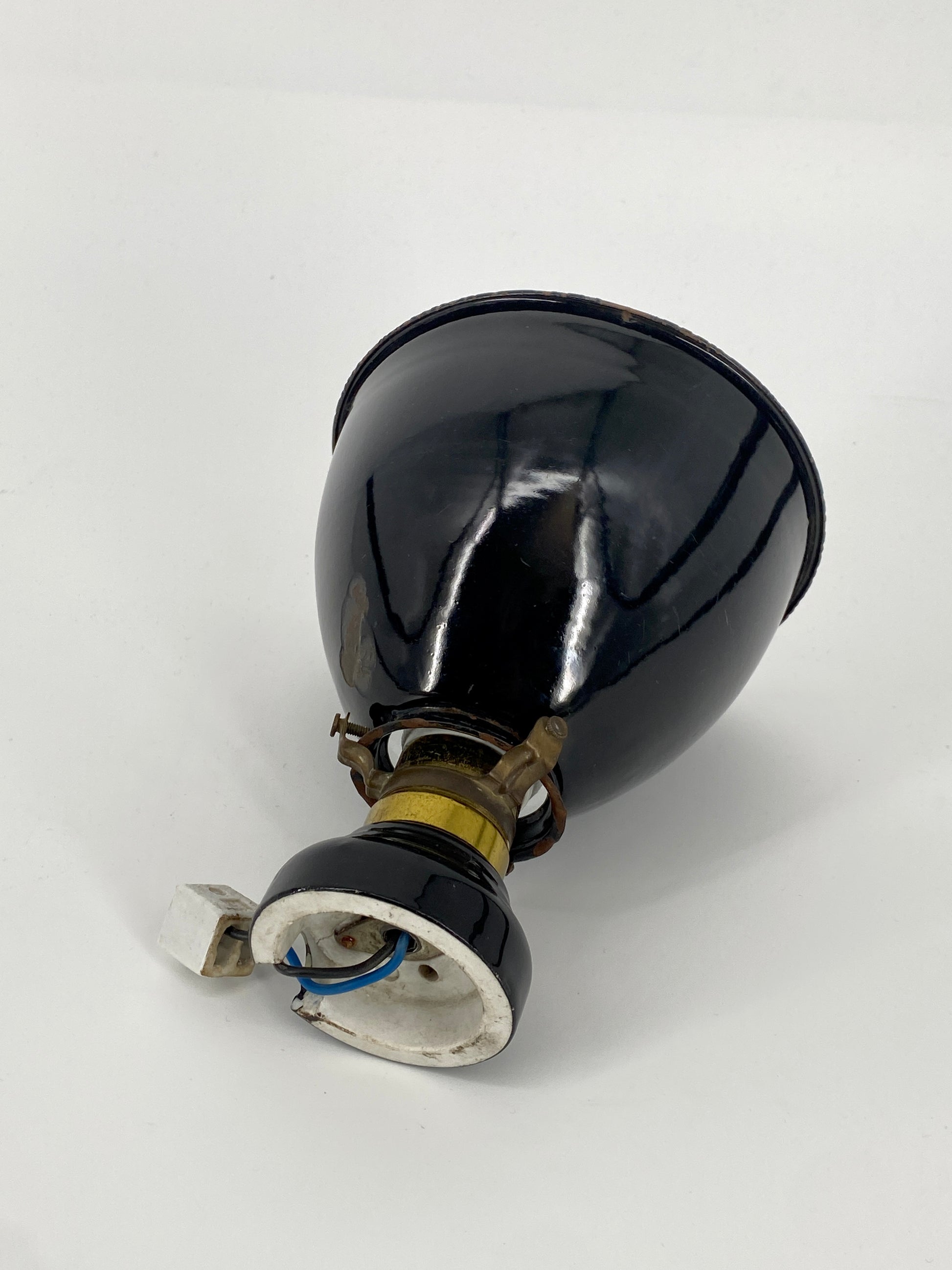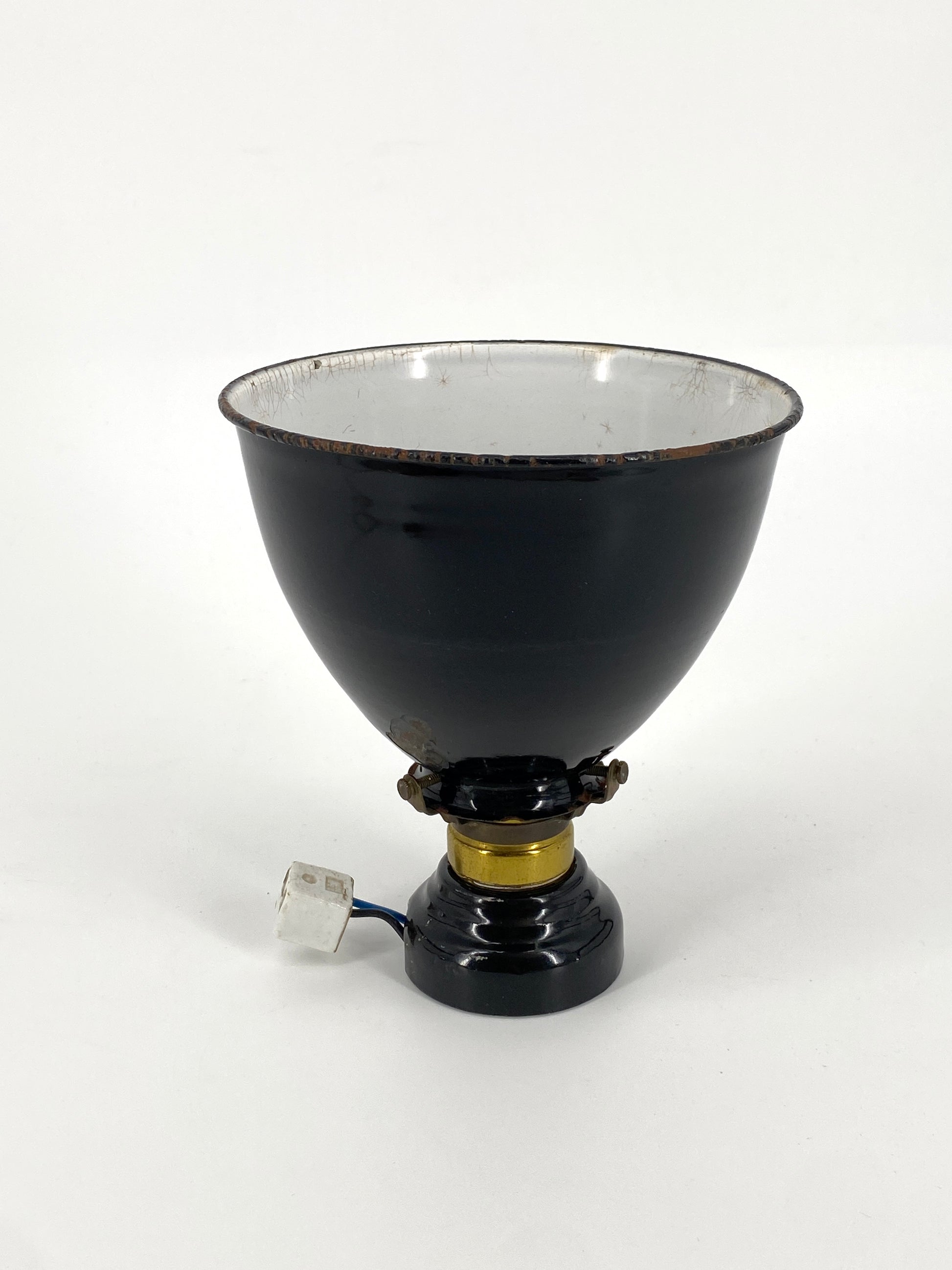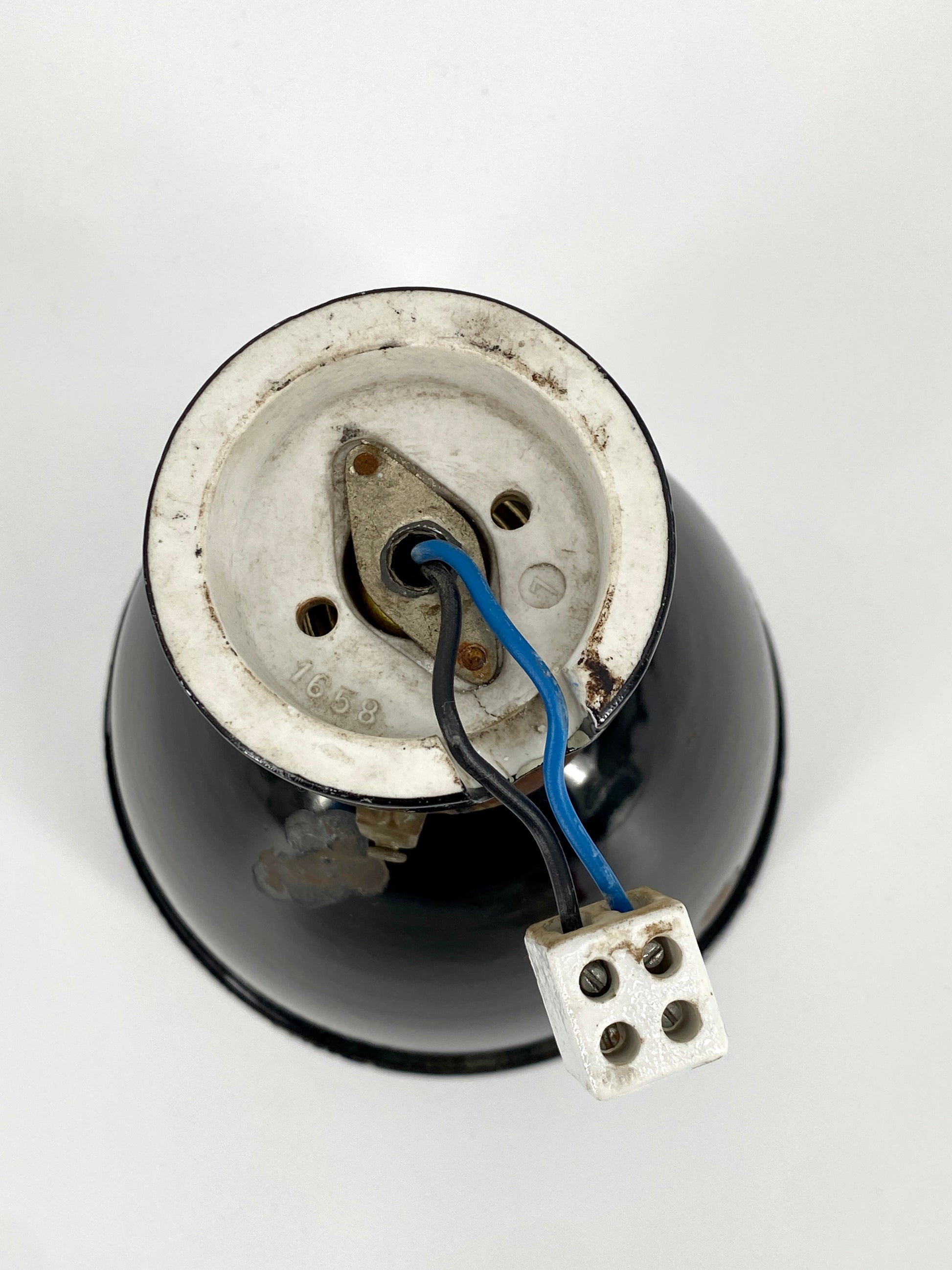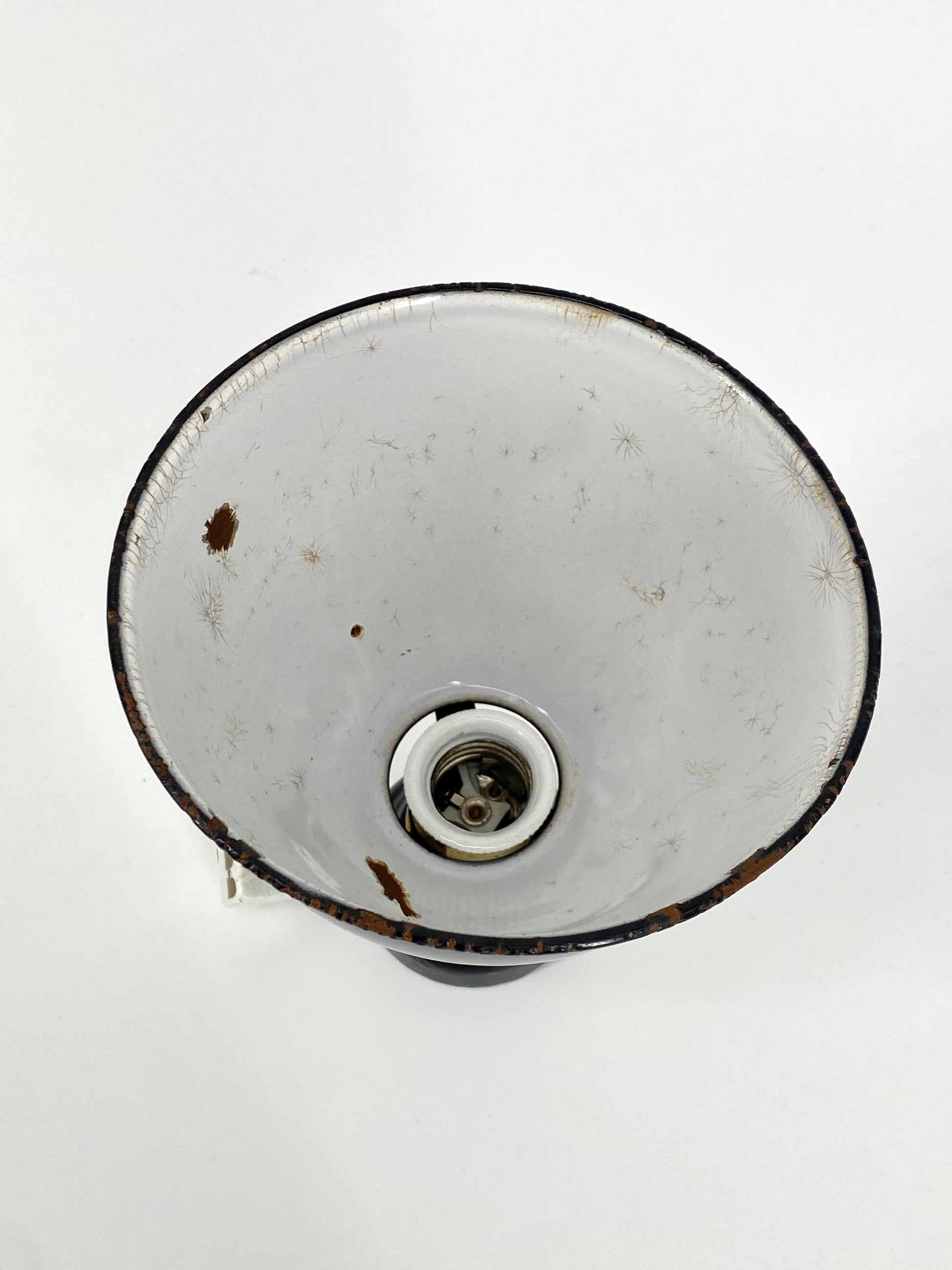 Bauhaus Decken- oder Wandlampe aus Emaille mit Keramiksockel