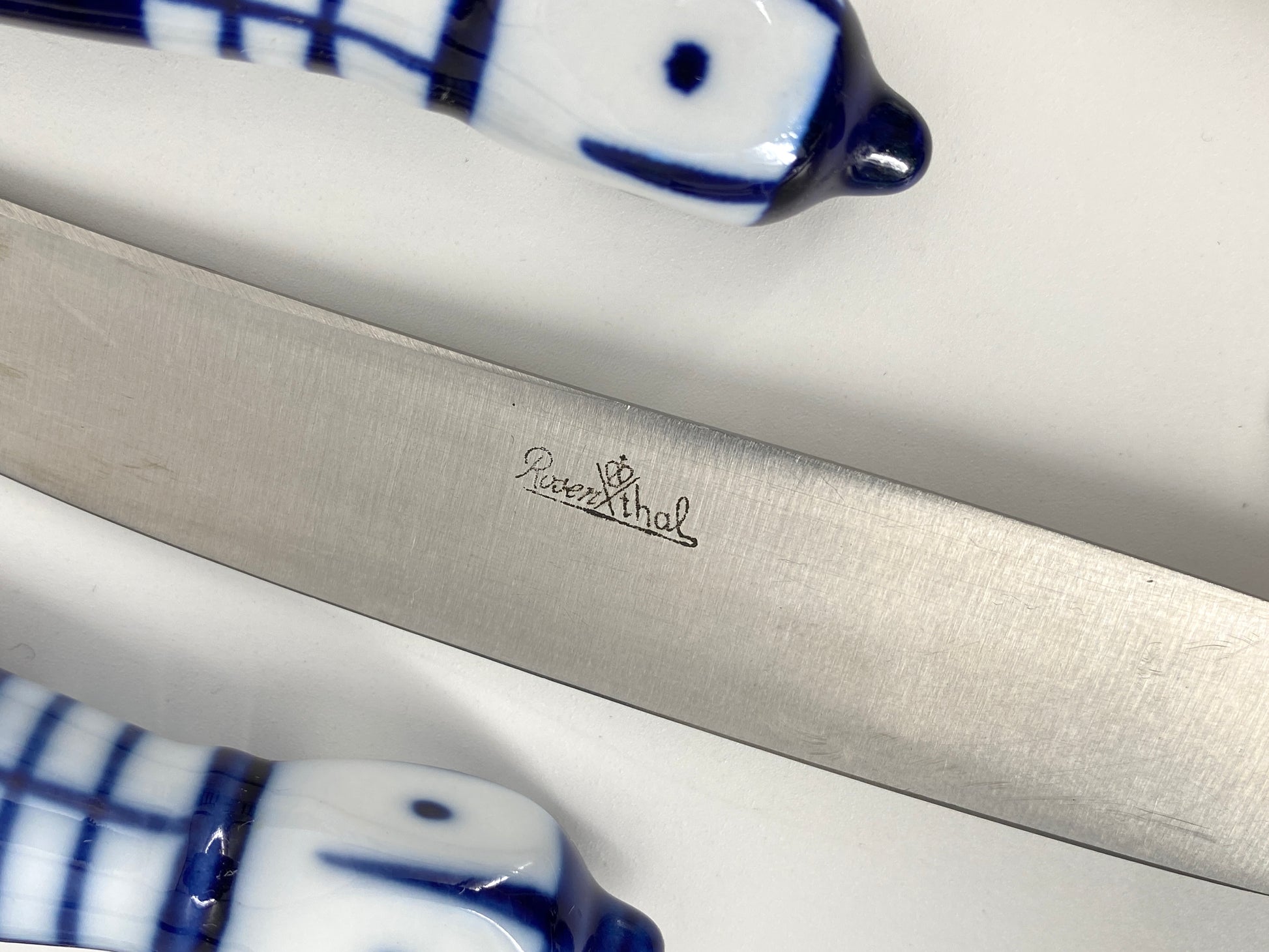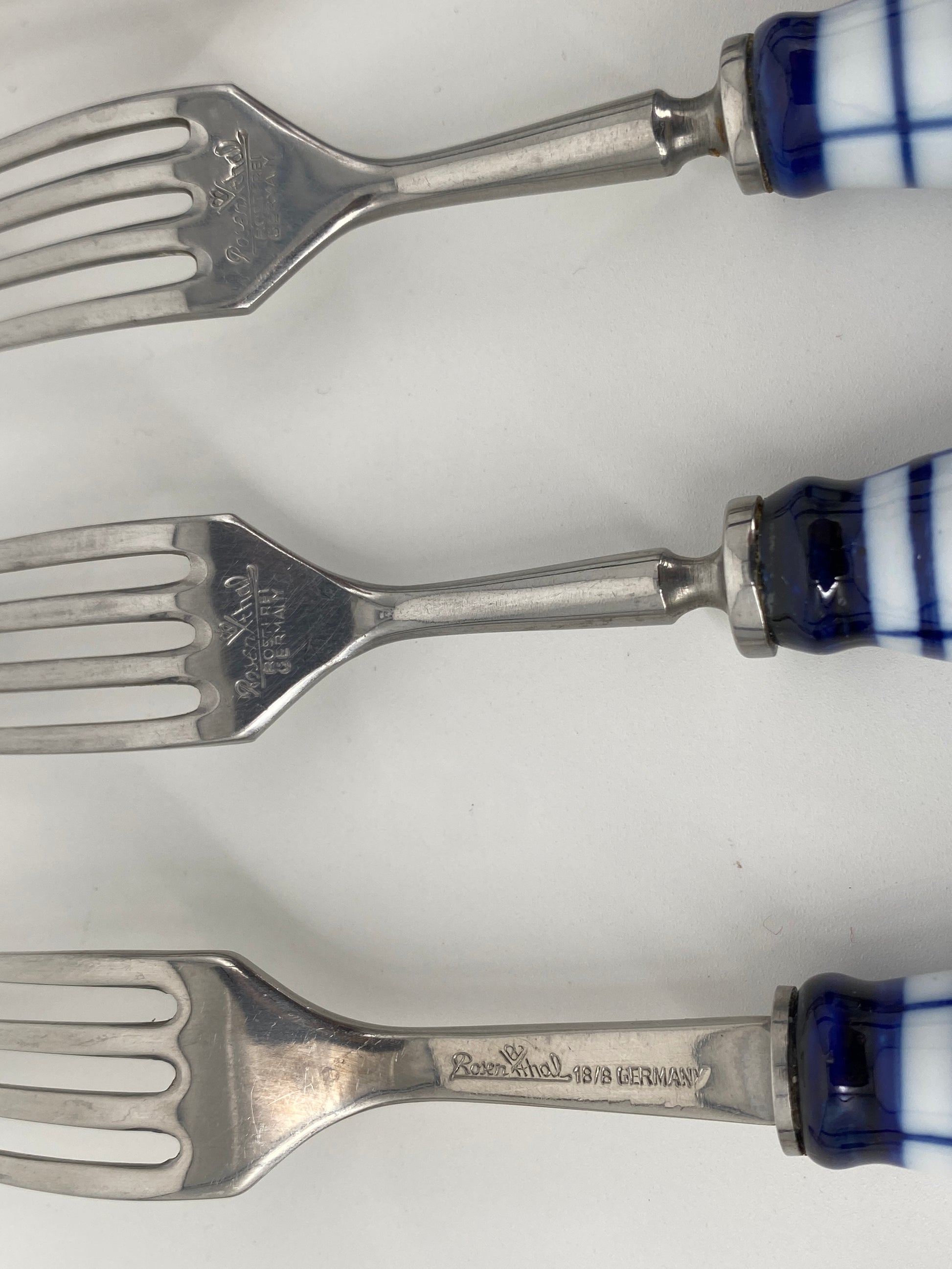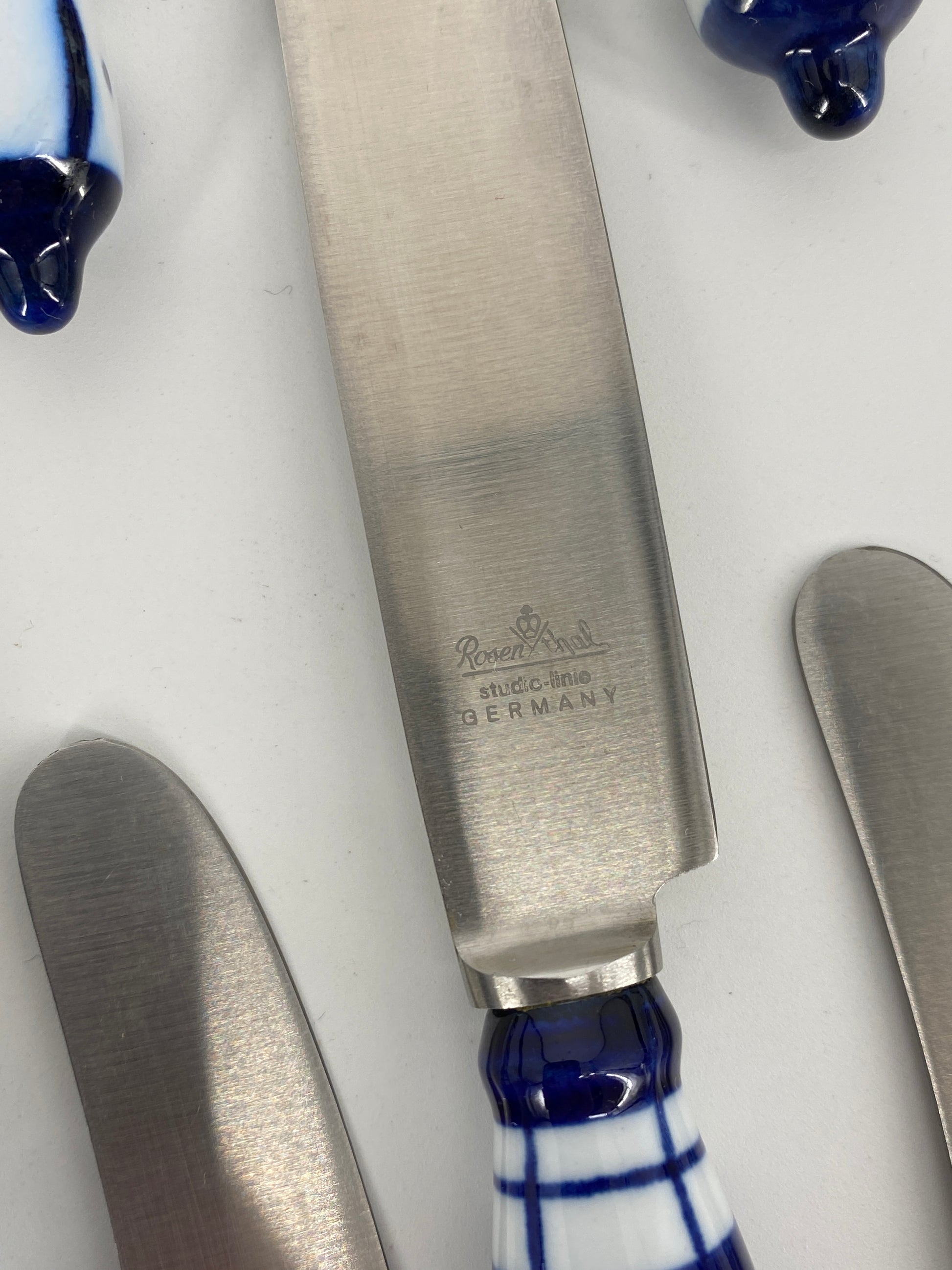 * die Griffstücke sind aus weißem Porzellan mit kobaltblauer Bemalung