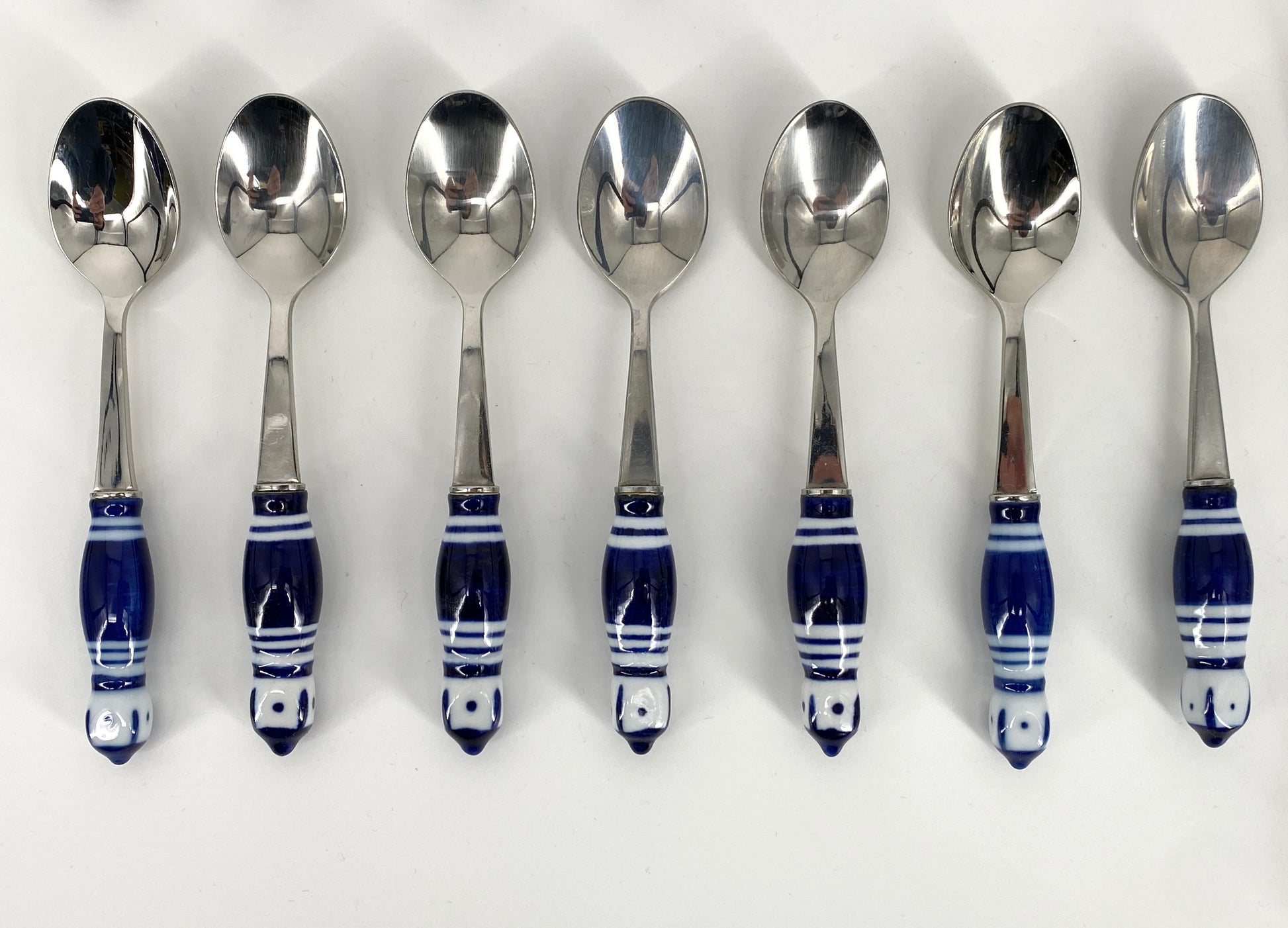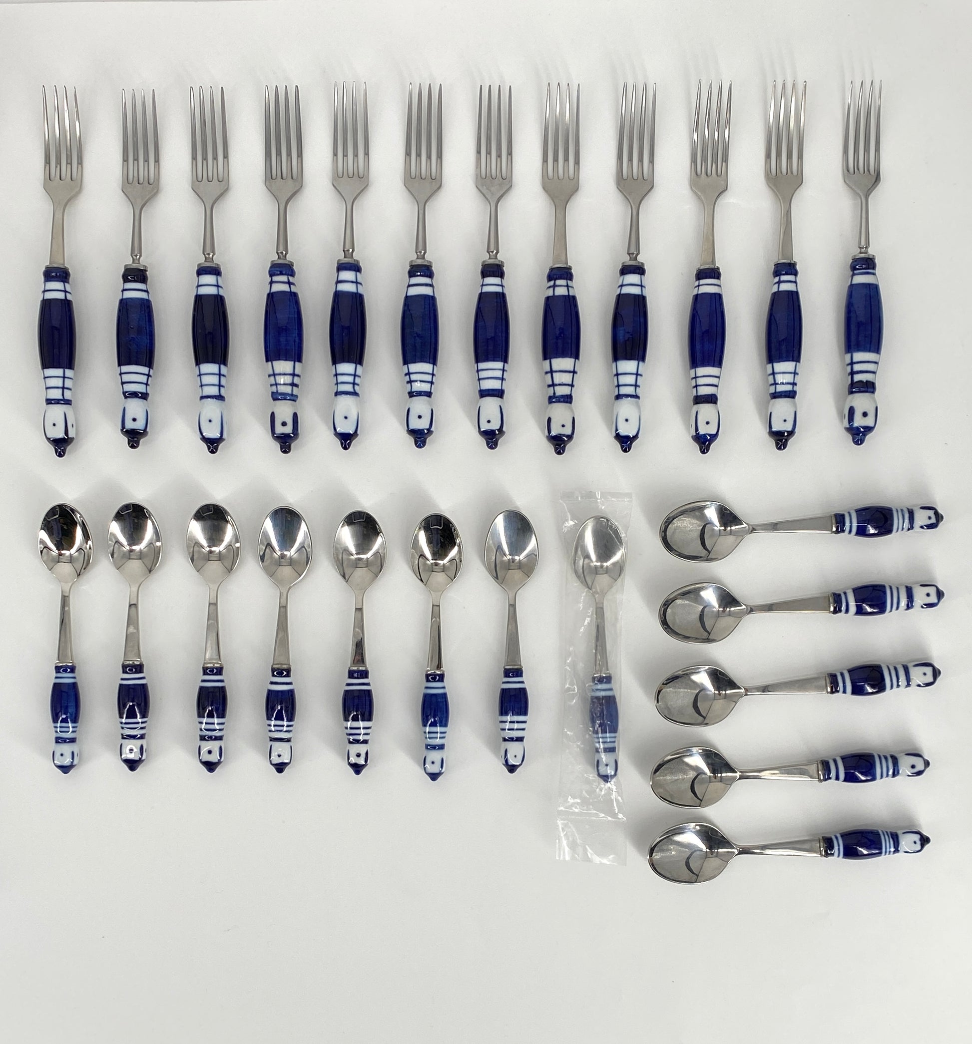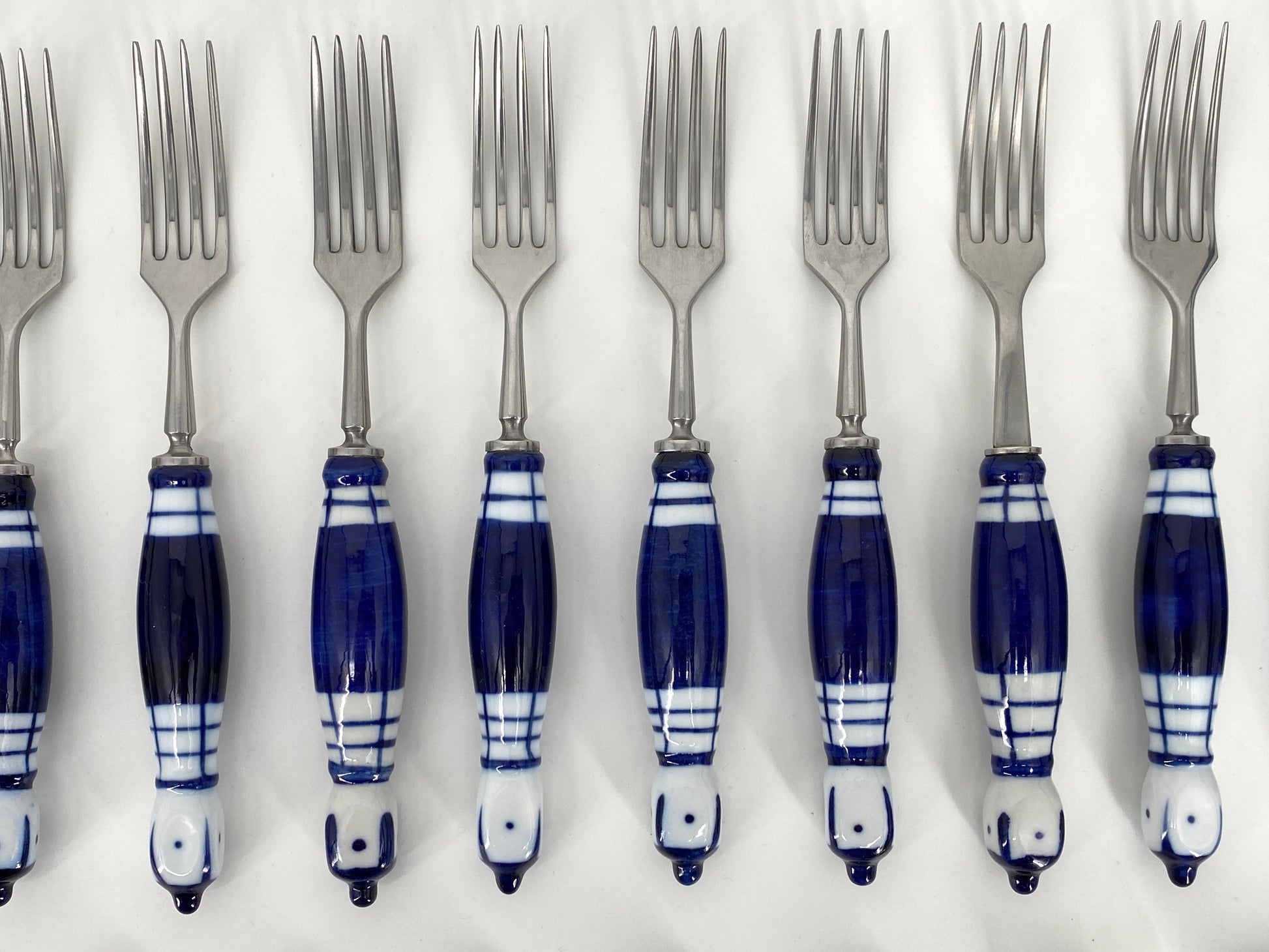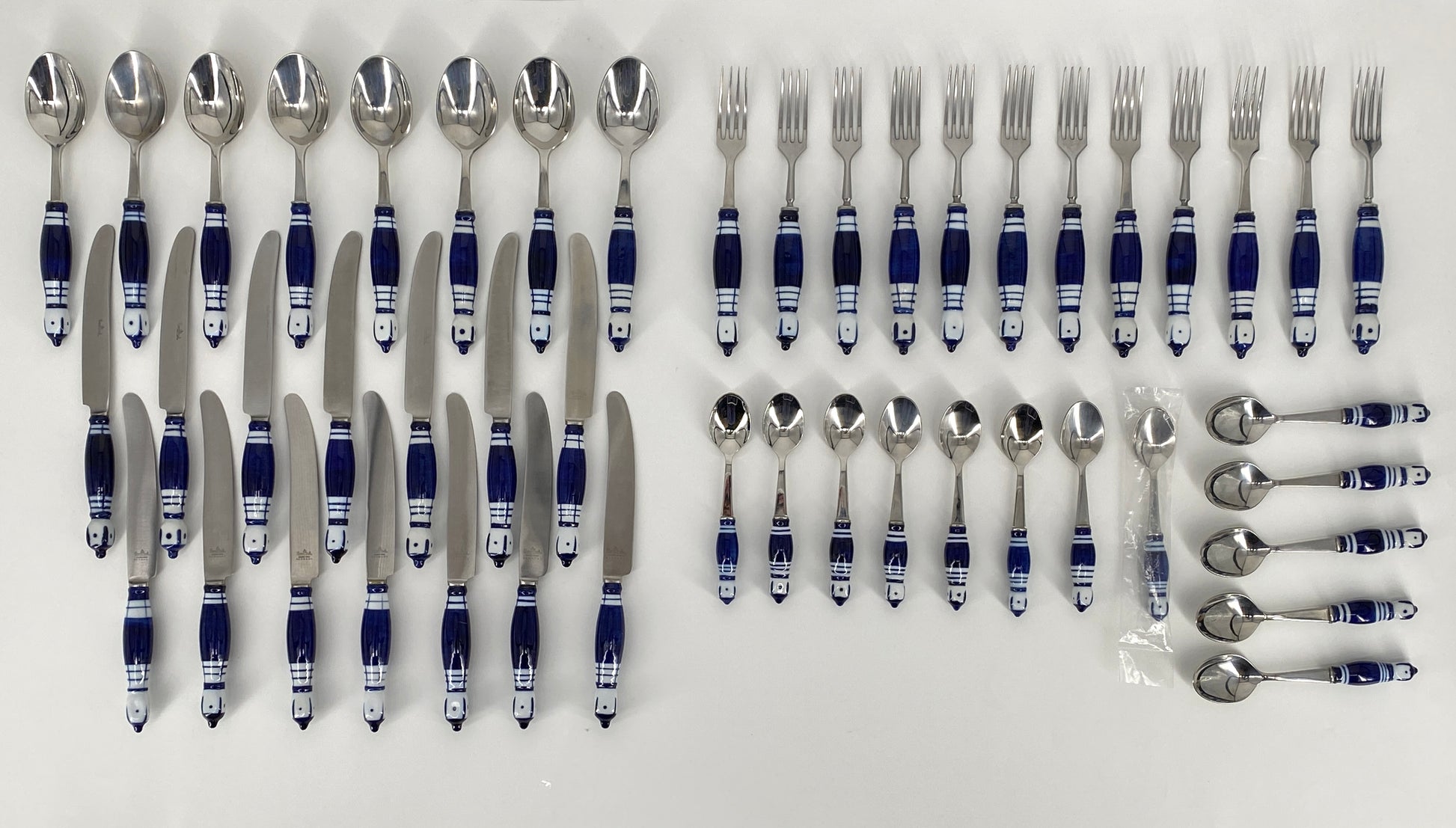 * die Griffstücke sind aus weißem Porzellan mit kobaltblauer Bemalung