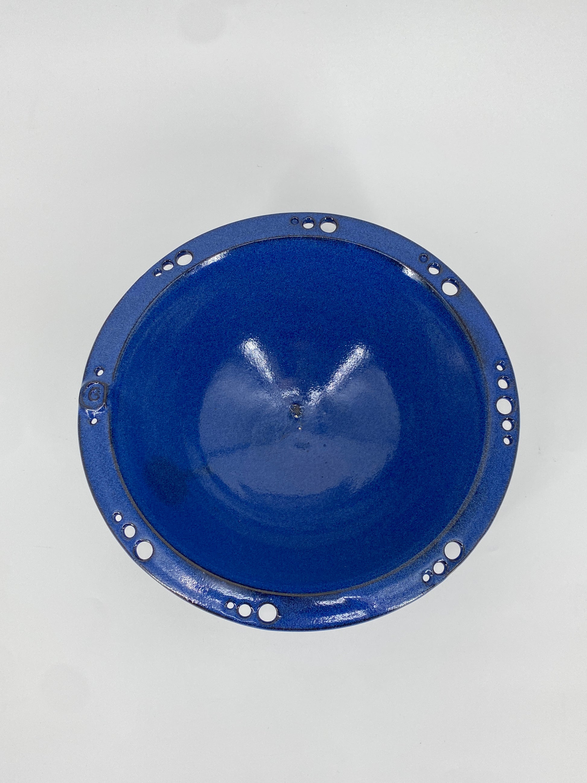 * hohe Schale mit einem perforierten Rand mit unterschiedlich großen Löchern und dem plastisch gestaltetem Buchstaben "G"