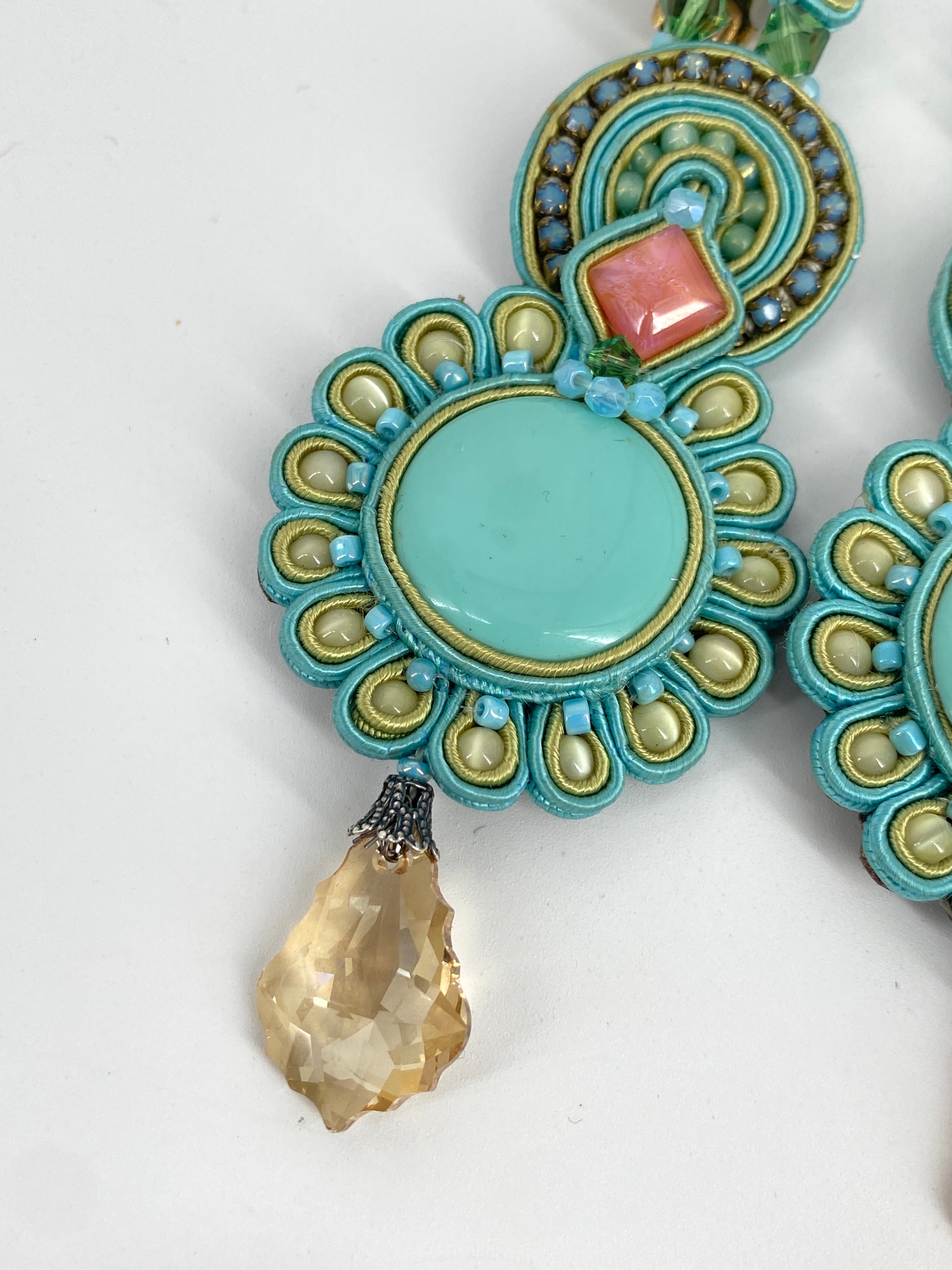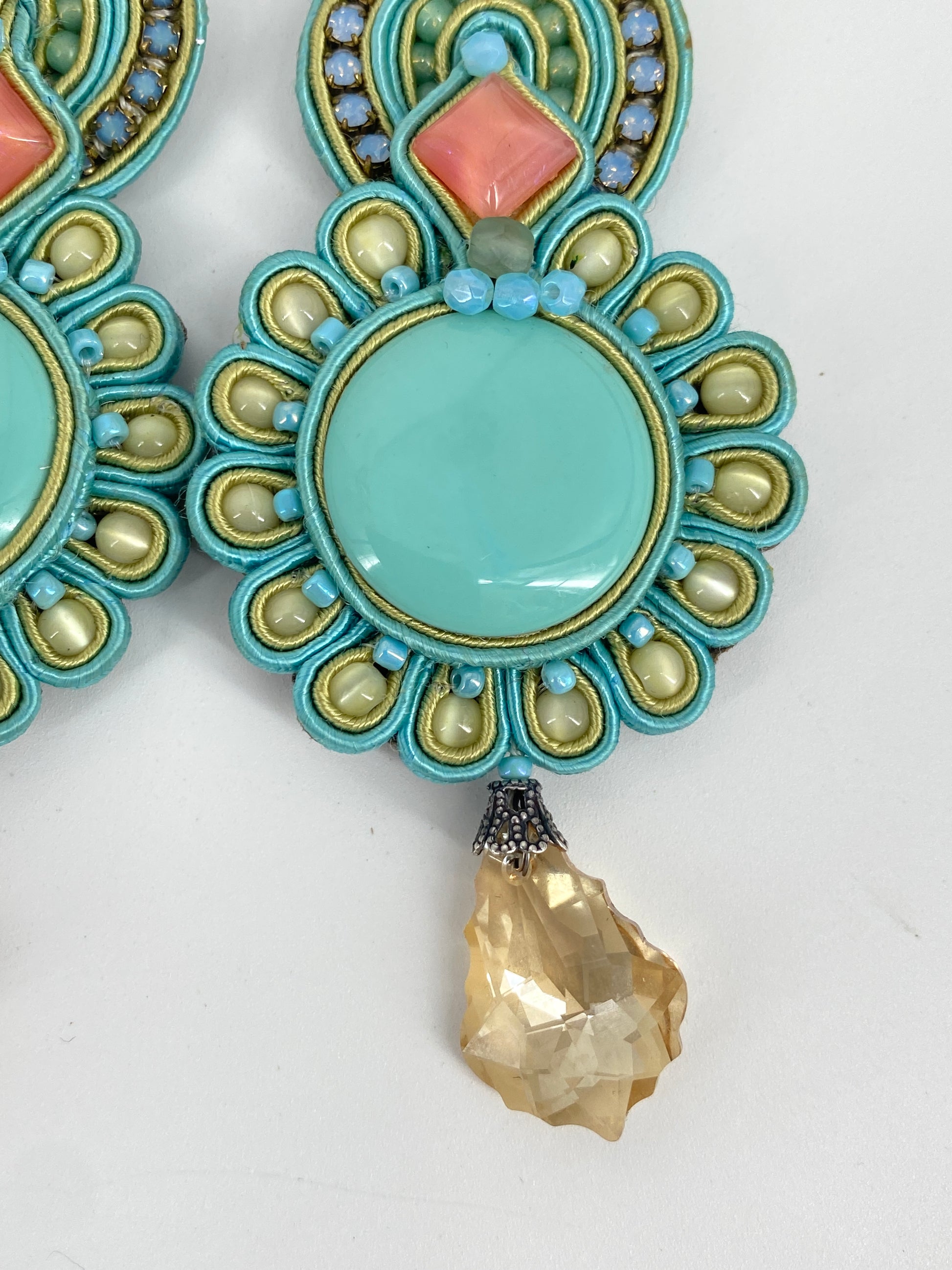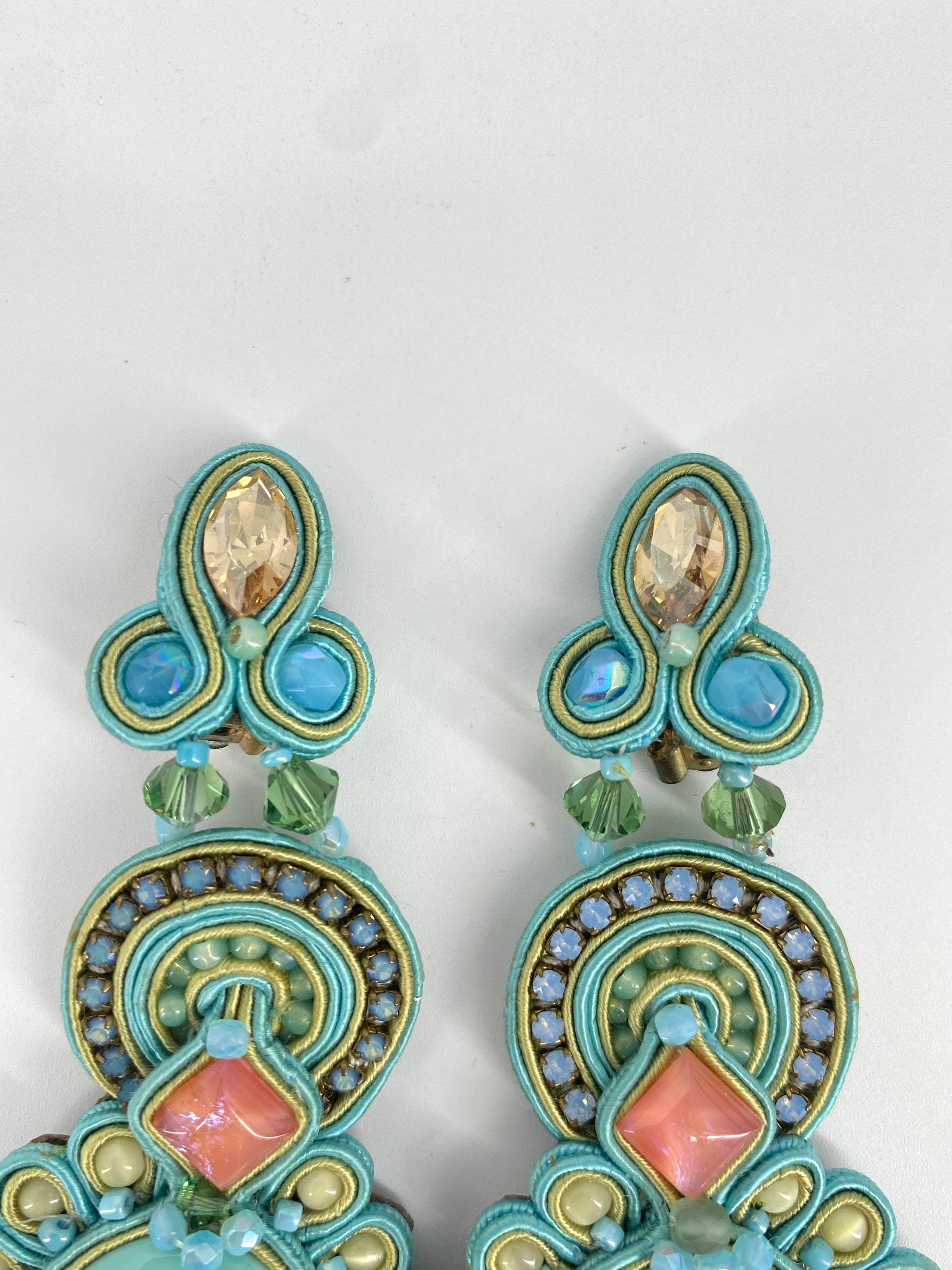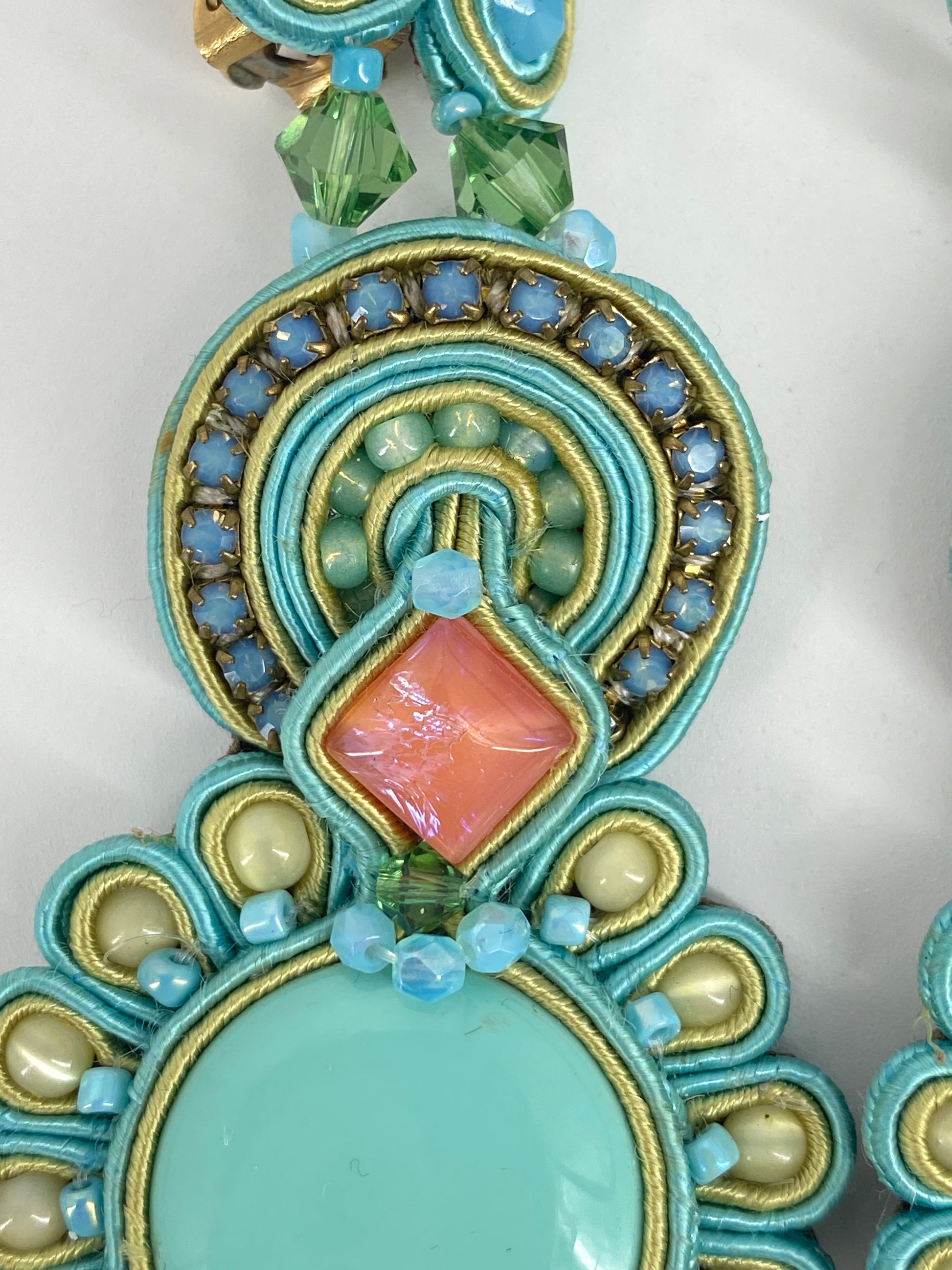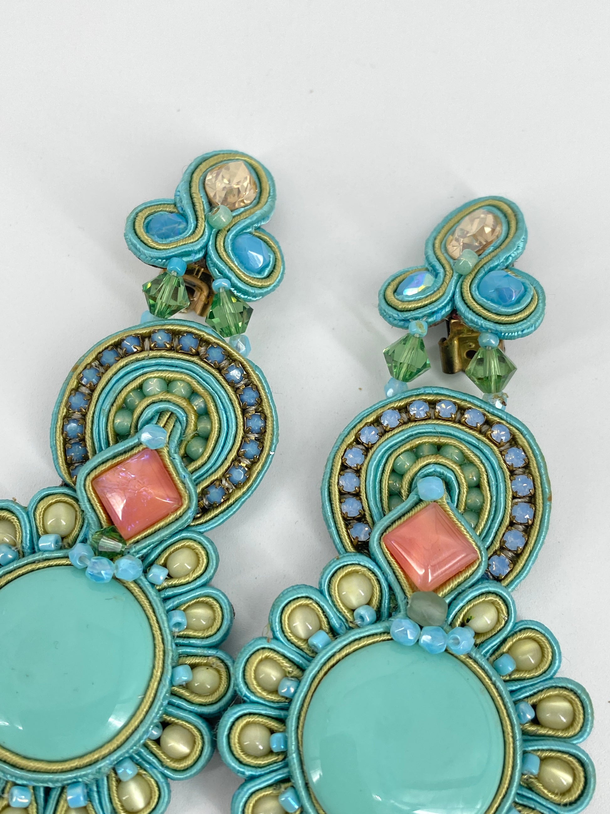 * in Pastell Farben, großteils in Azurblau/Türkis mit Steinen in Rosa und Champagner