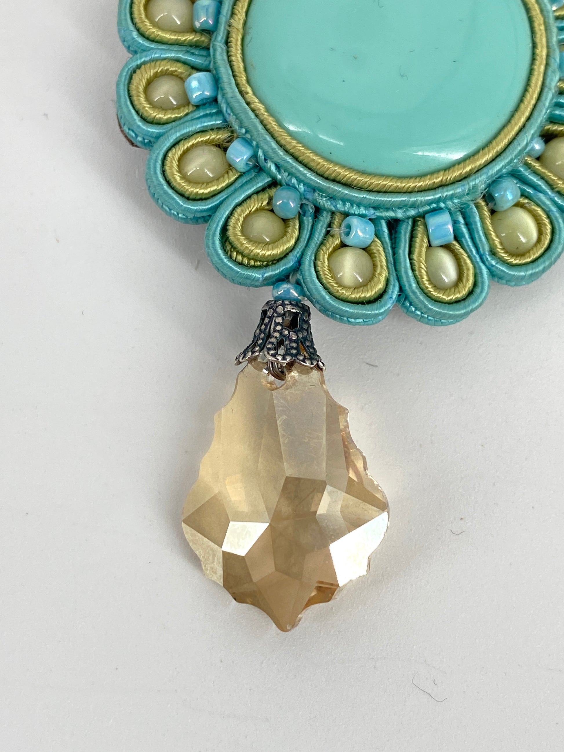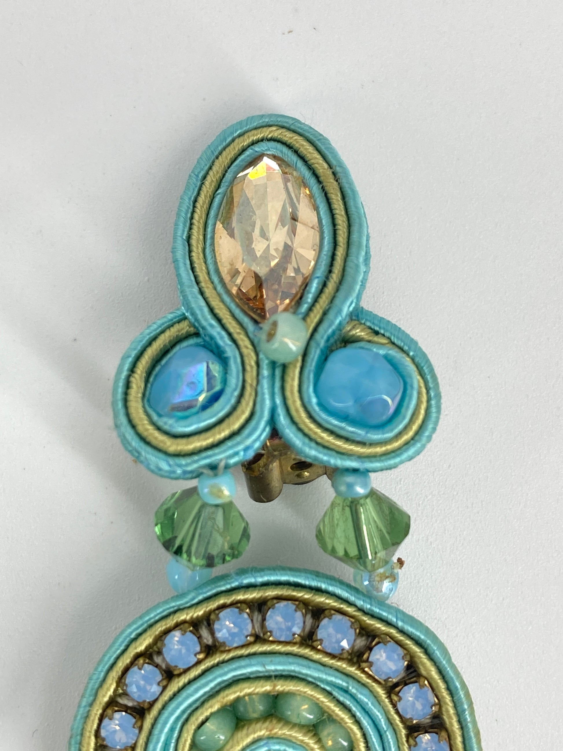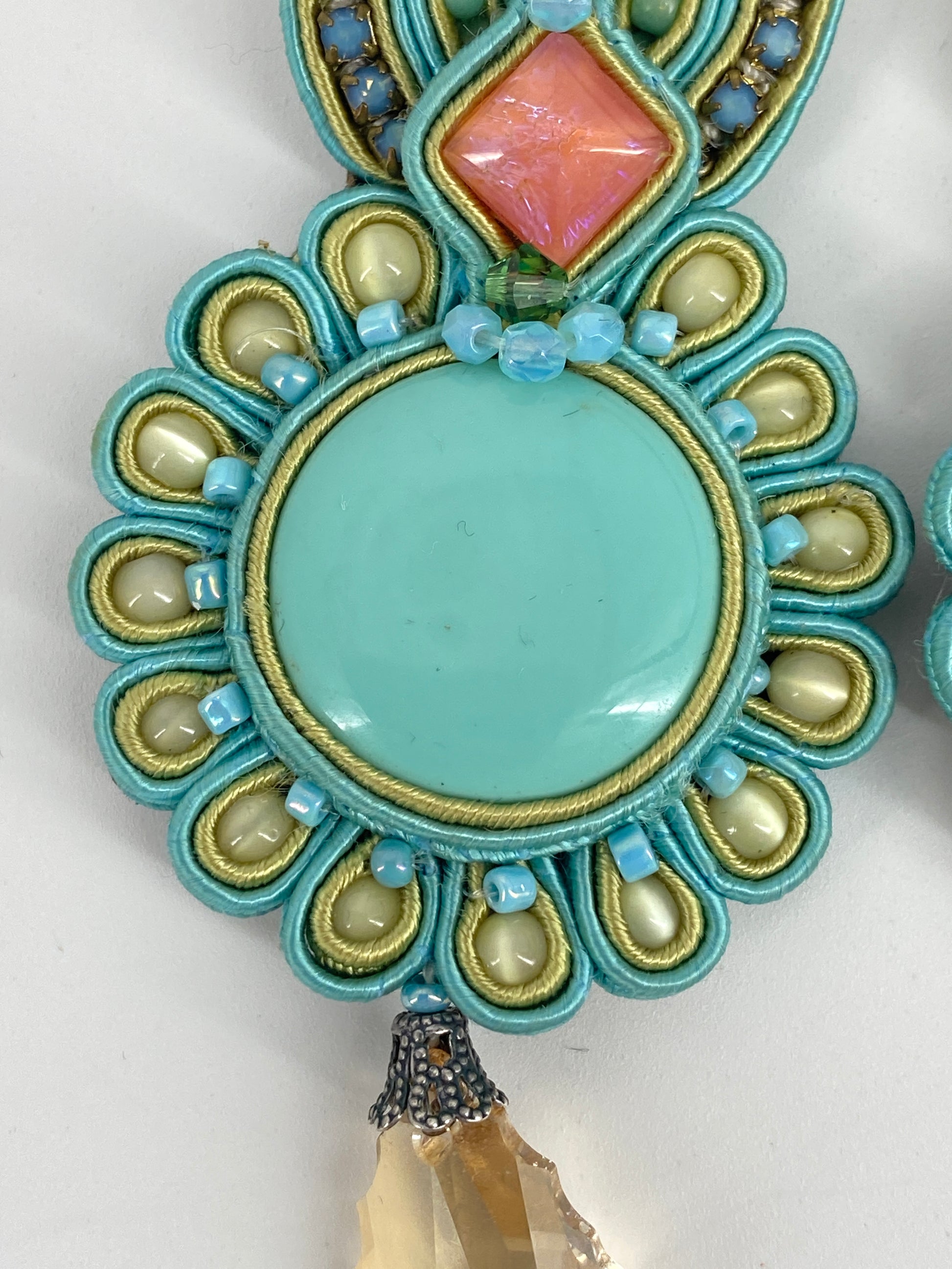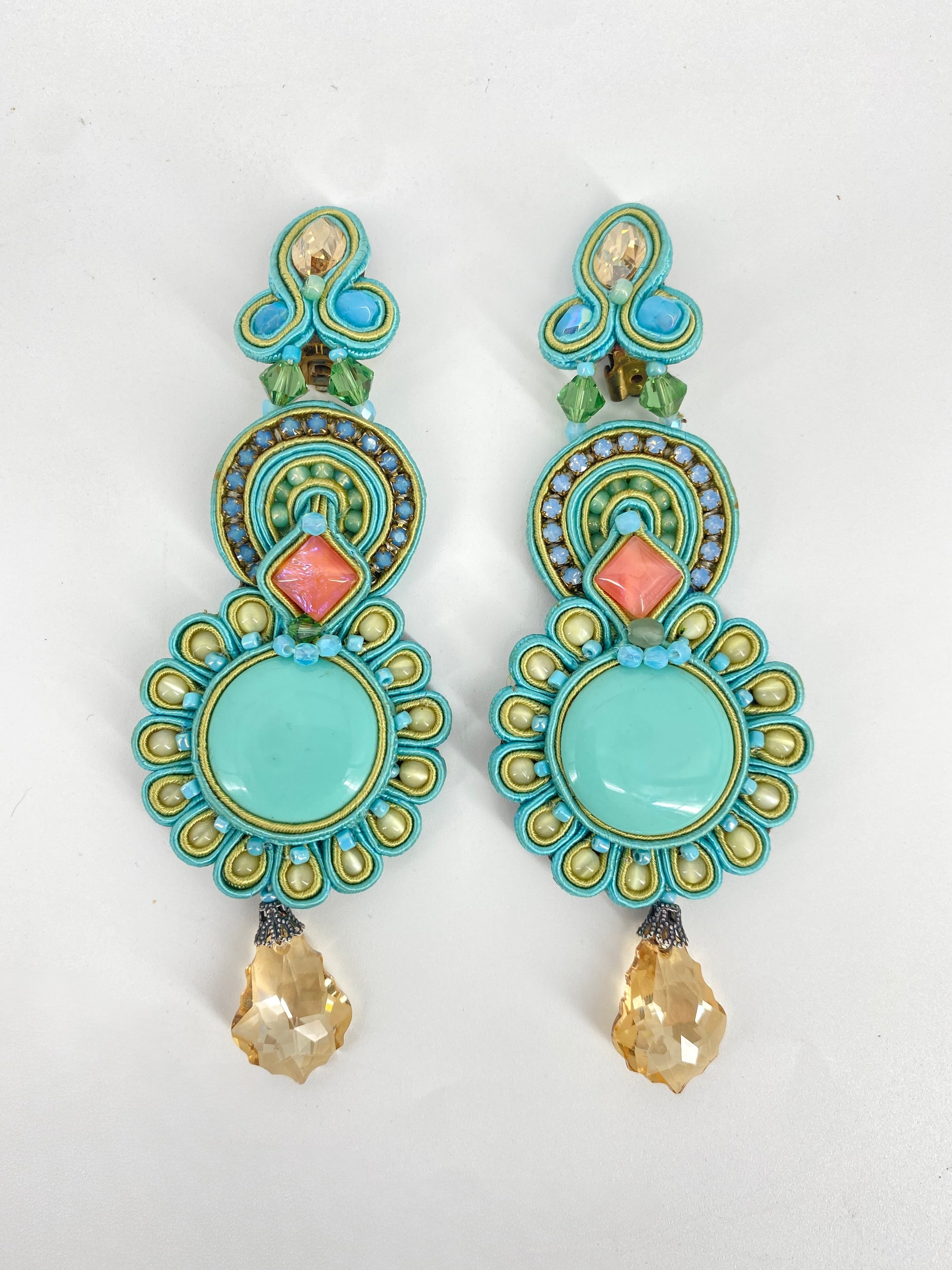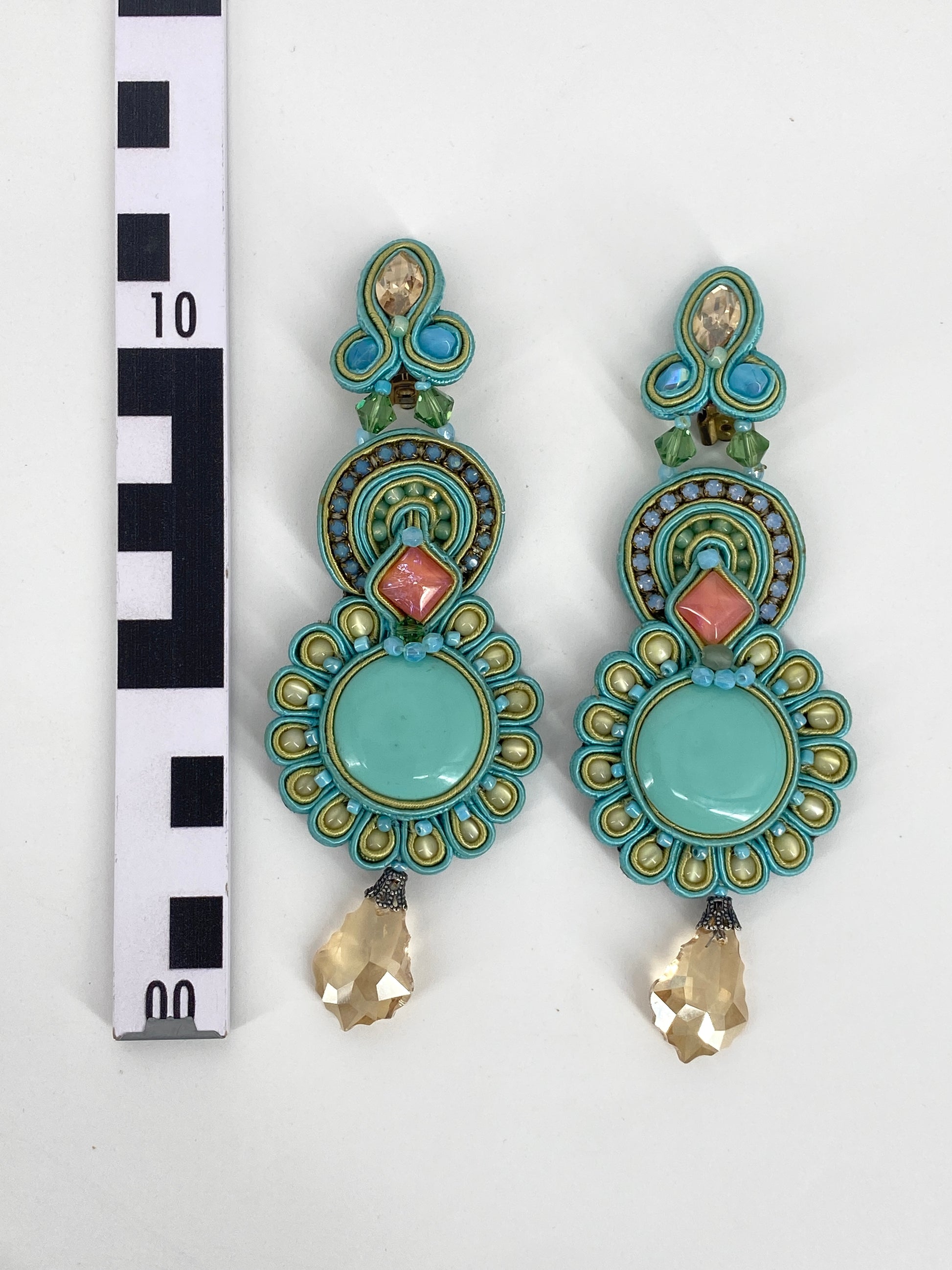 * in Pastell Farben, großteils in Azurblau/Türkis mit Steinen in Rosa und Champagner