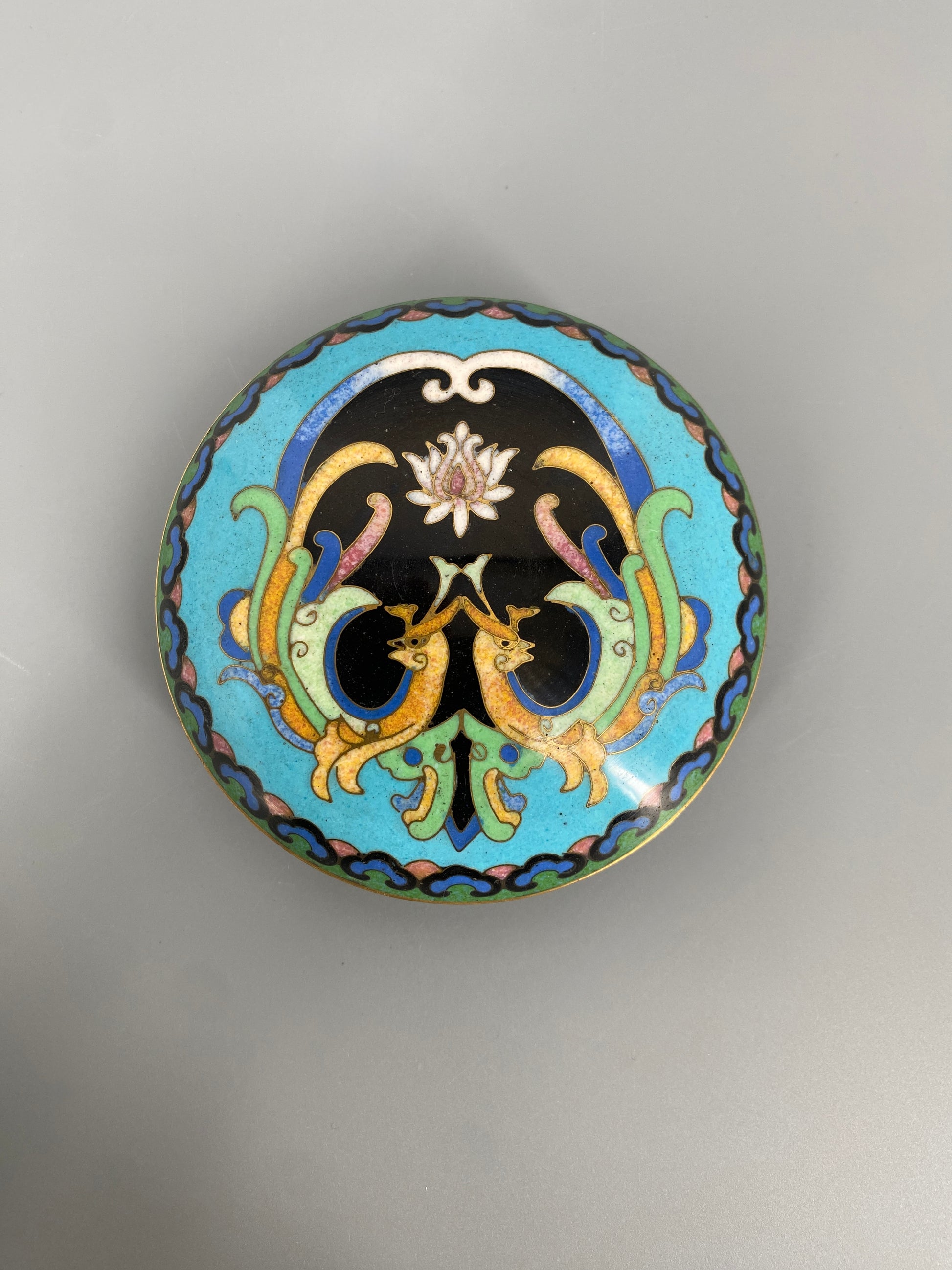 * ANTIKE DOSE CLOISONNE EMAILLE MESSING RUNDES SCHMUCKDÖSCHEN