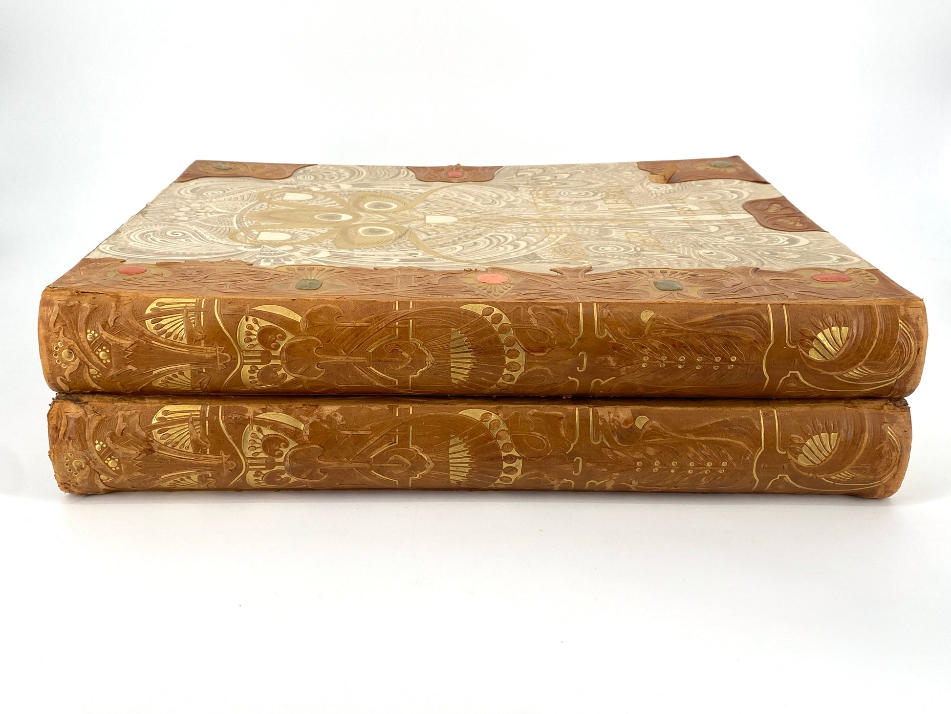 Mappen mit Grafiken in Halbledereinband des Jugendstils, Meisterwerke der Malerei, Alte Meister, Berlin ca. 1900