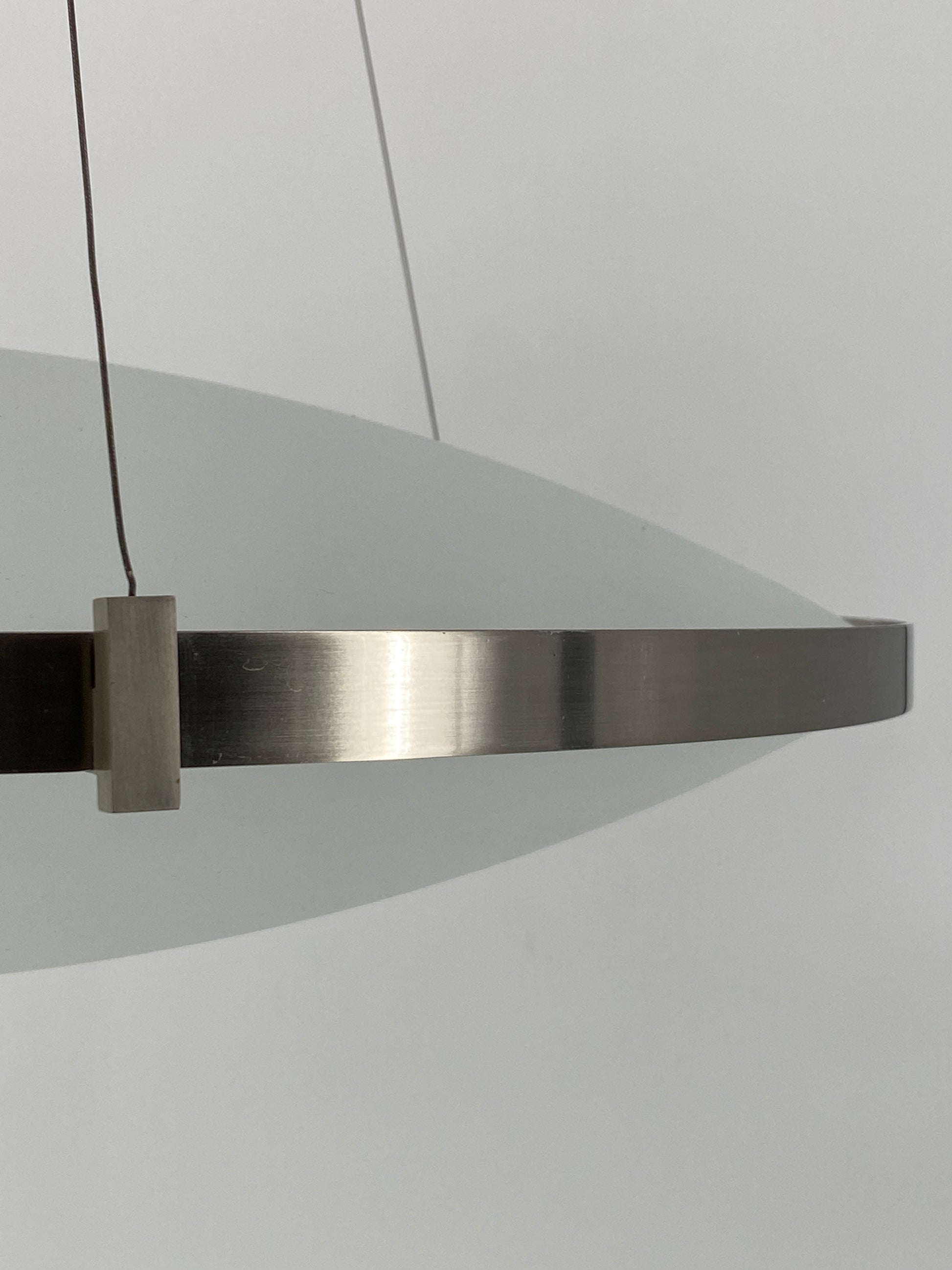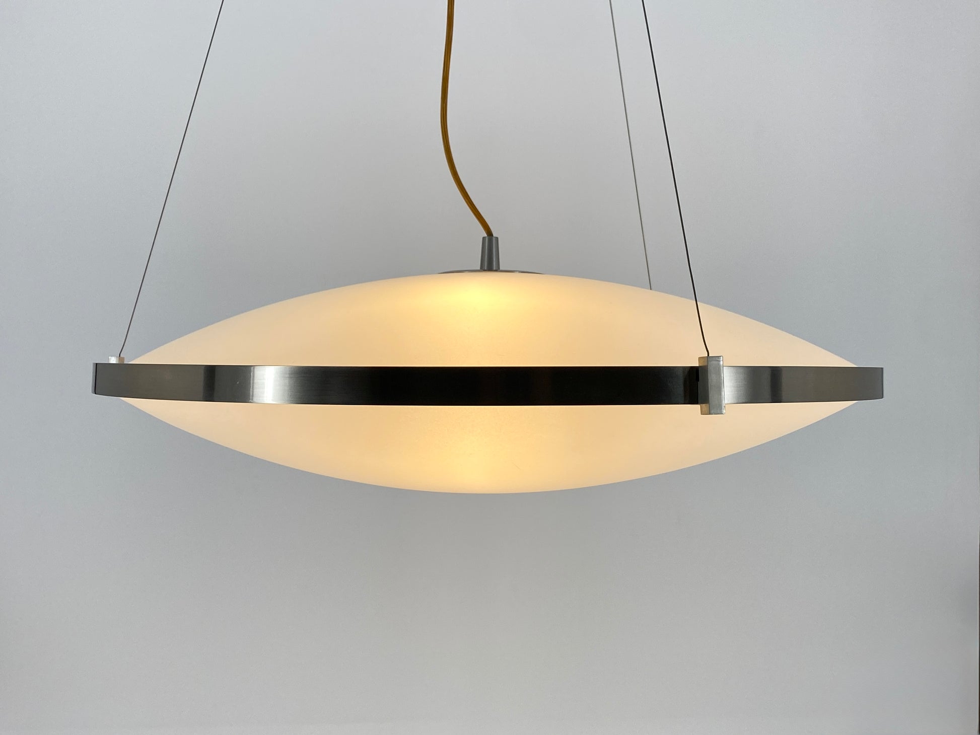 * DECKENLAMPE ESTILUZ T-2129 OPALGLAS ALUMINIUM 2xE27 HÄNGELAMPE SPANIEN VINTAGE LEONARDO MARELLI
