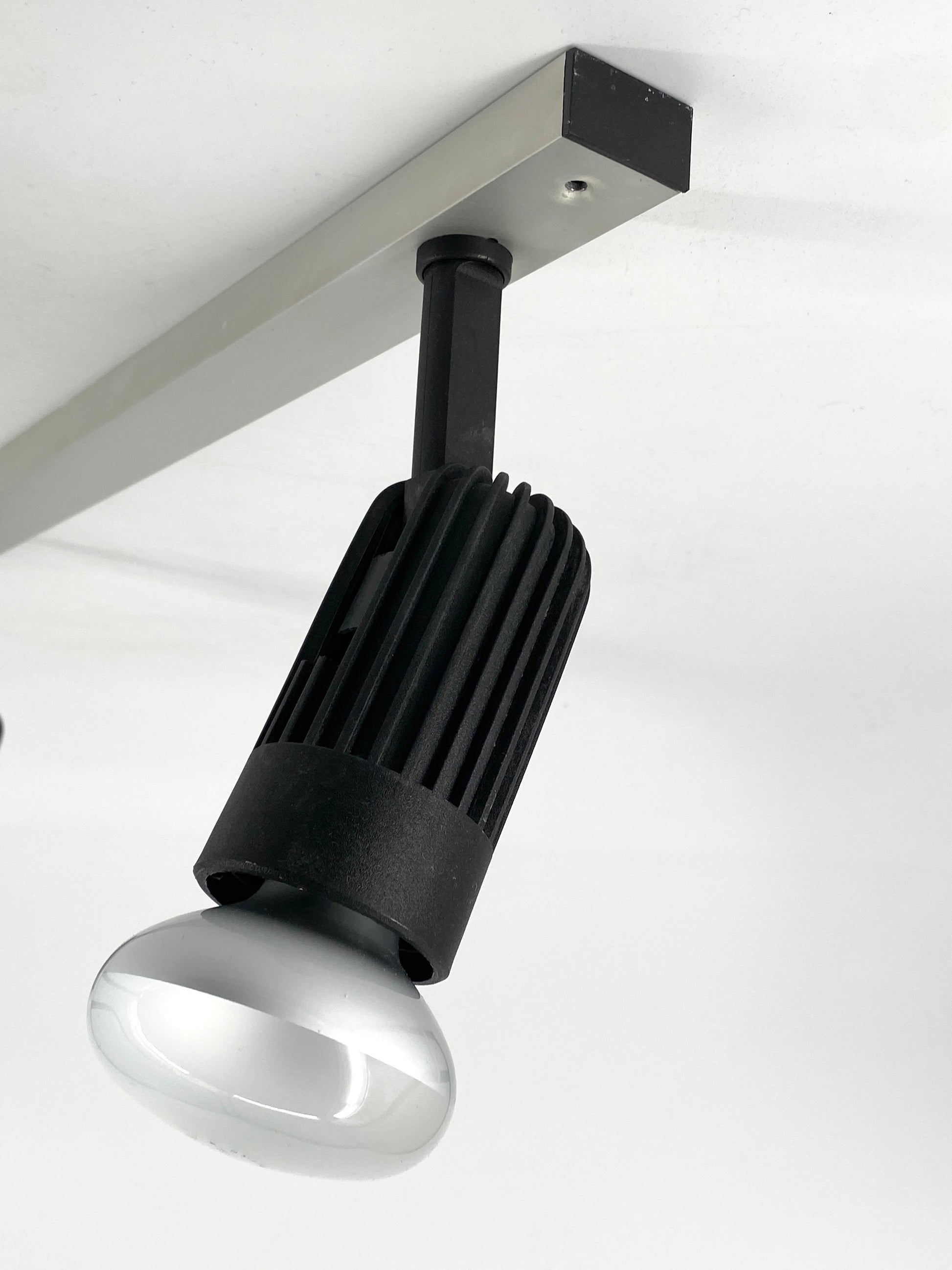 * graue Aluminiumschiene mit drei schwenkbaren Spots