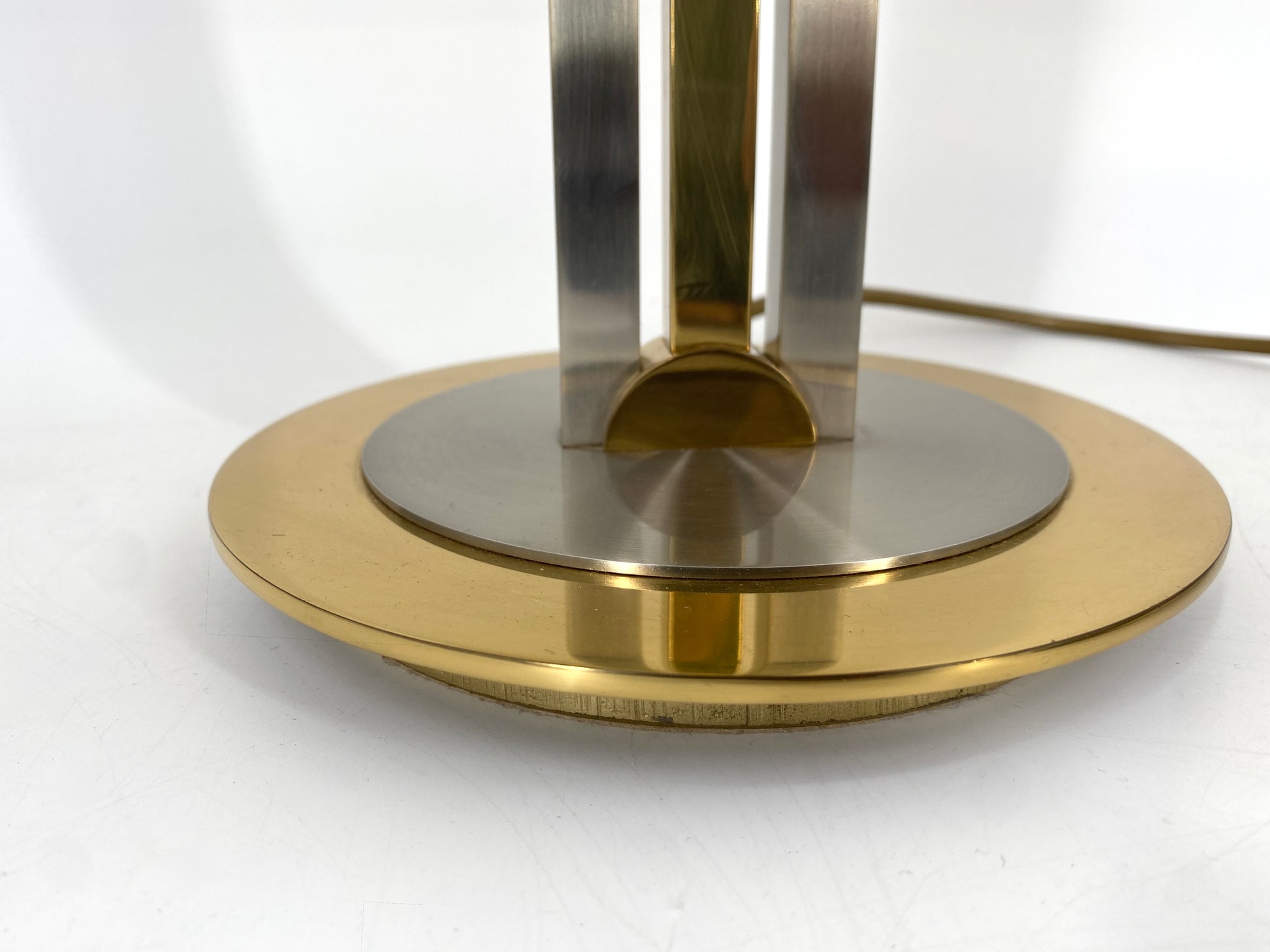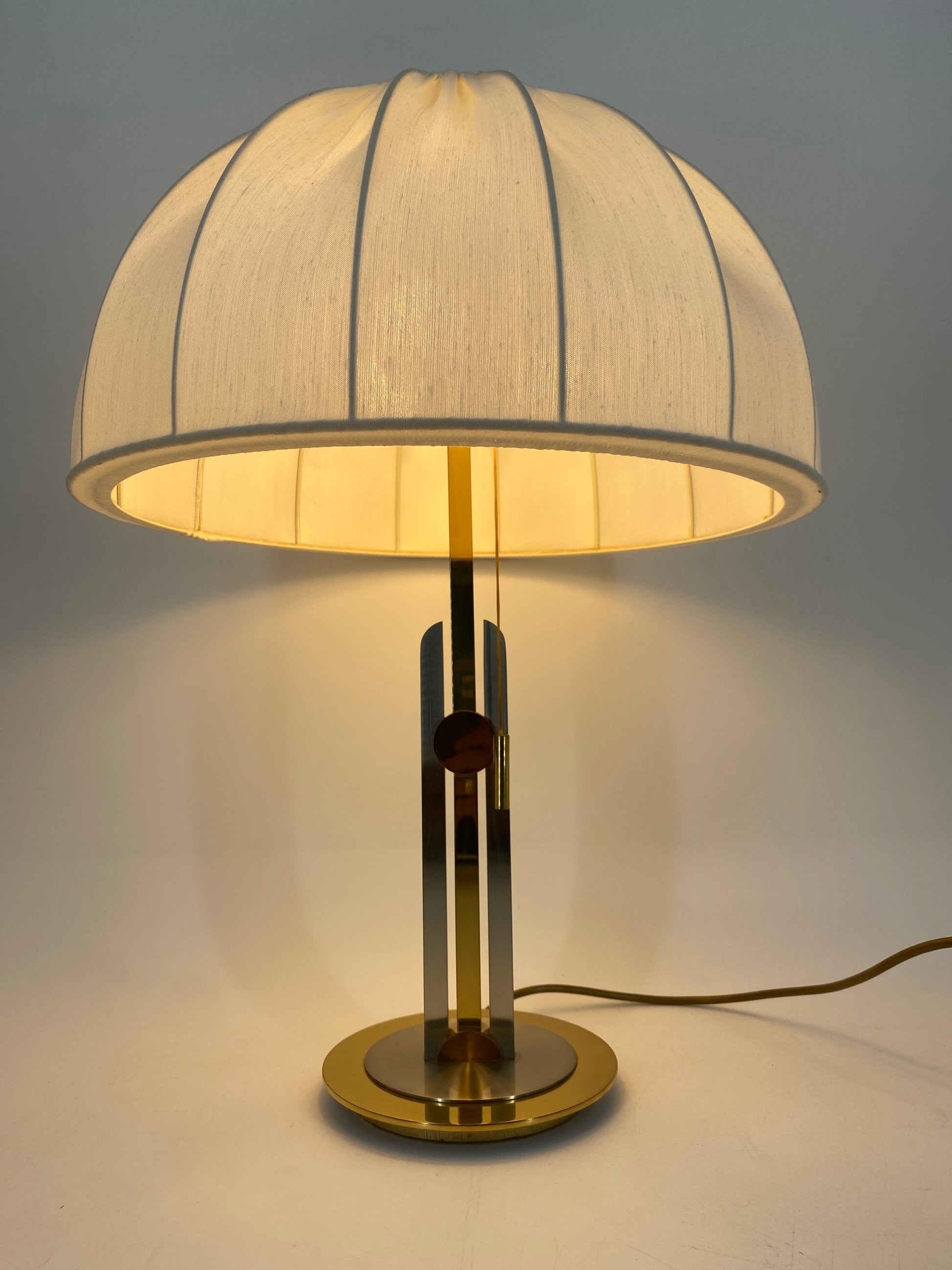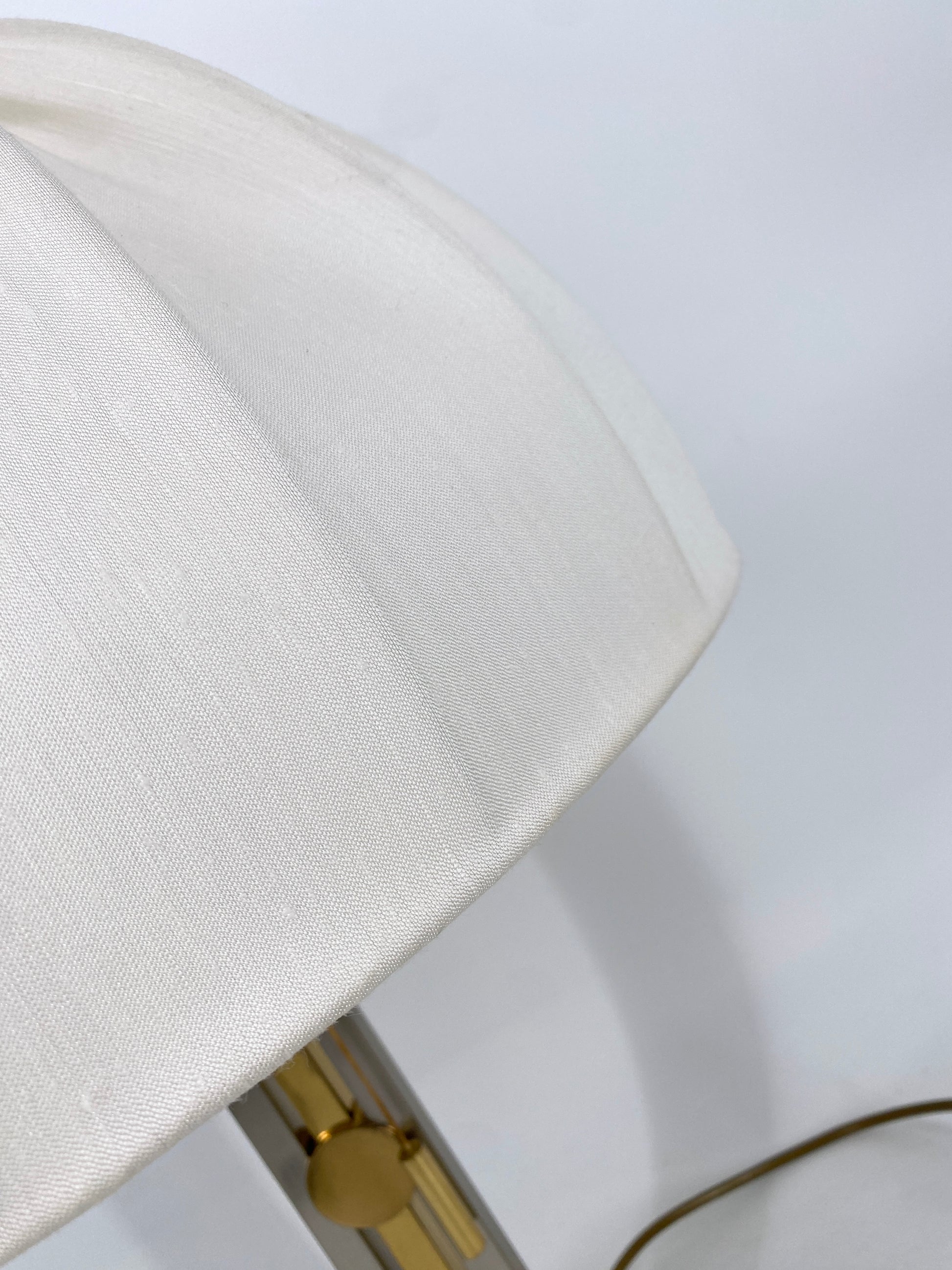 * PAAR TISCHLAMPEN HOLLYWOOD REGENCY BICOLOR GOLD SILBER STOFF