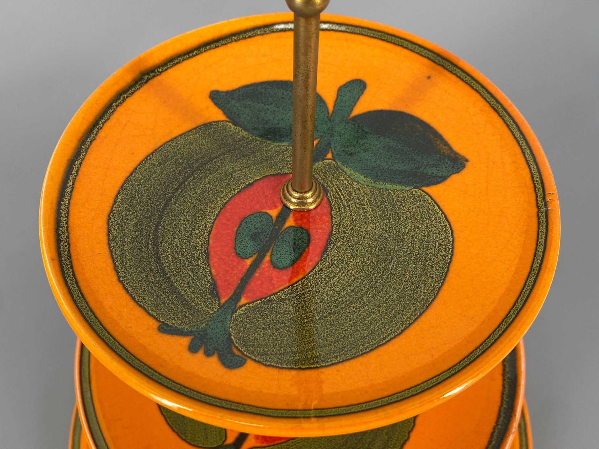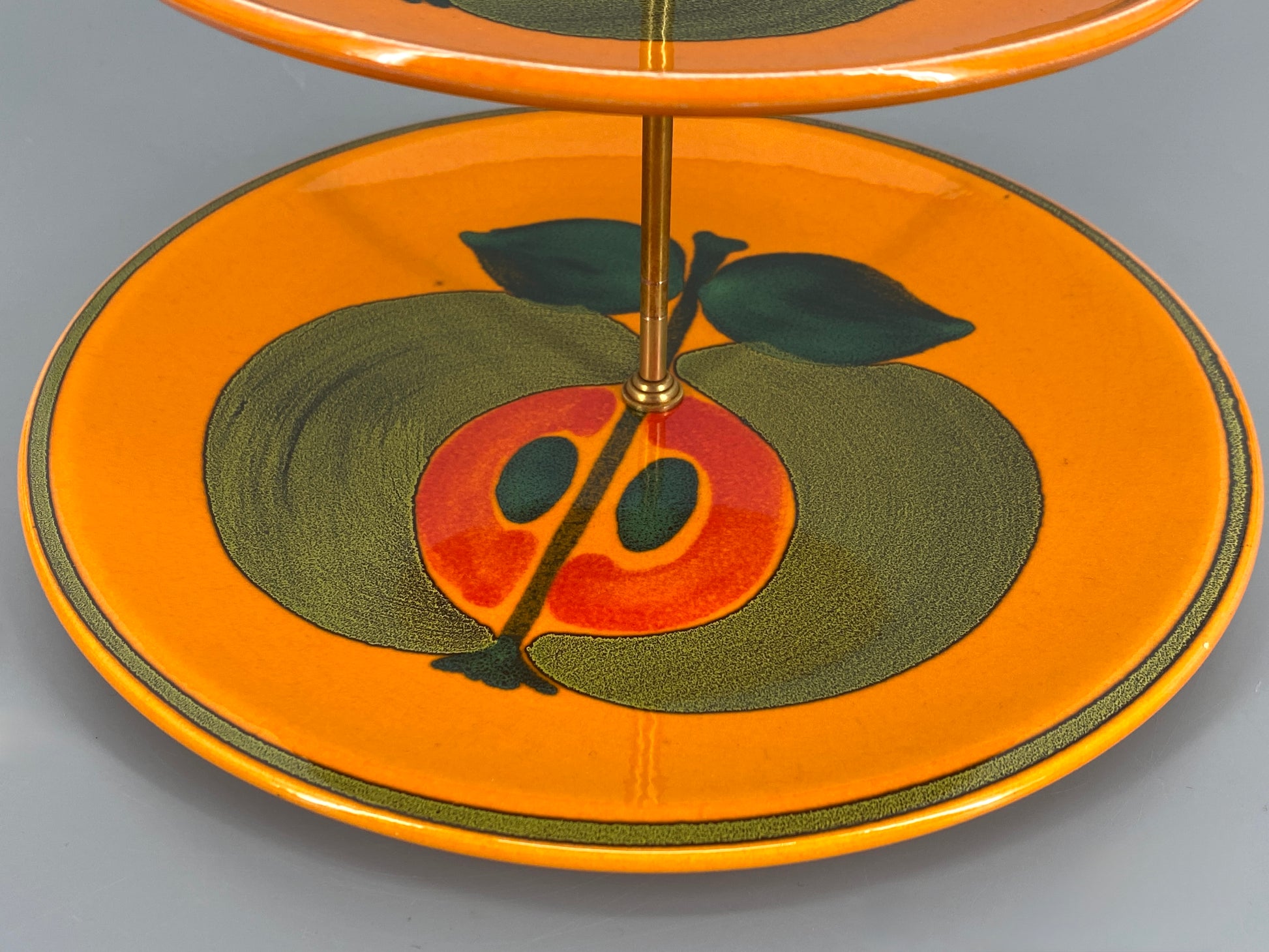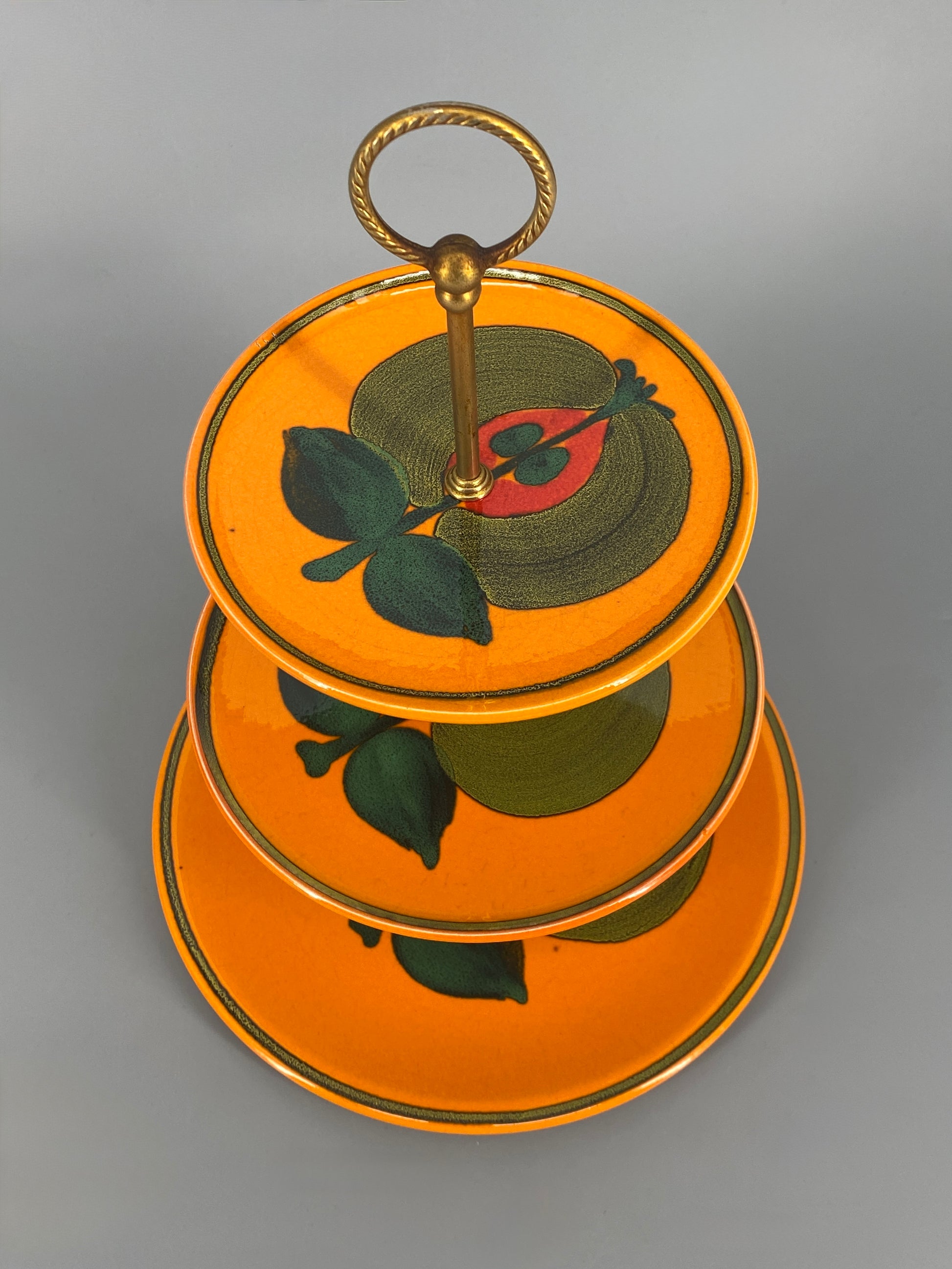* WÄCHTERSBACH ETAGERE KERAMIK 70ER APFELMOTIV WAECHTERSBACH MESSING WESTERN GERMANY VINTAGE