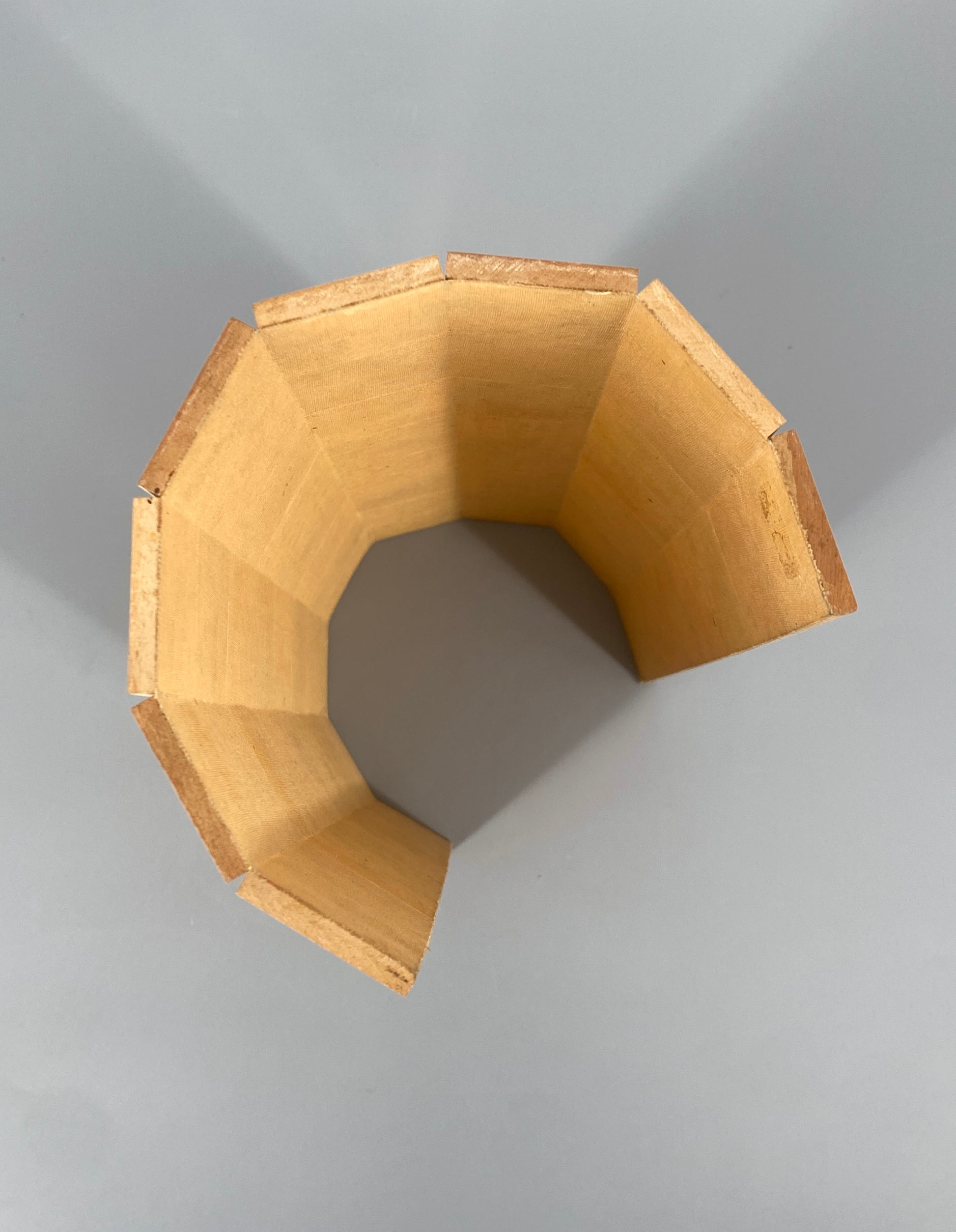 * aus zwei verschiedenen Holzarten (Buche und Eiche) gefertigt