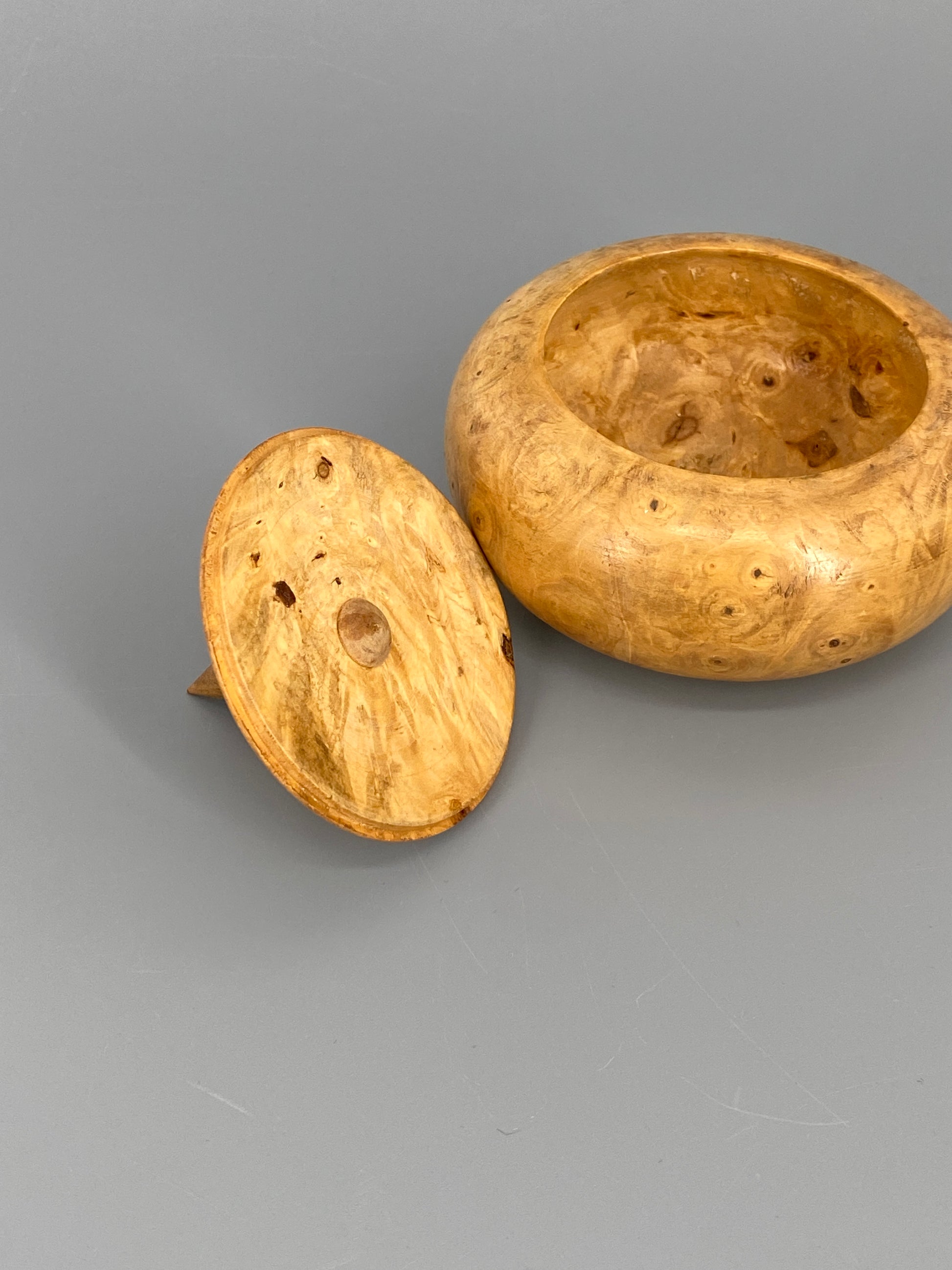 * HOLZDOSE SCHATULLE SCHACHTEL BIRKE RUND DISKUSFÖRMIG VINTAGE