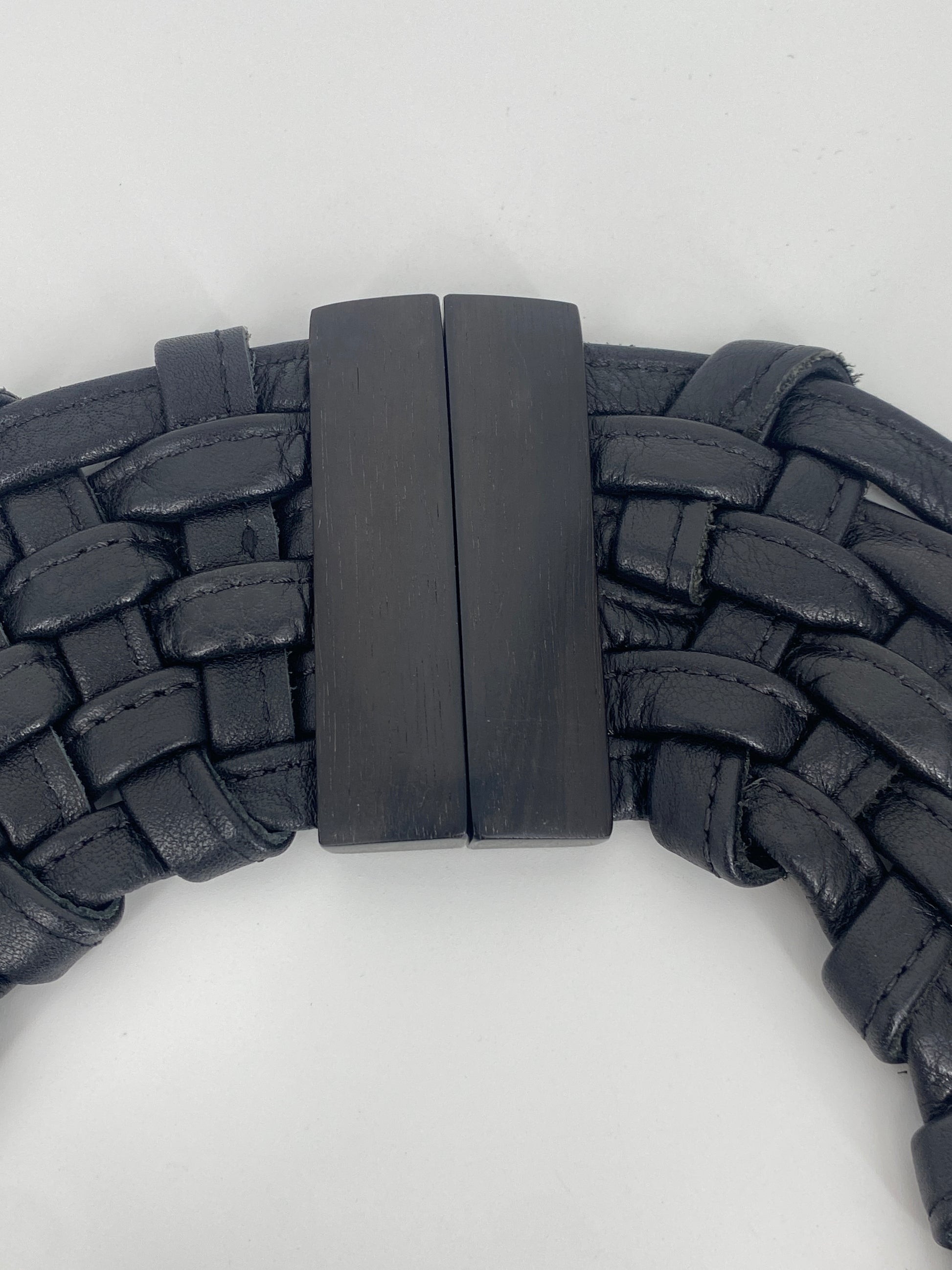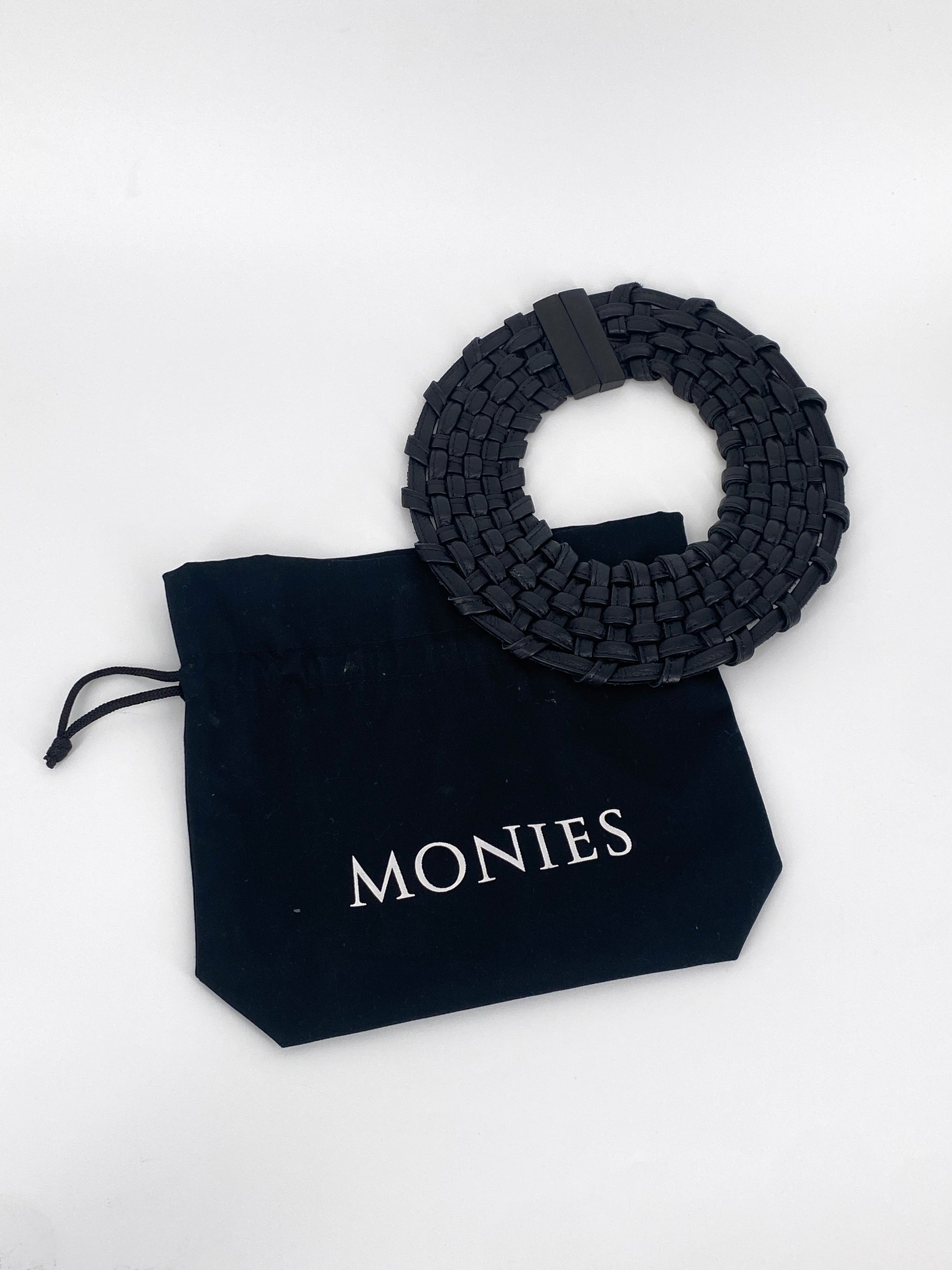 * MONIES LEDER HALSKETTE COLLIER GEWOBEN GEFLOCHTEN SCHWARZ