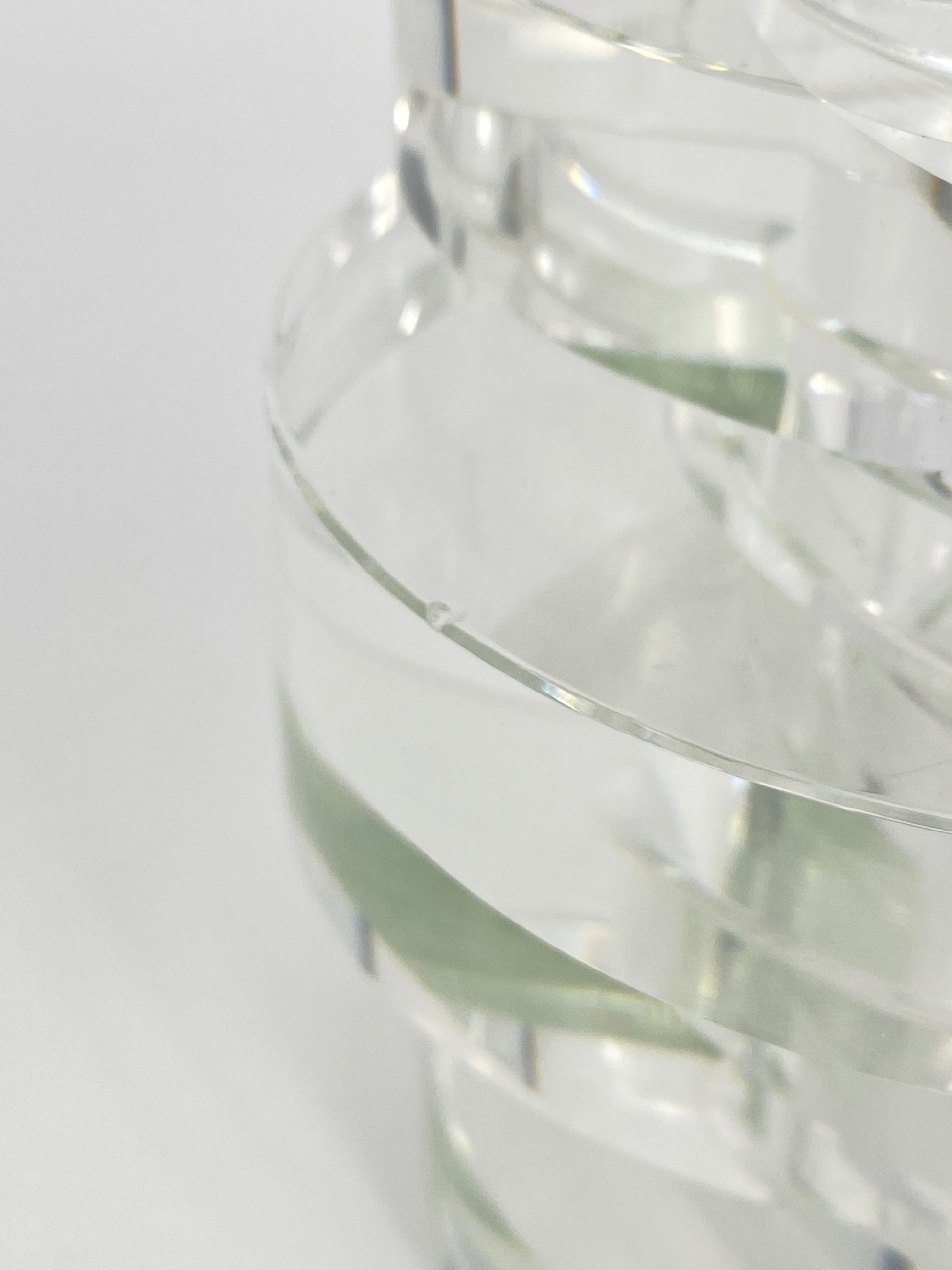 * schwere Glasscheiben bilden versetzt geschichtet diese eindrucksvolle, graphische Vase