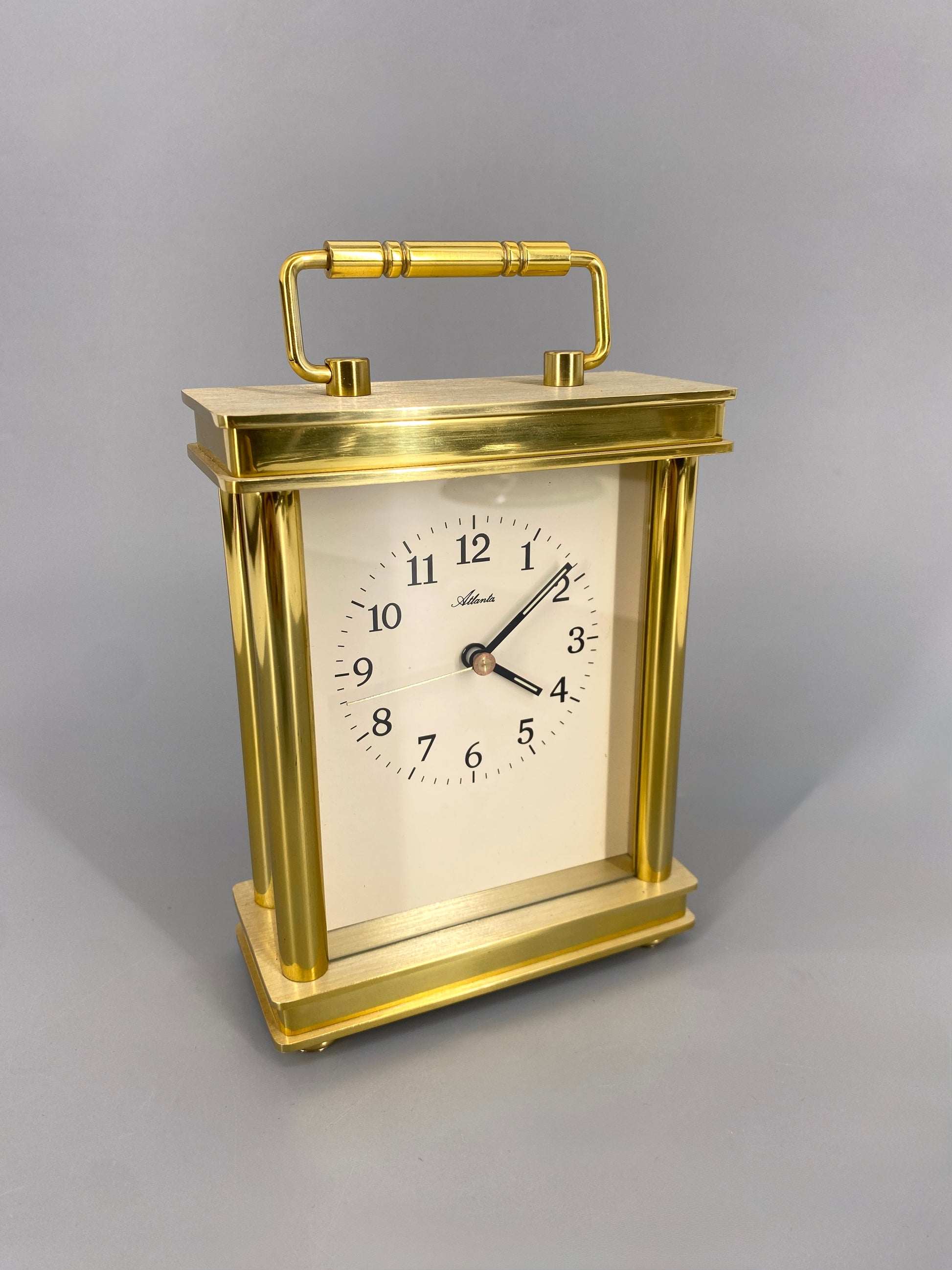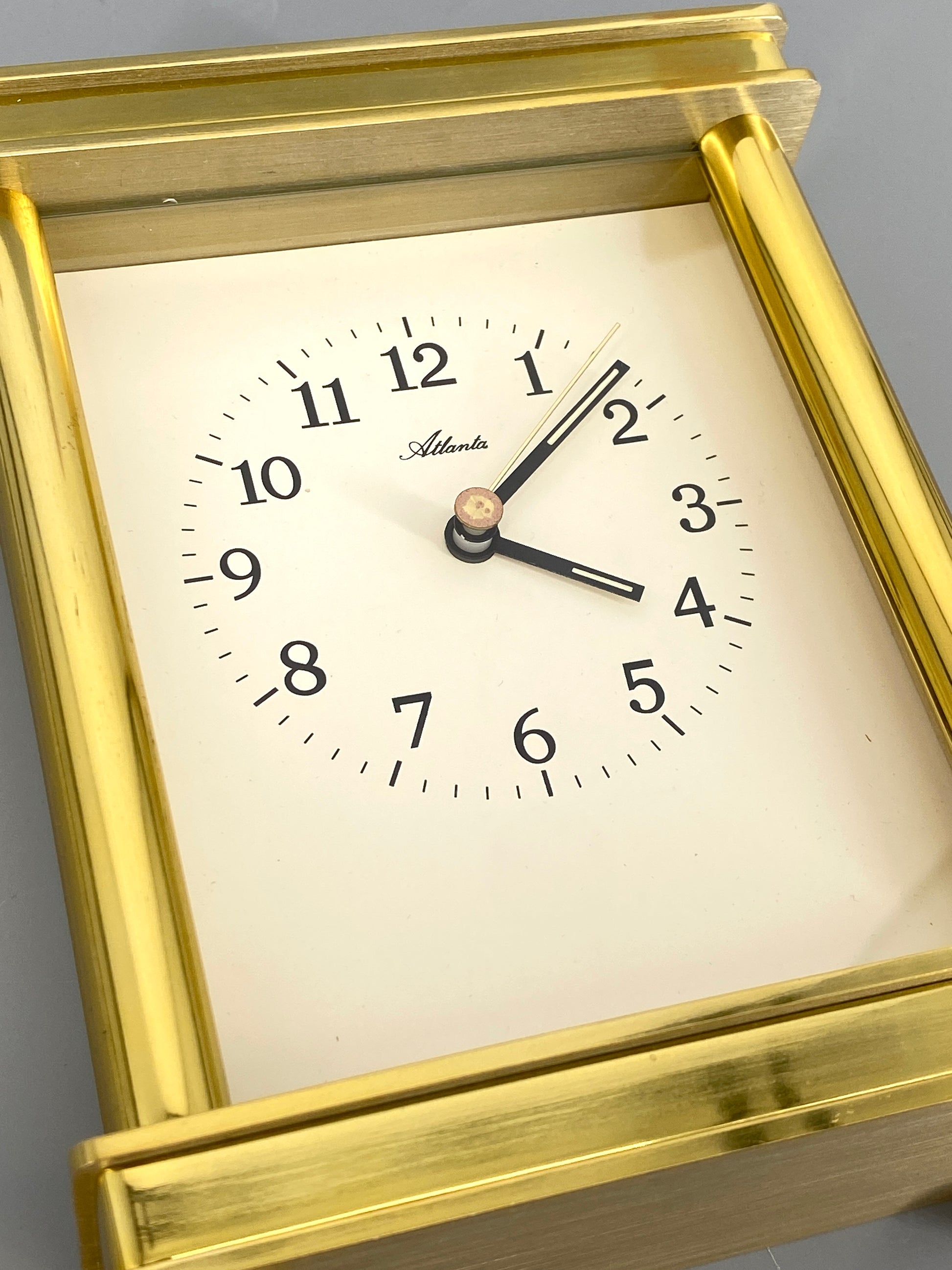 * ATLANTA TISCHUHR GOLD TRAGEGRIFF UHR REISEUHR ANTIK MESSING