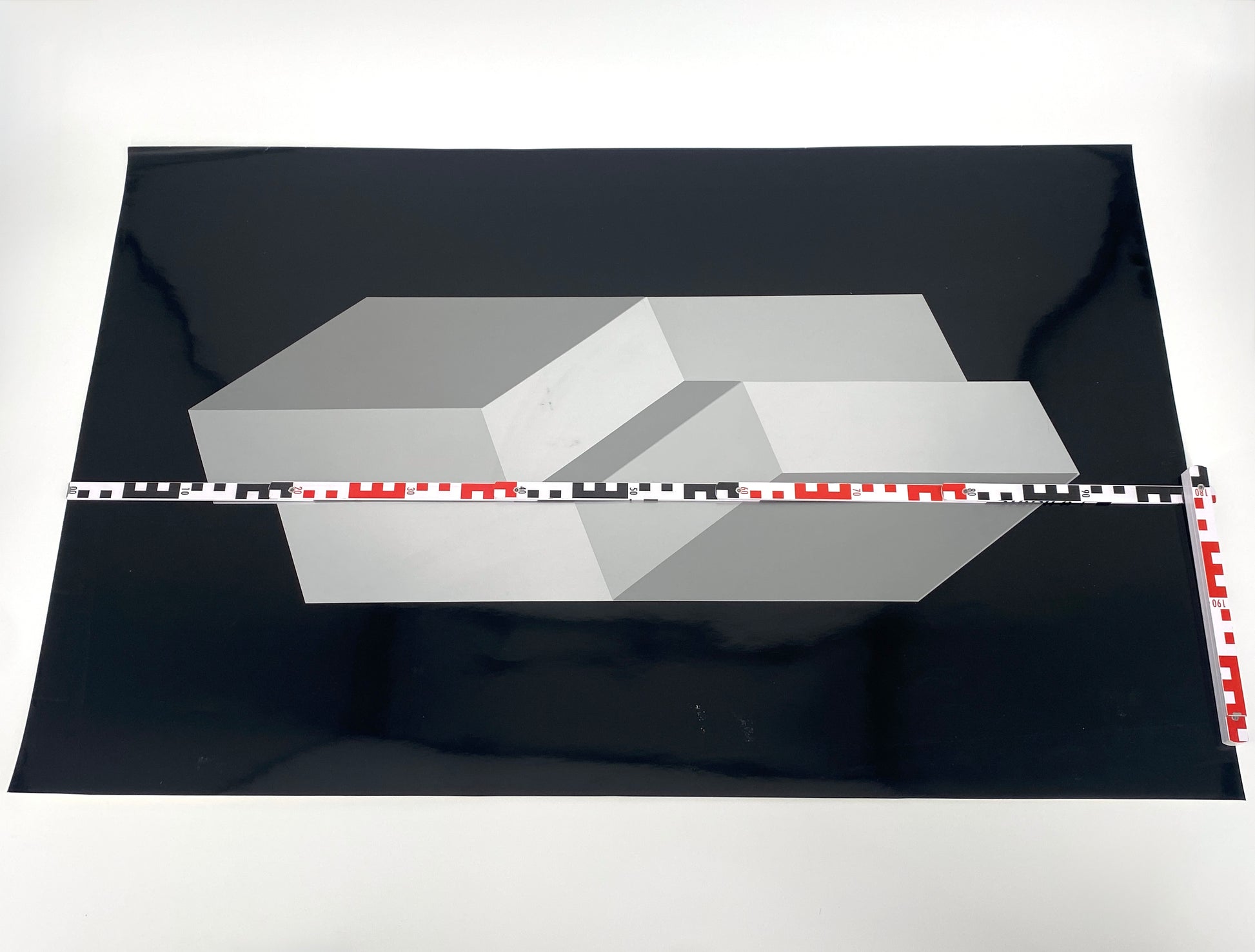 Großer, konstruktiv-konkreter Farbsiebdruck auf schwarzem, glänzendem Papier von Joachim Albrecht, um 1970
