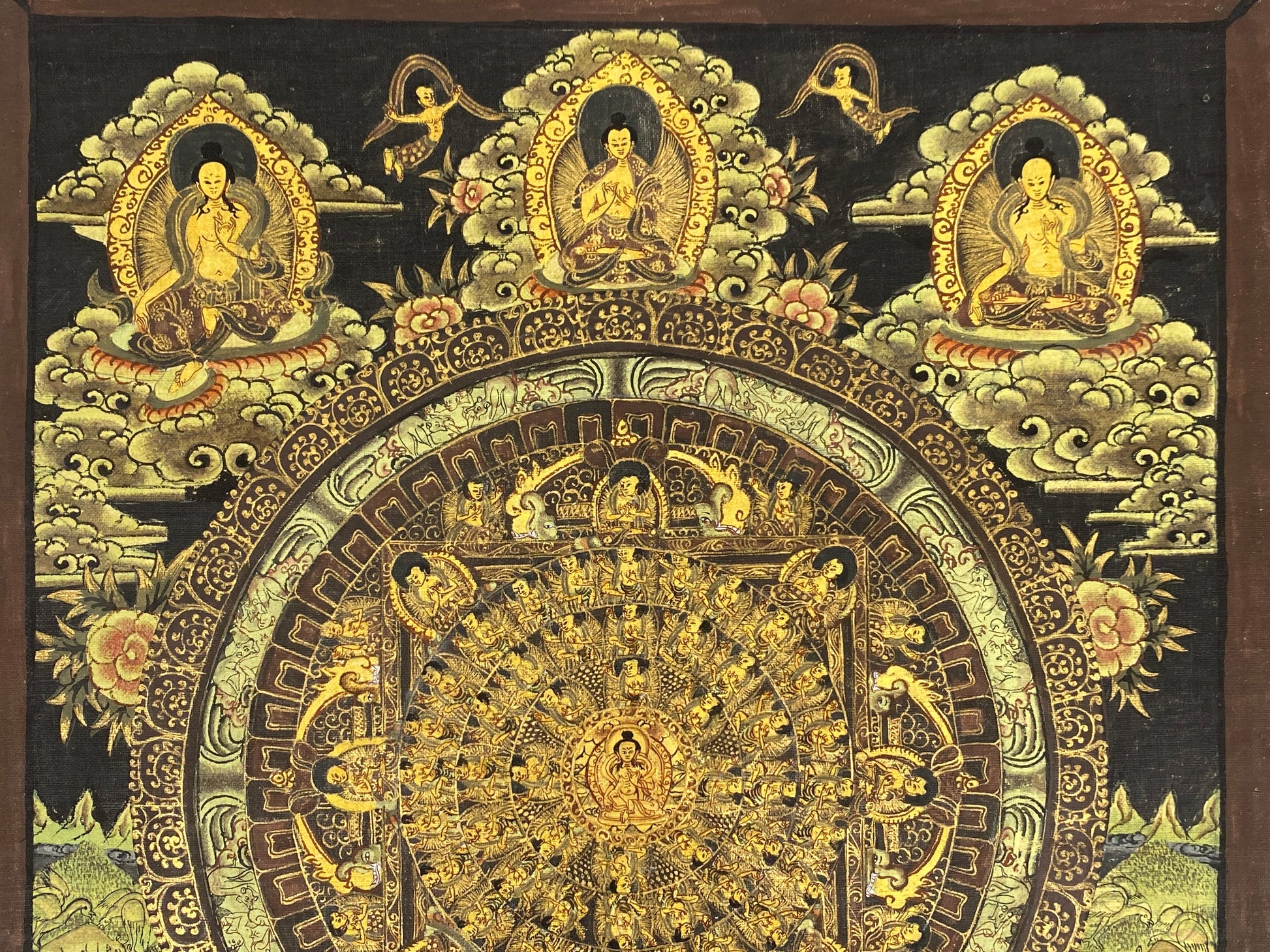 * GEMÄLDE BUDDHISMUS ASIATIKA LEINWAND MANDALA THANGKA HANDBEMALT ASIEN