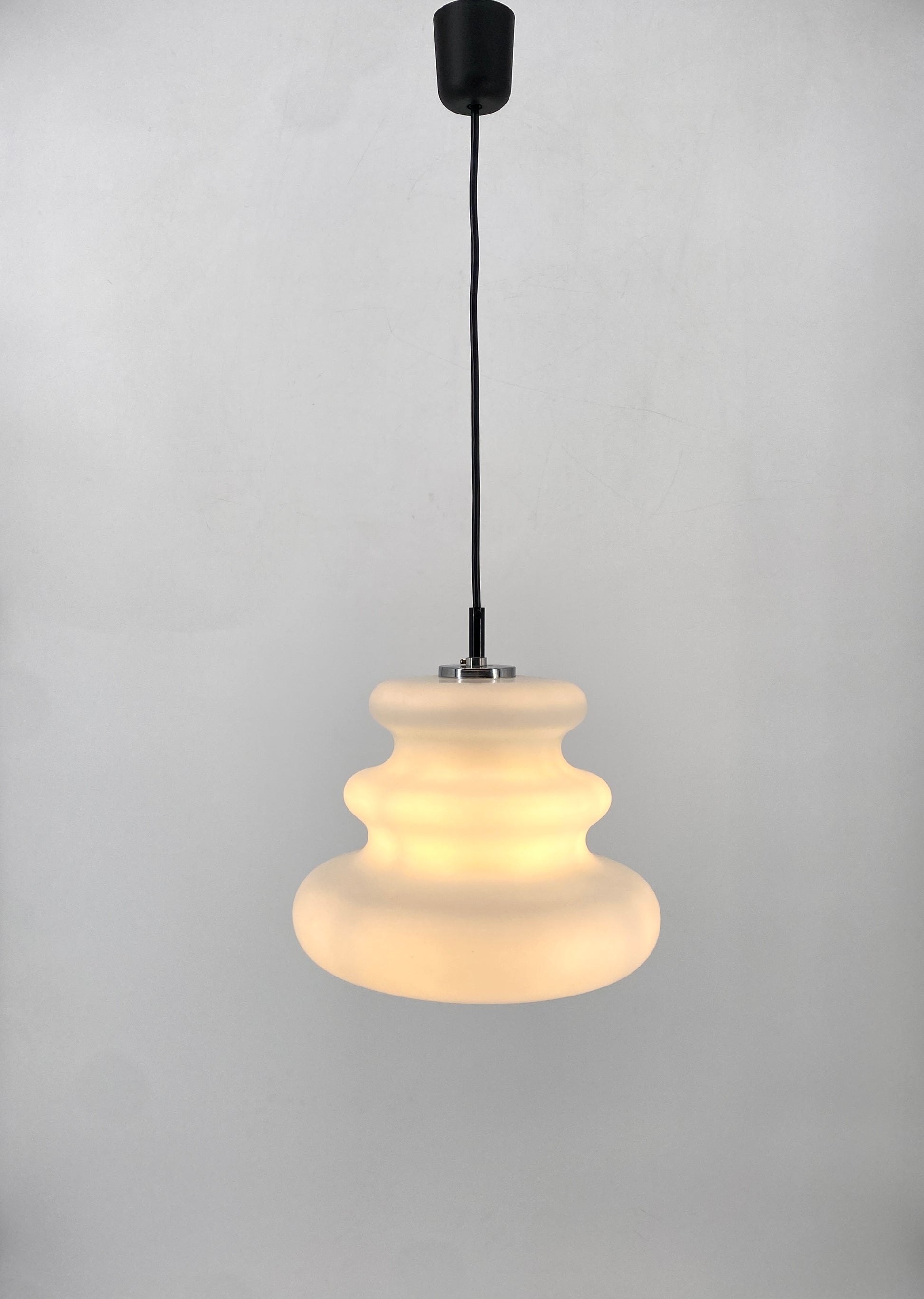 Hängelampe "AH1" aus mundgeblasenem Opalglas von Peill & Putzler