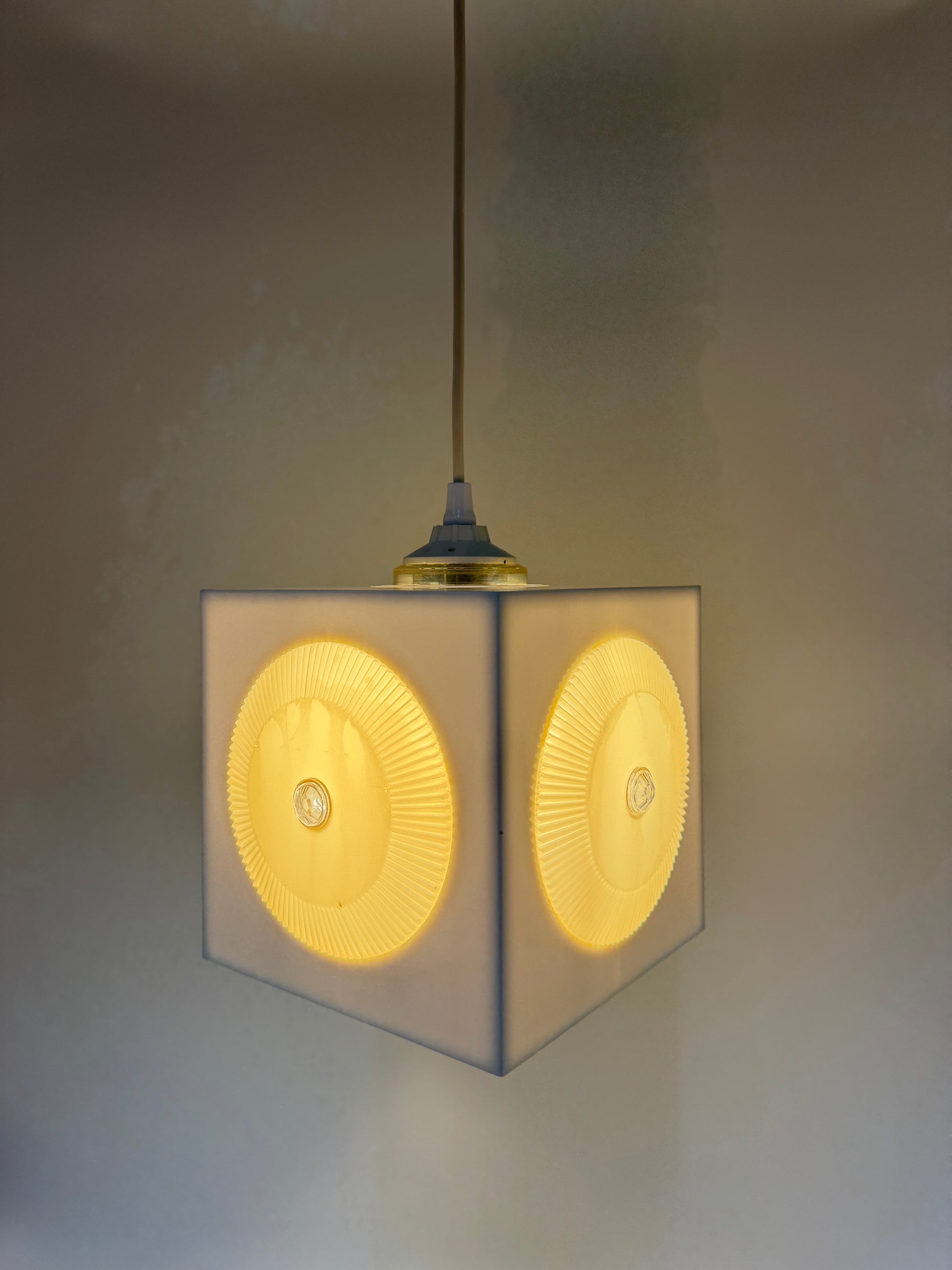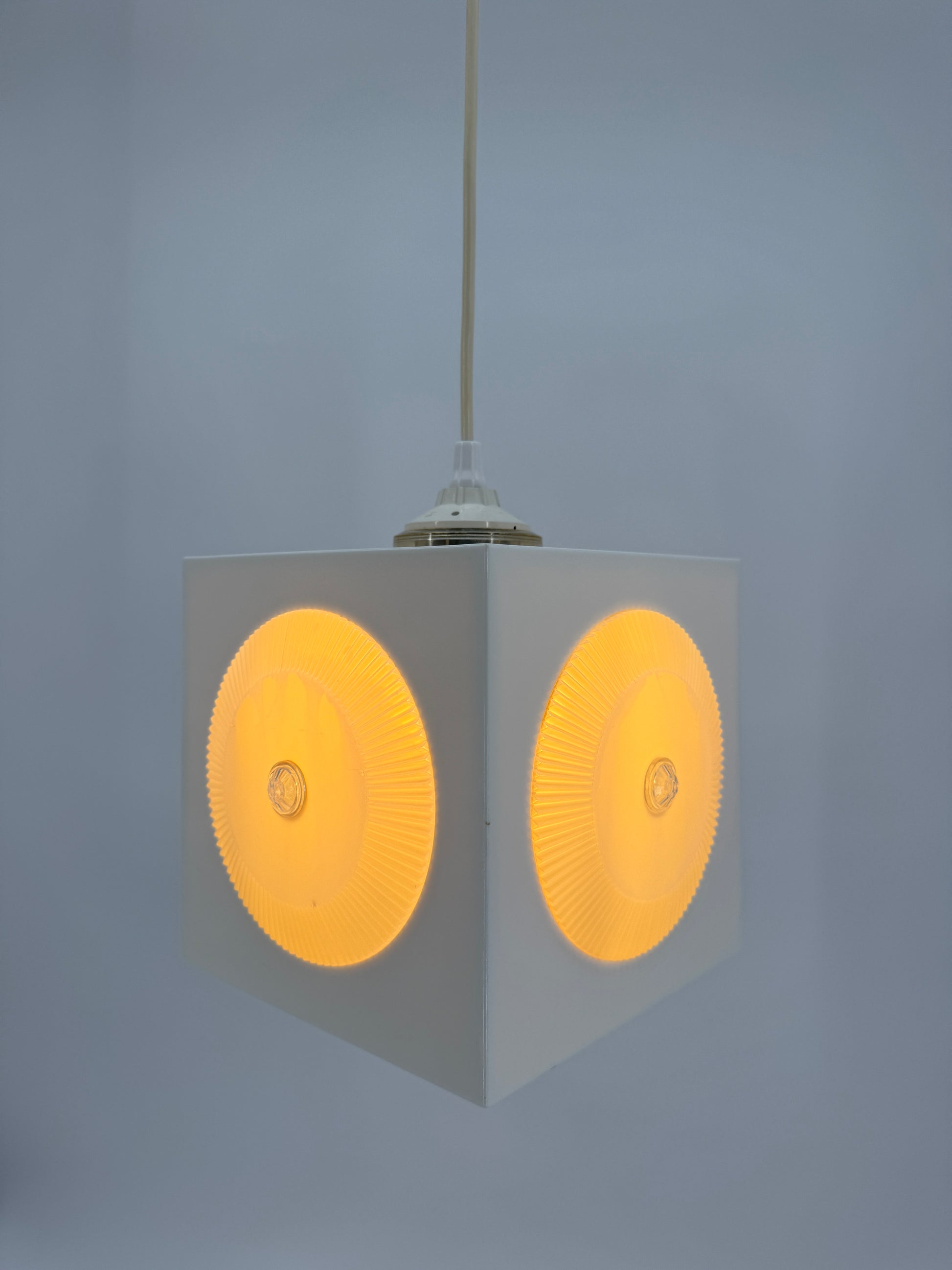 KUBISCHE SPACE AGE HÄNGELAMPE MID CENTURY DESIGN WEISS 70ER VINTAGE