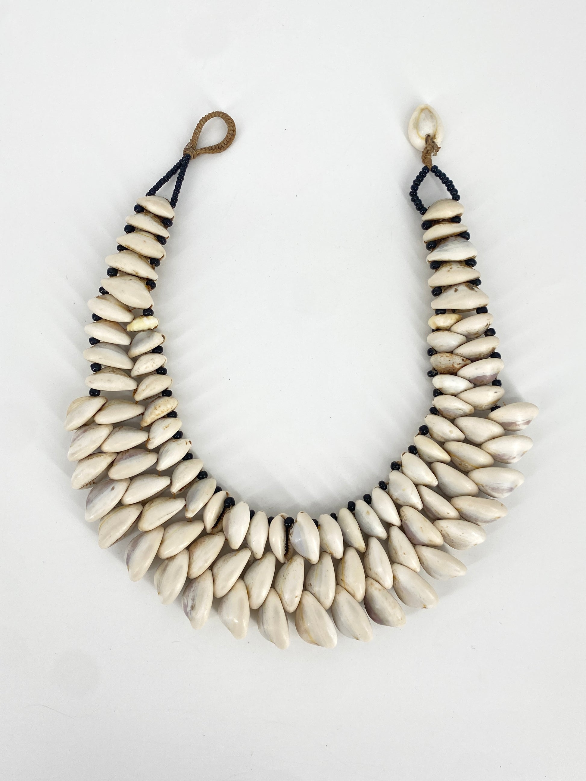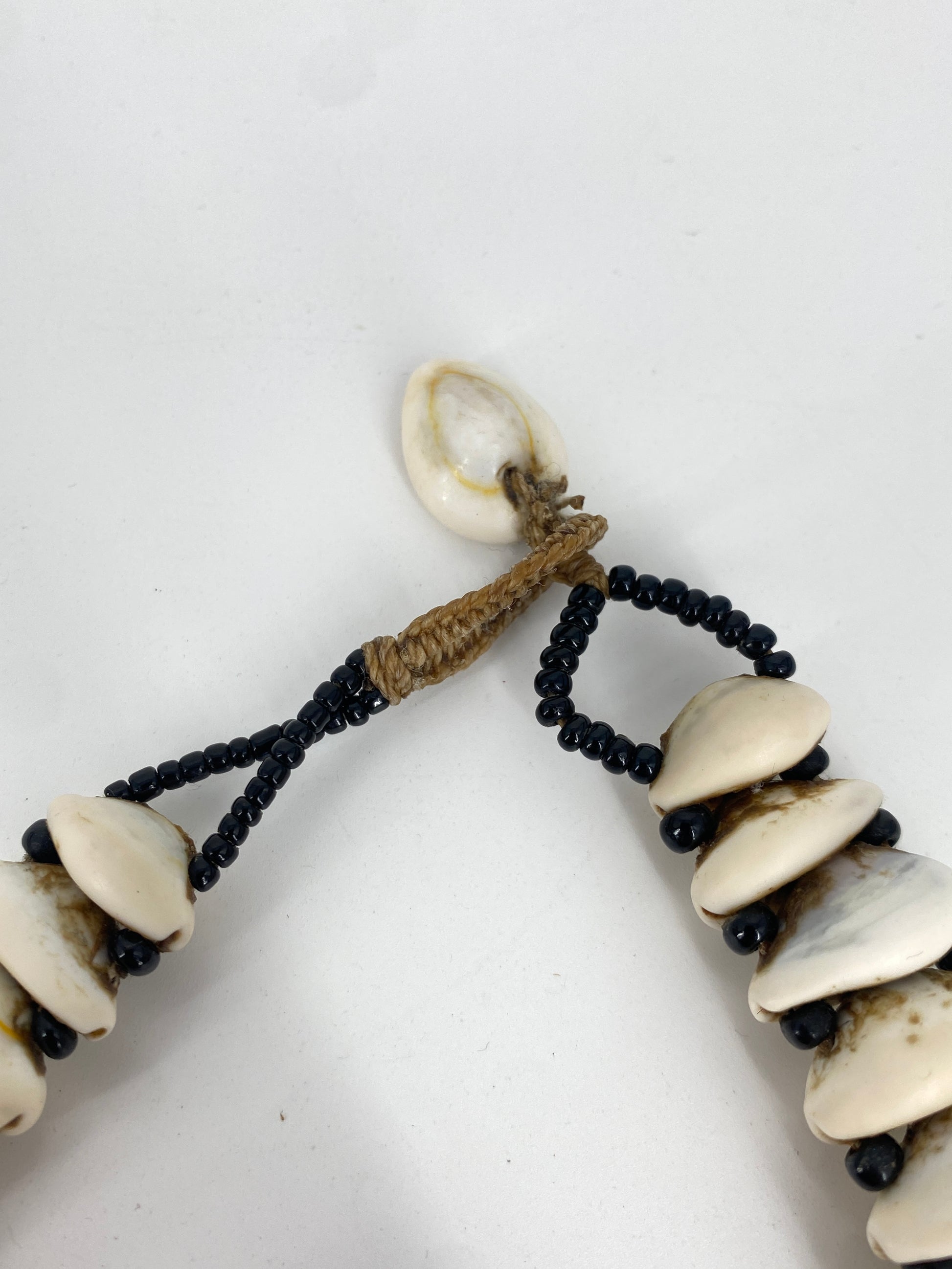 * schönes Statement Collier aus Muscheln und schwarzen Perlen