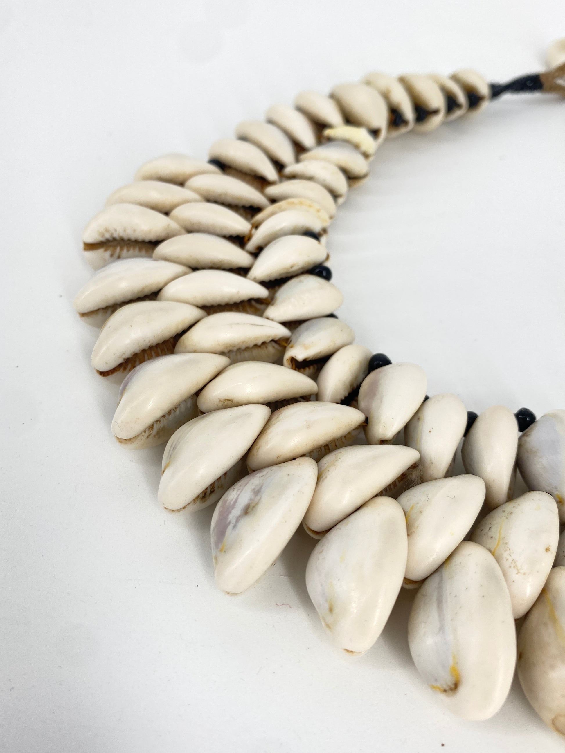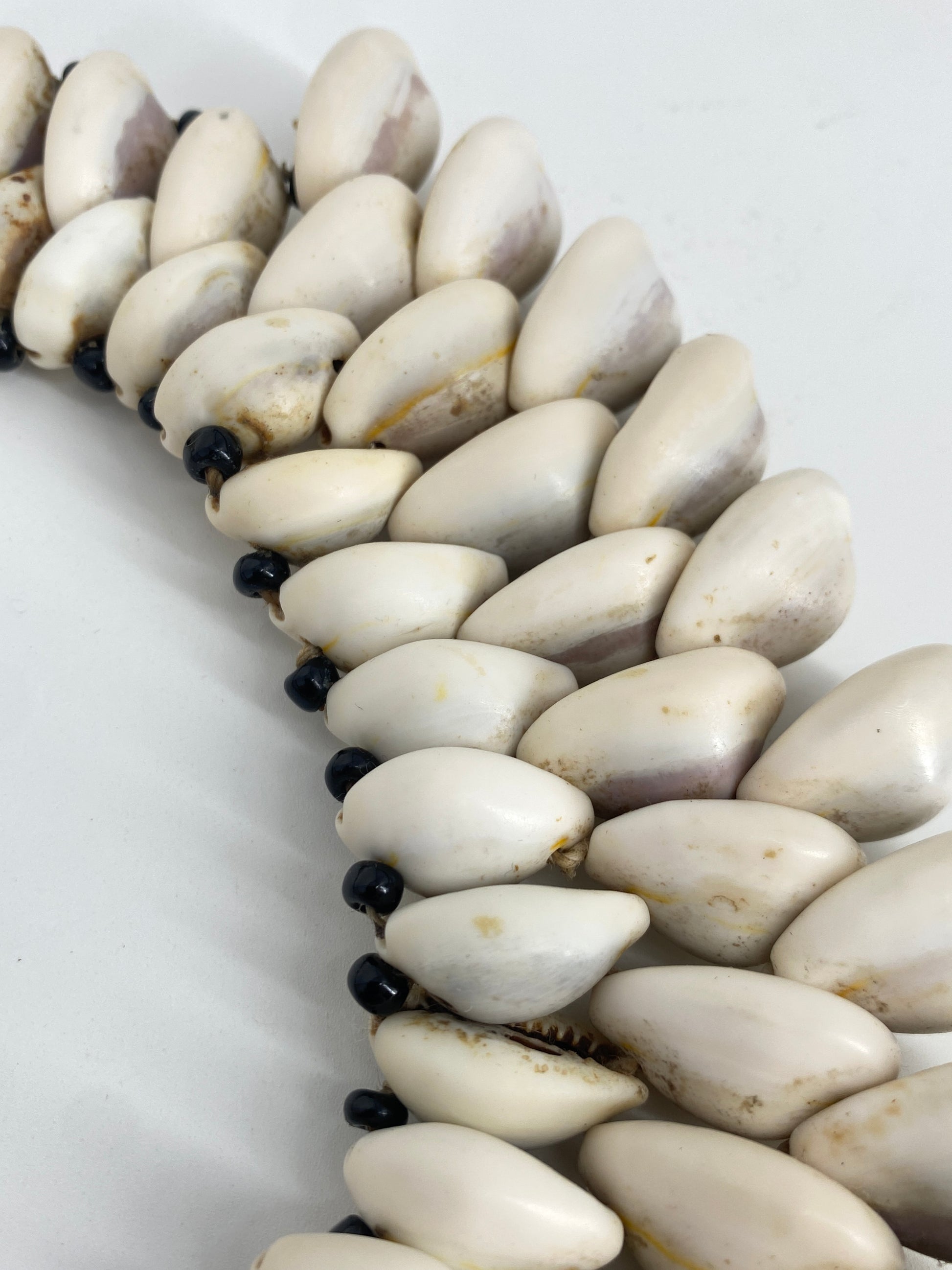 * drei Reihen aus weißen Kauri Muscheln mit beige bräunlicher Marmorierung