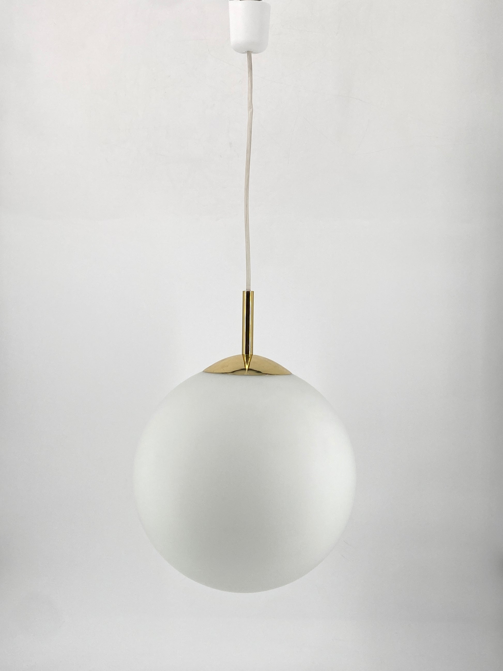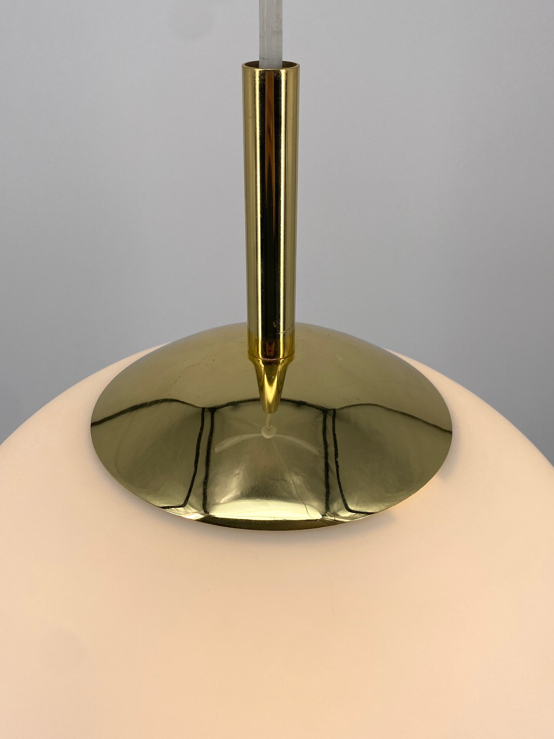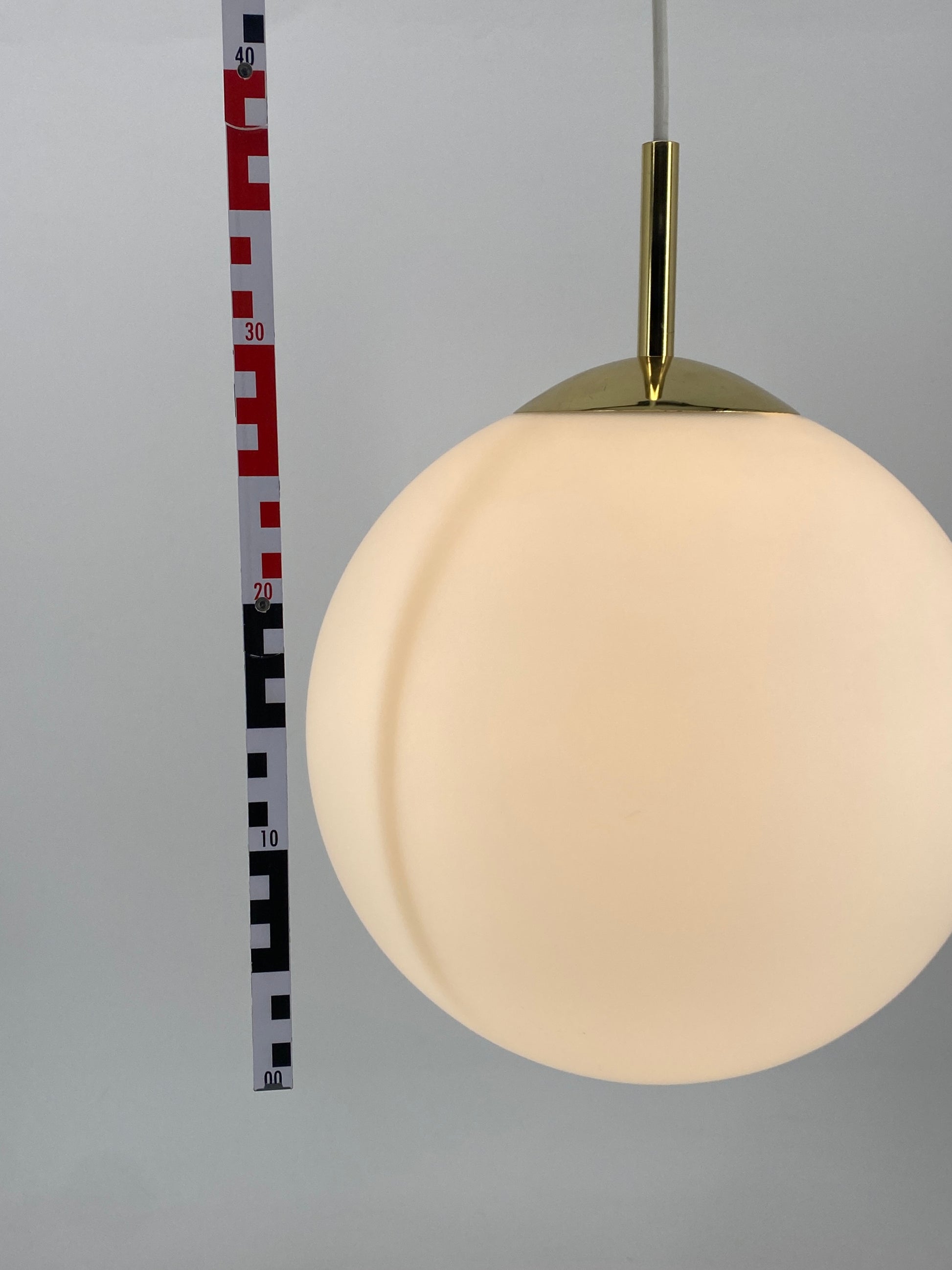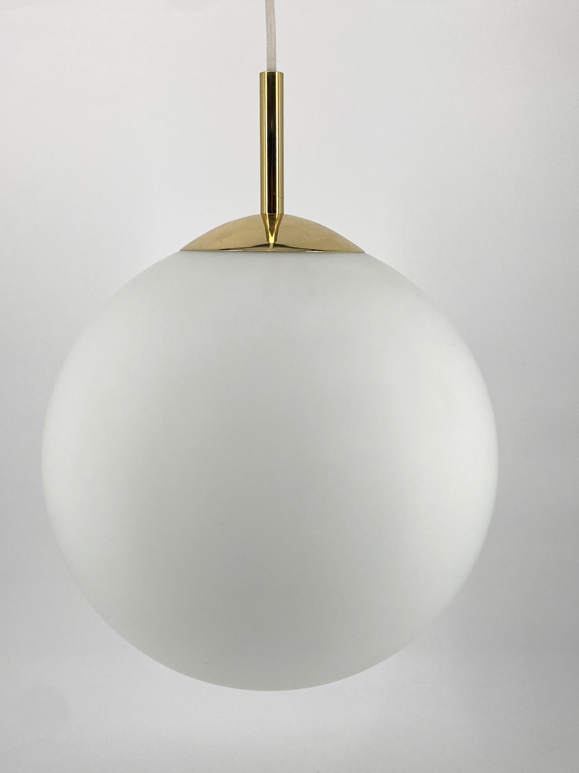 * HÄNGELAMPE SATINGLAS KUGEL GOLD VINTAGE MESSING Ø 30 cm