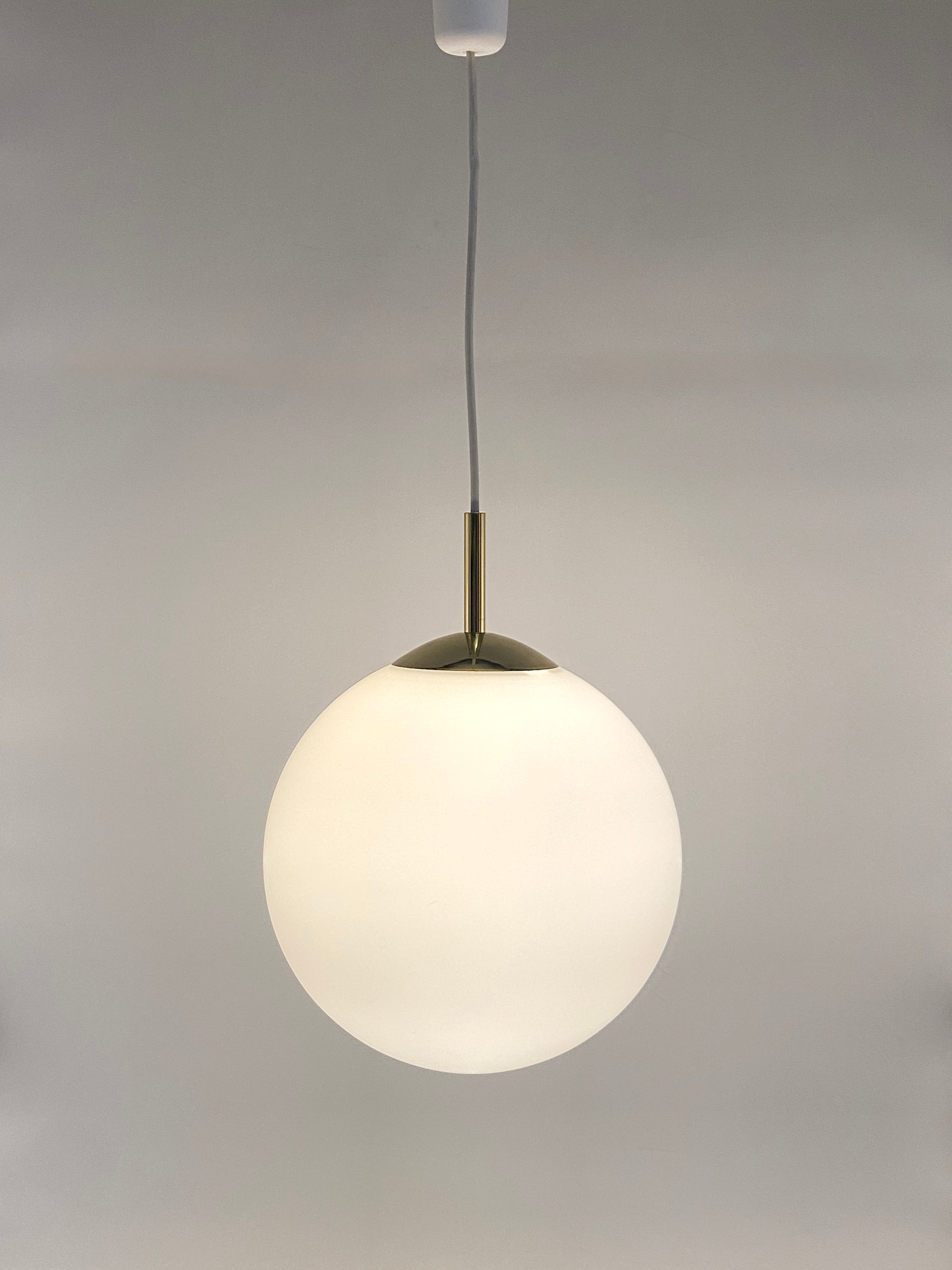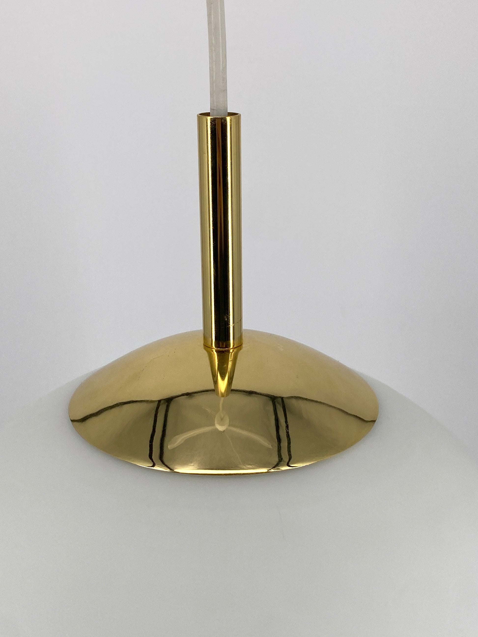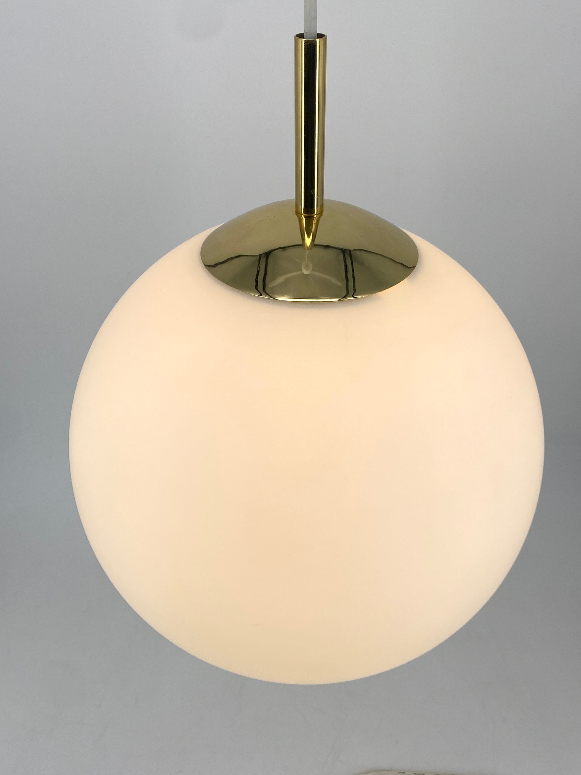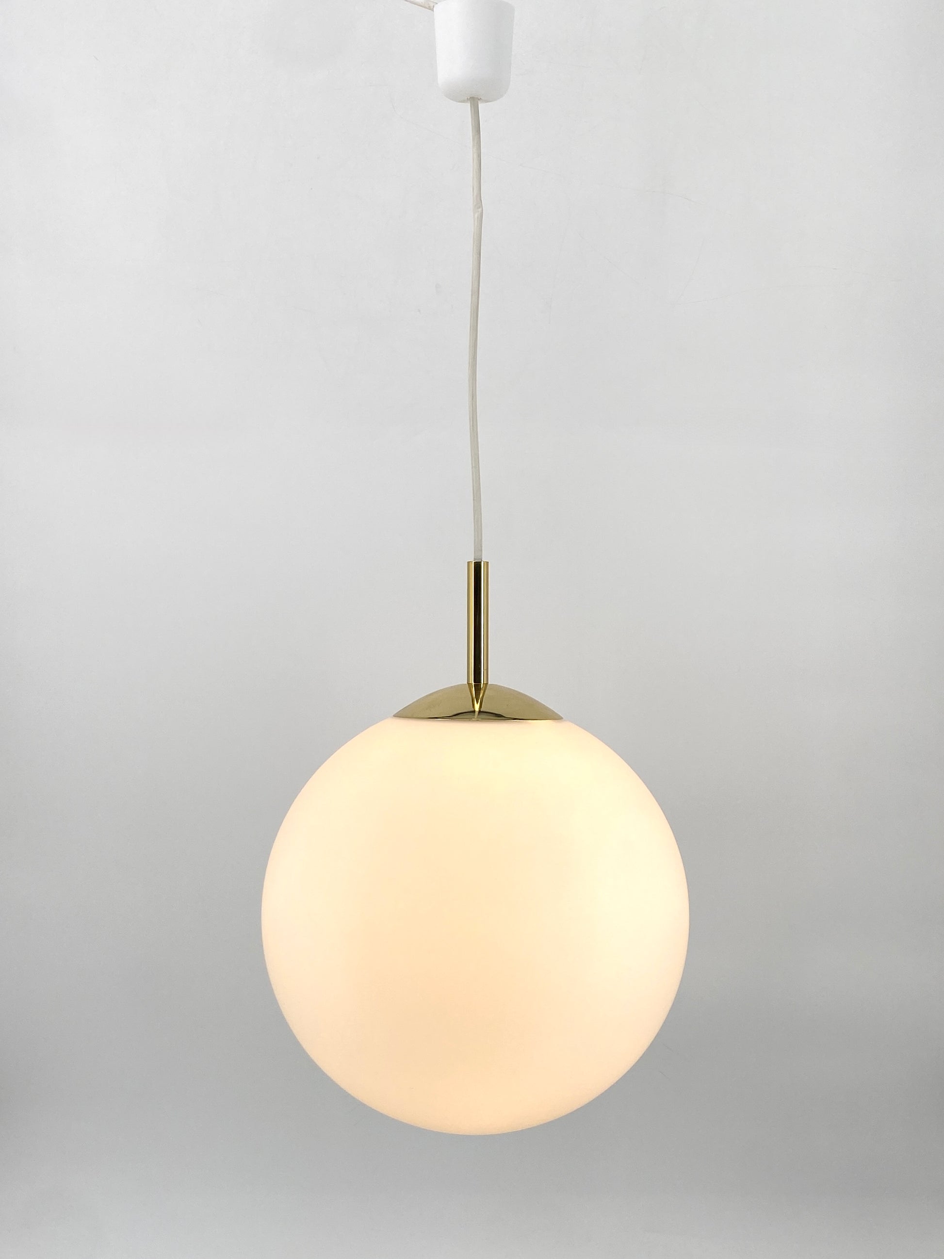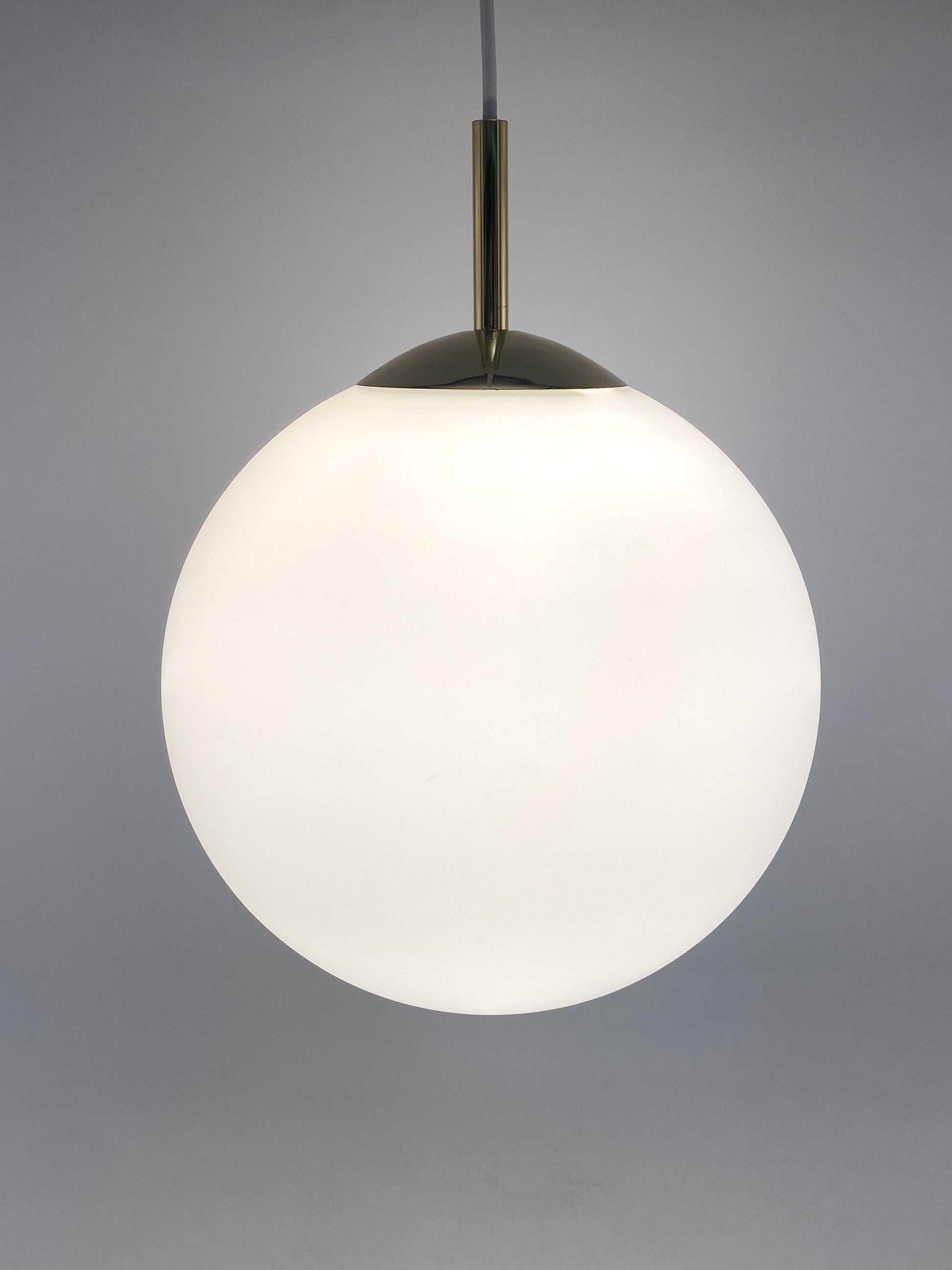 * HÄNGELAMPE SATINGLAS KUGEL GOLD VINTAGE MESSING Ø 30 cm