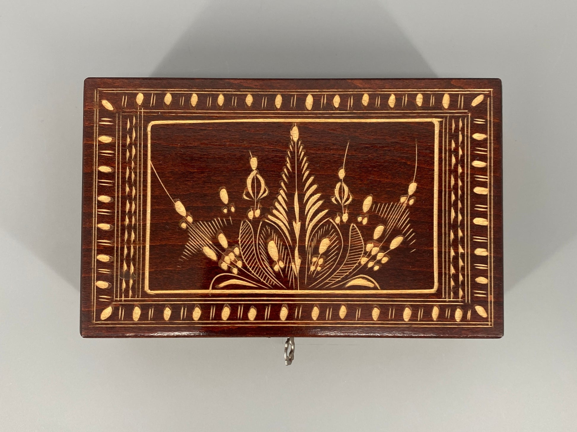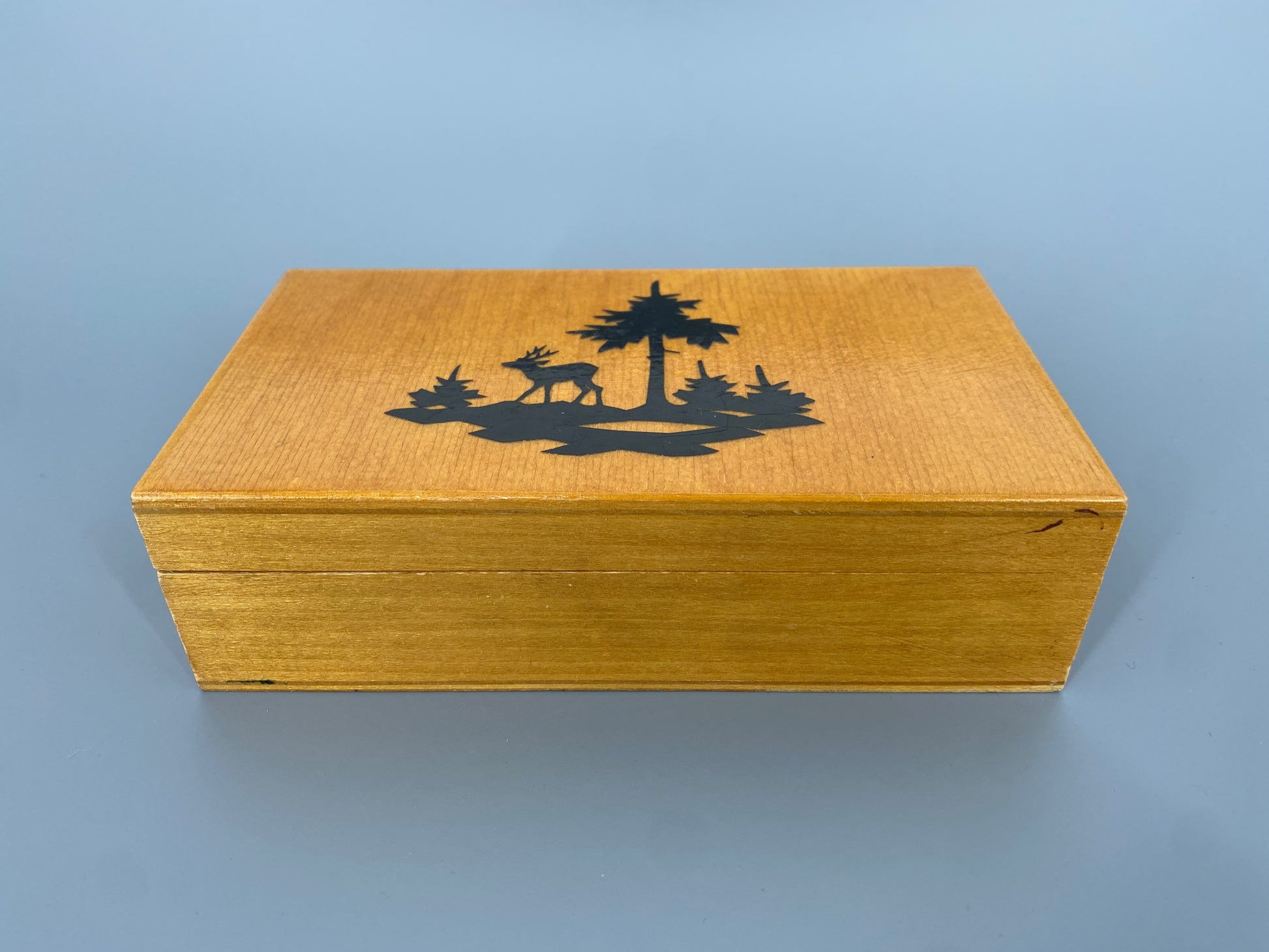* Holzschatulle mit Scherenschnitt von C. H. Walther
