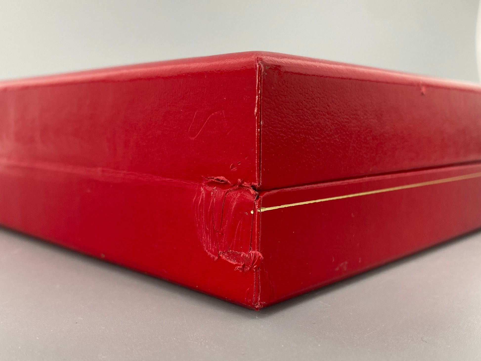 * Schmuckschatulle aus rotem Leder mit goldenen Details