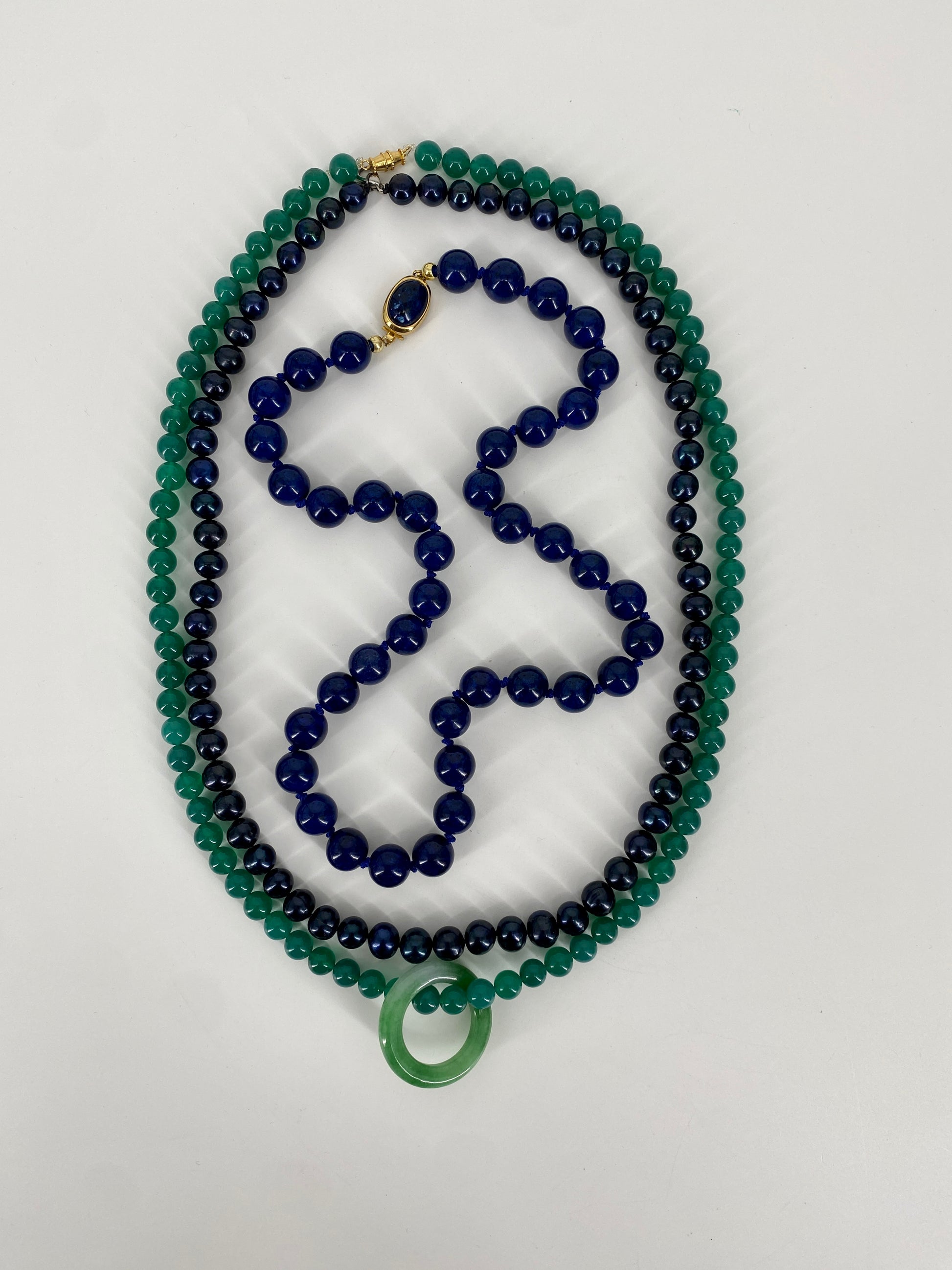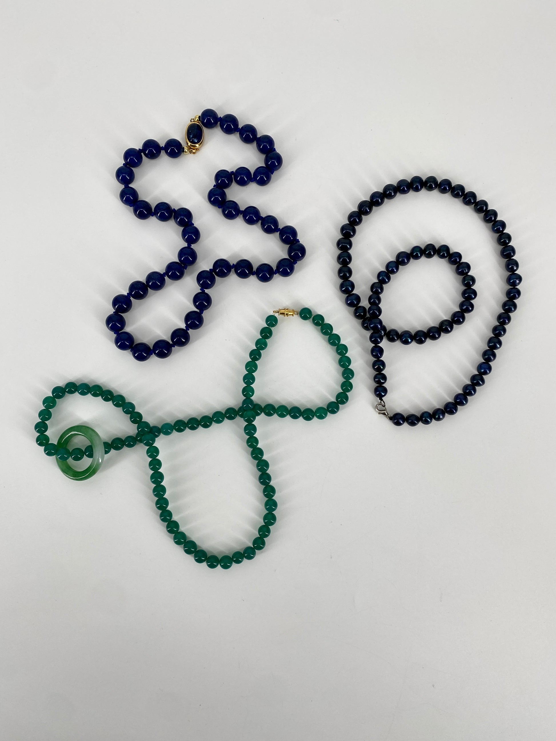 *KONVOLUT KETTEN PERLEN HALSKETTEN VINTAGE GRÜN BLAU SCHWARZ EDELSTEIN