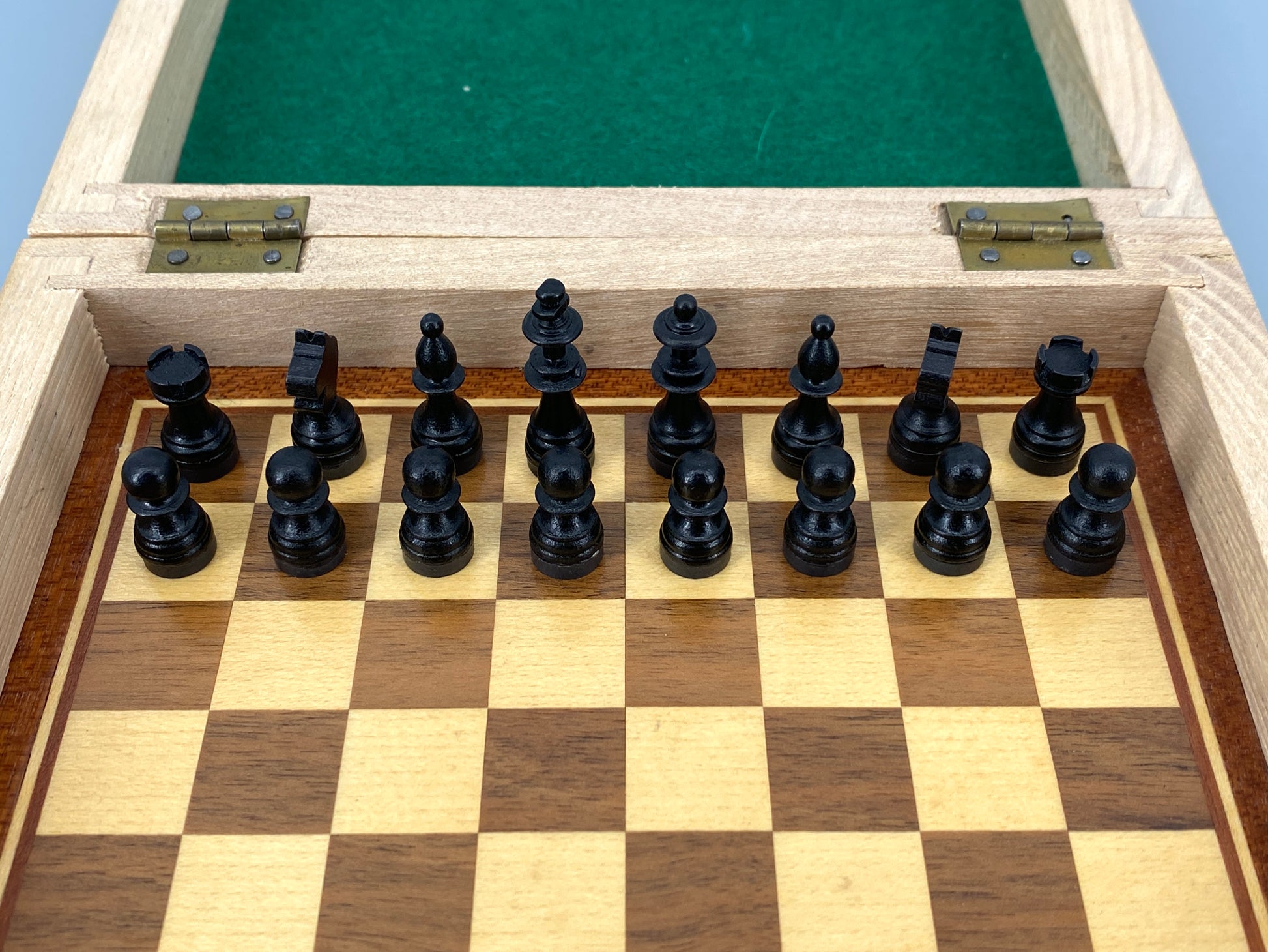 Magnetisches Schachspiel in Reisegröße aus Holz mit Intarsie