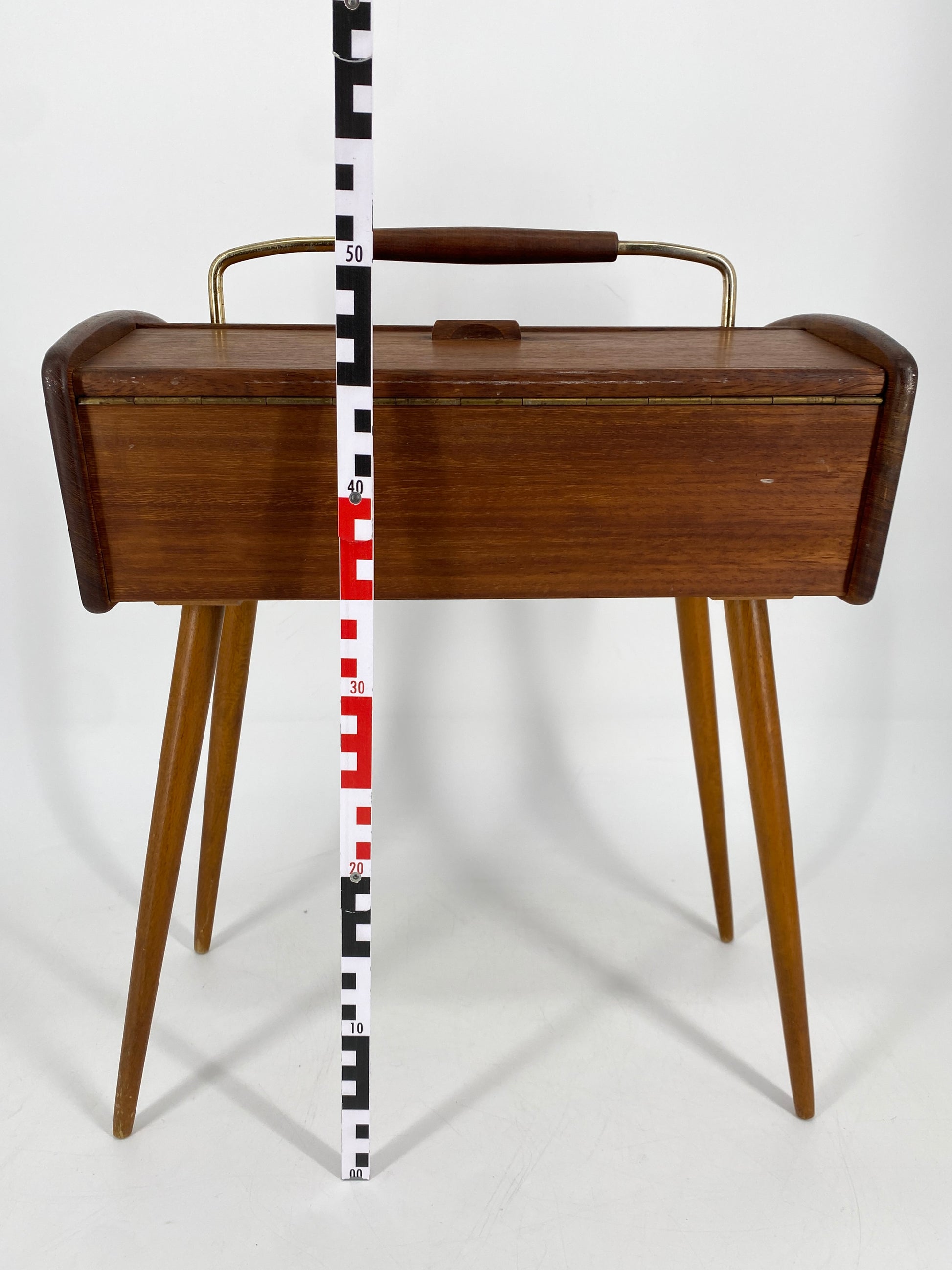 Mid Century Design Nähkasten aus Teak auf Beinen, 1950er