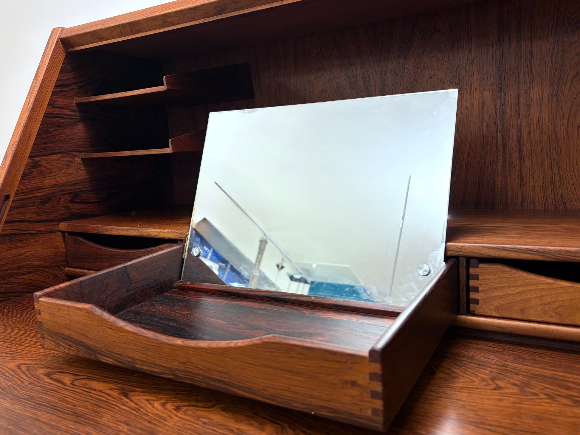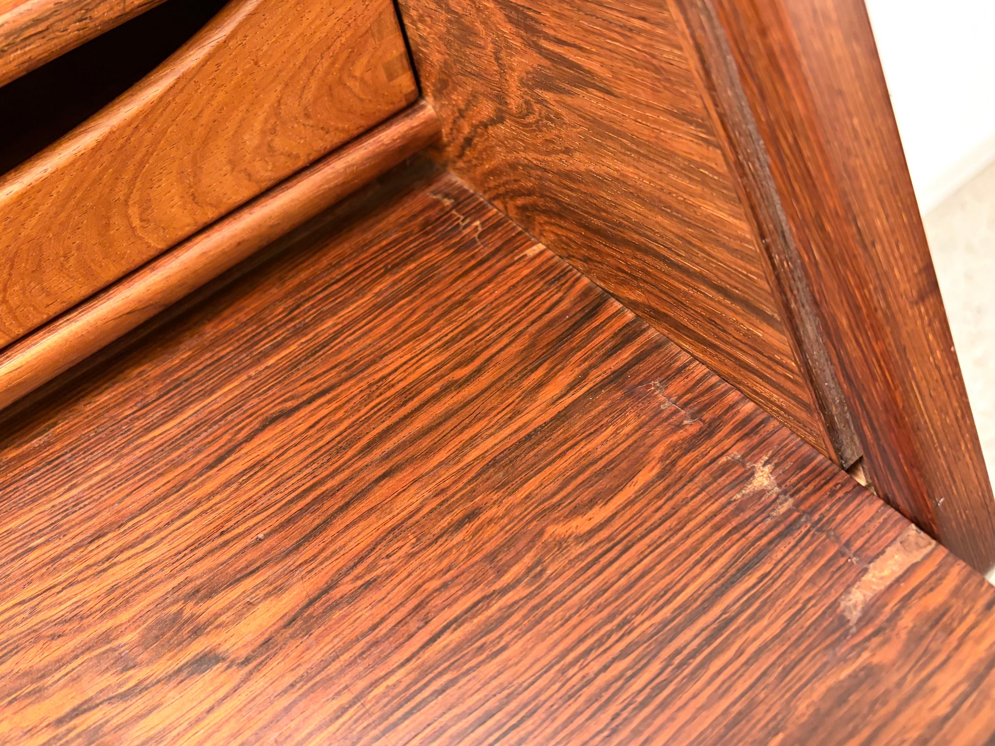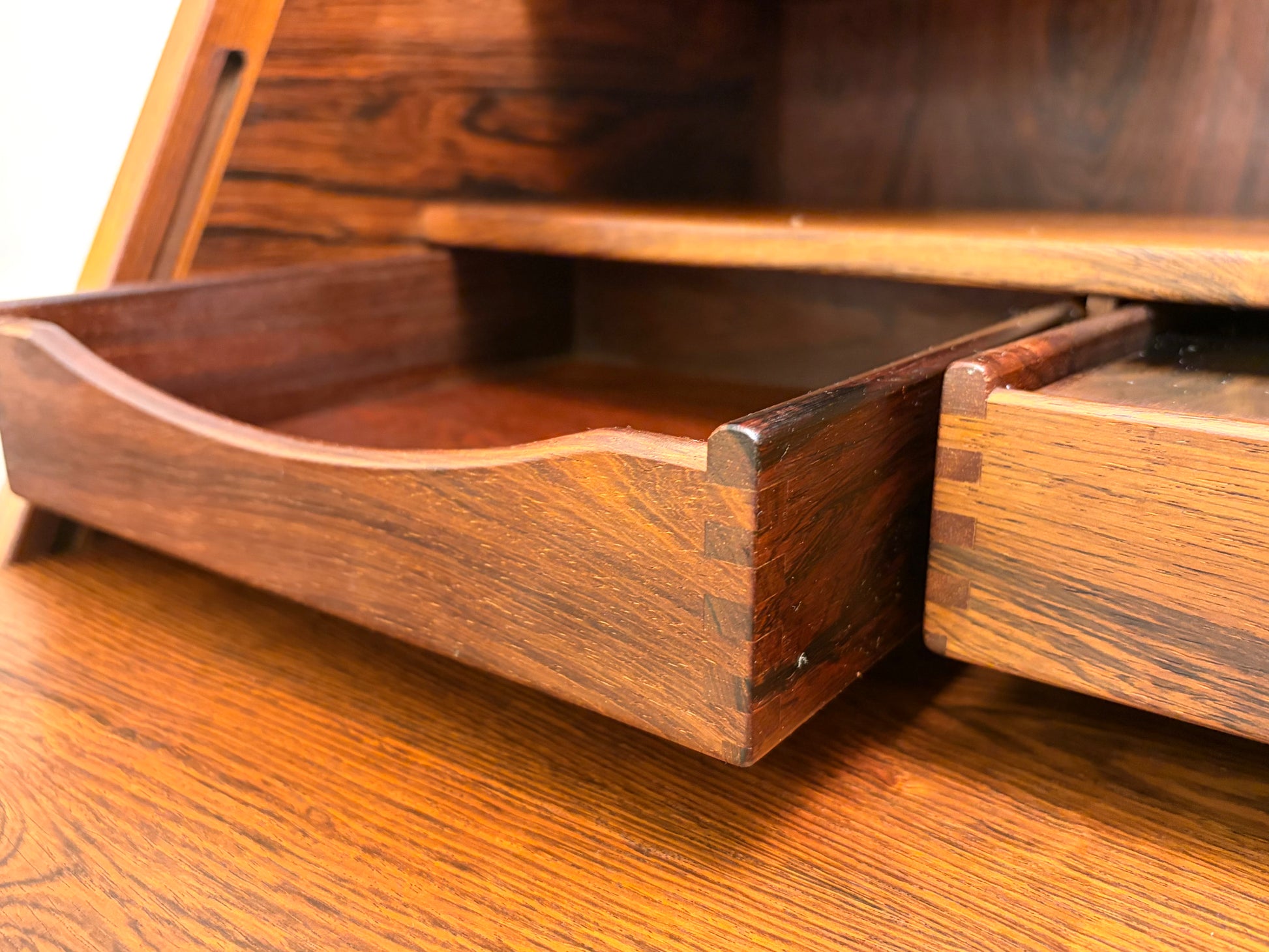 * wunderschöner, vintage Zustand mit normalen Alters,-und Benutzungspuren. Kleiner Furnierschaden auf der rechten Seite der Schreibplatte. Siehe Fotos.