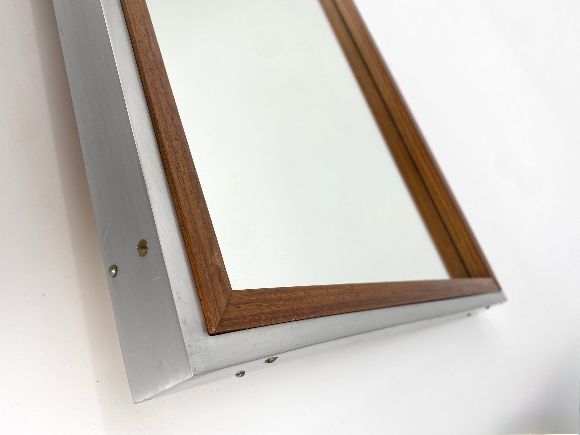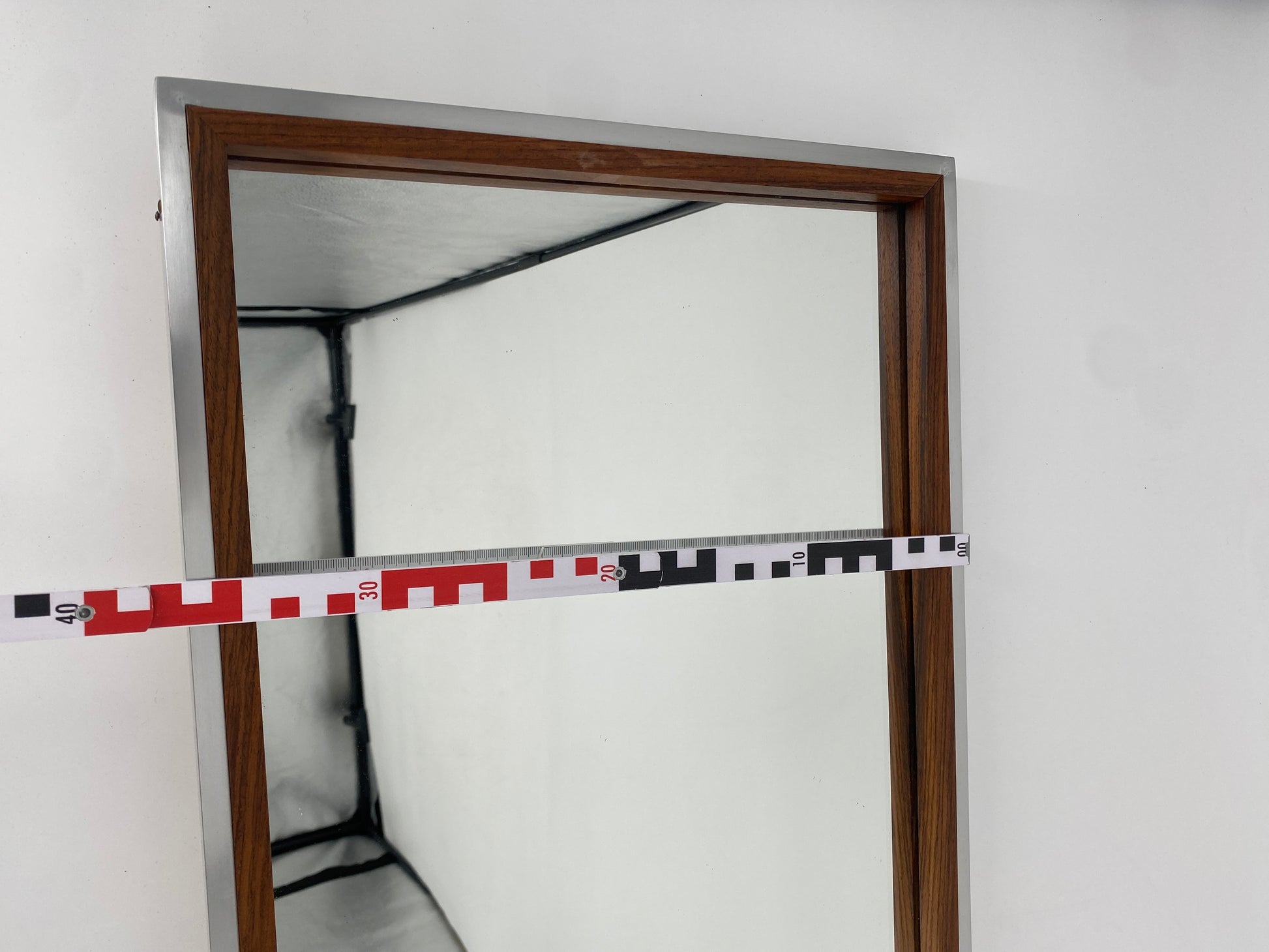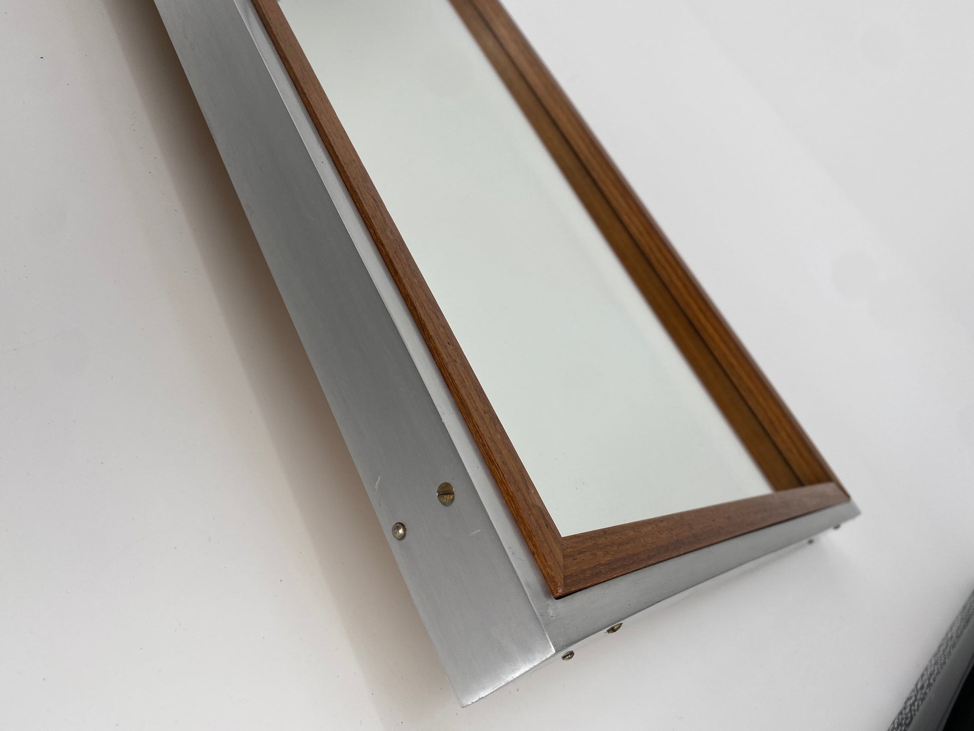 *rechteckiger Wandspiegel, mit umlaufenden Teakholz-und Aluminium Rahmen