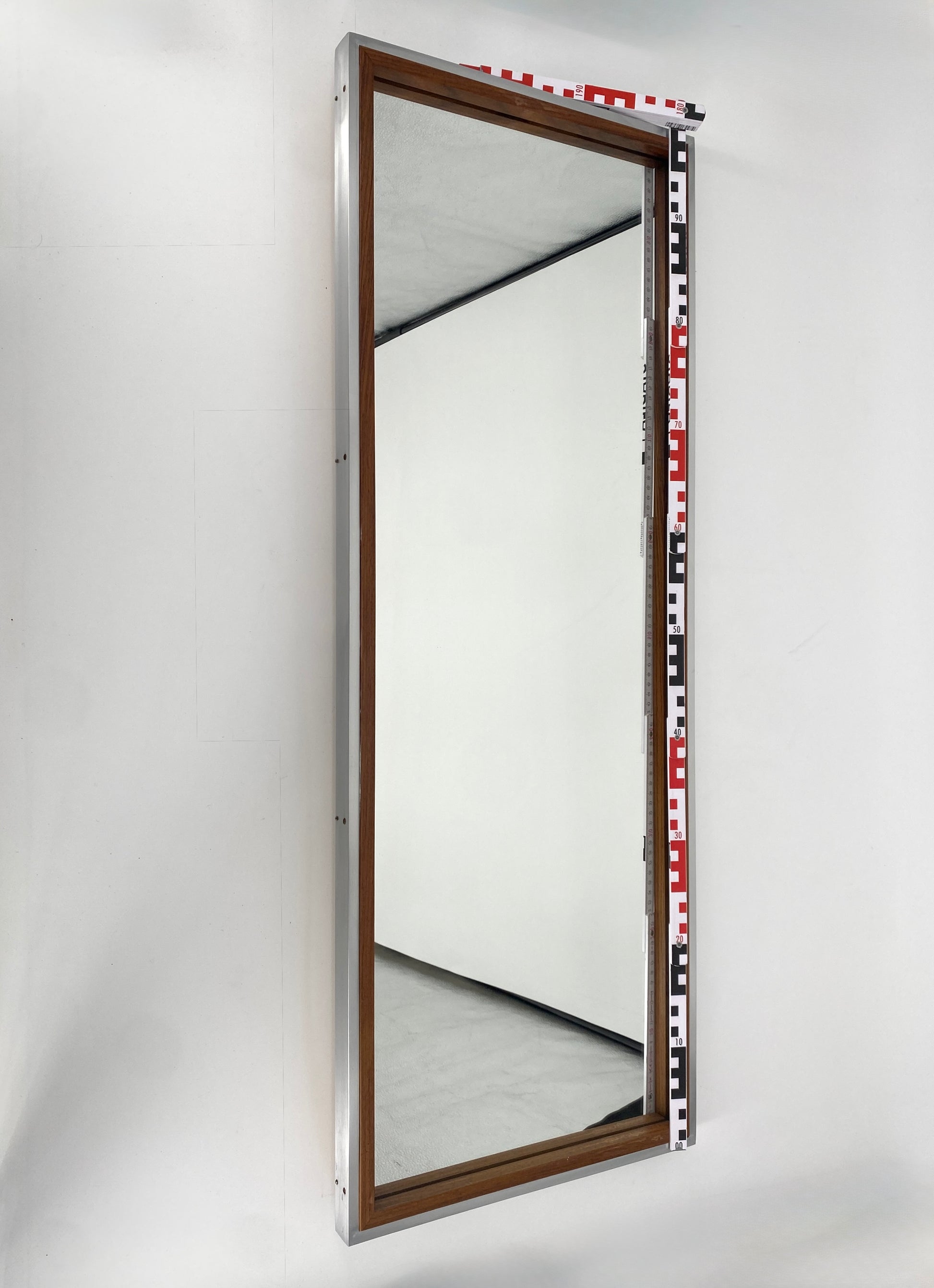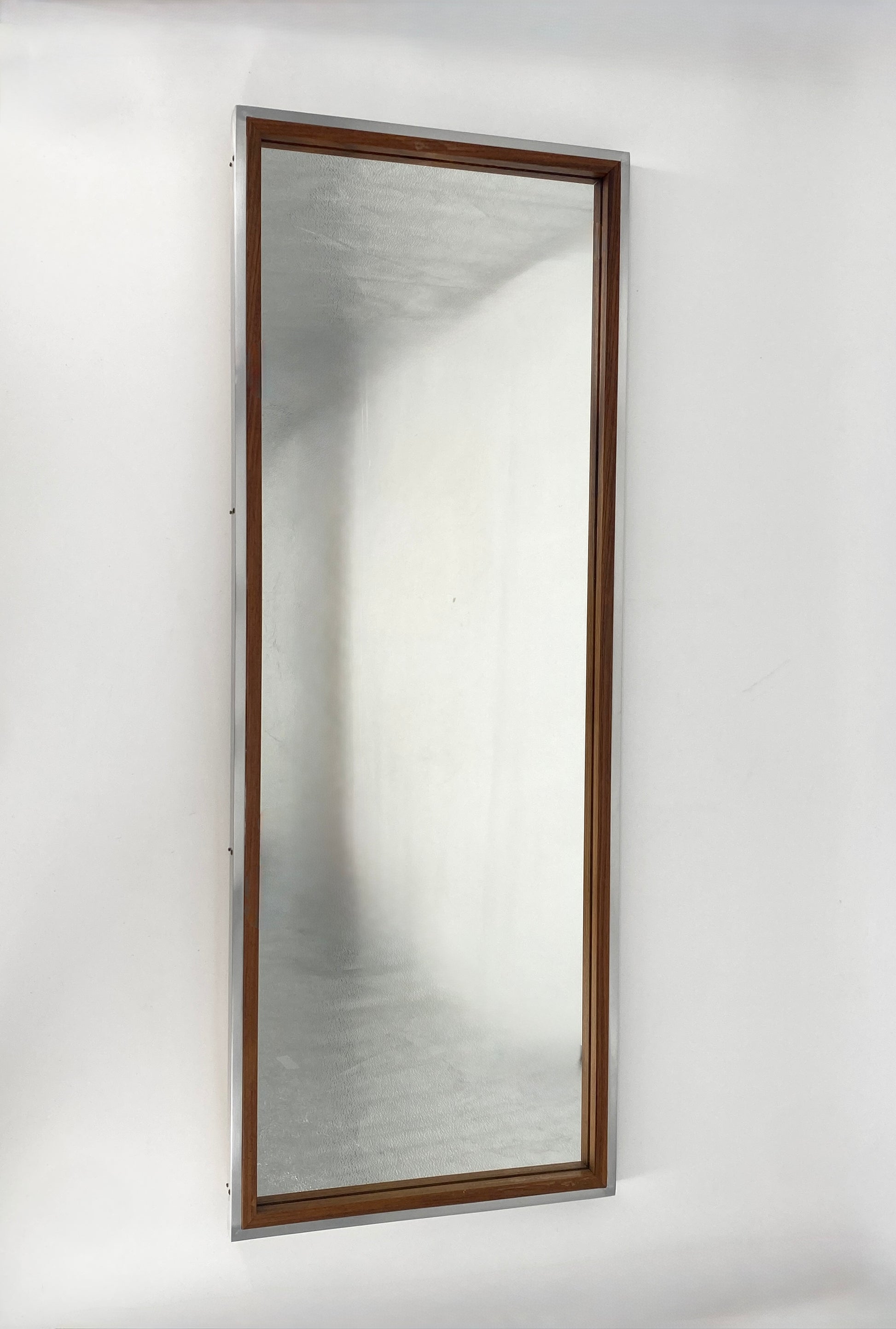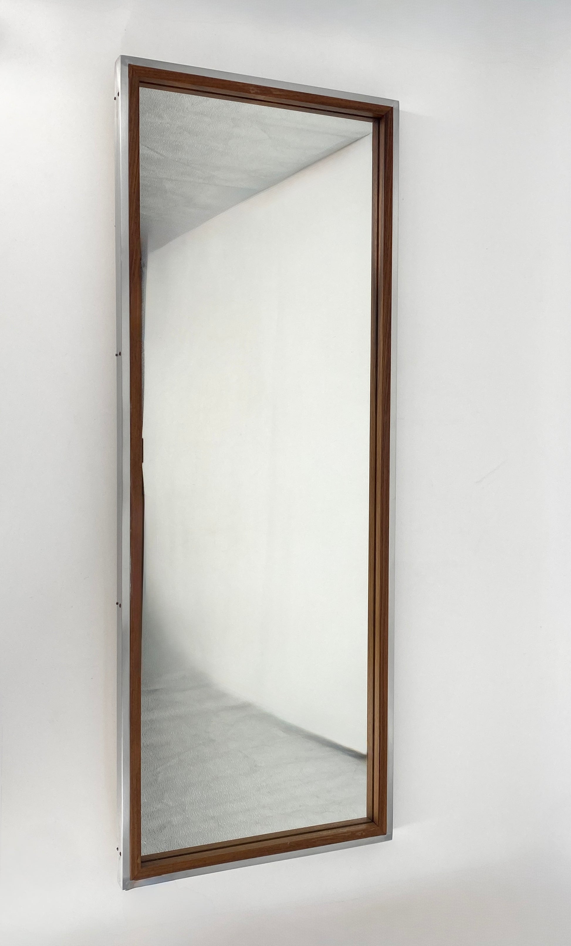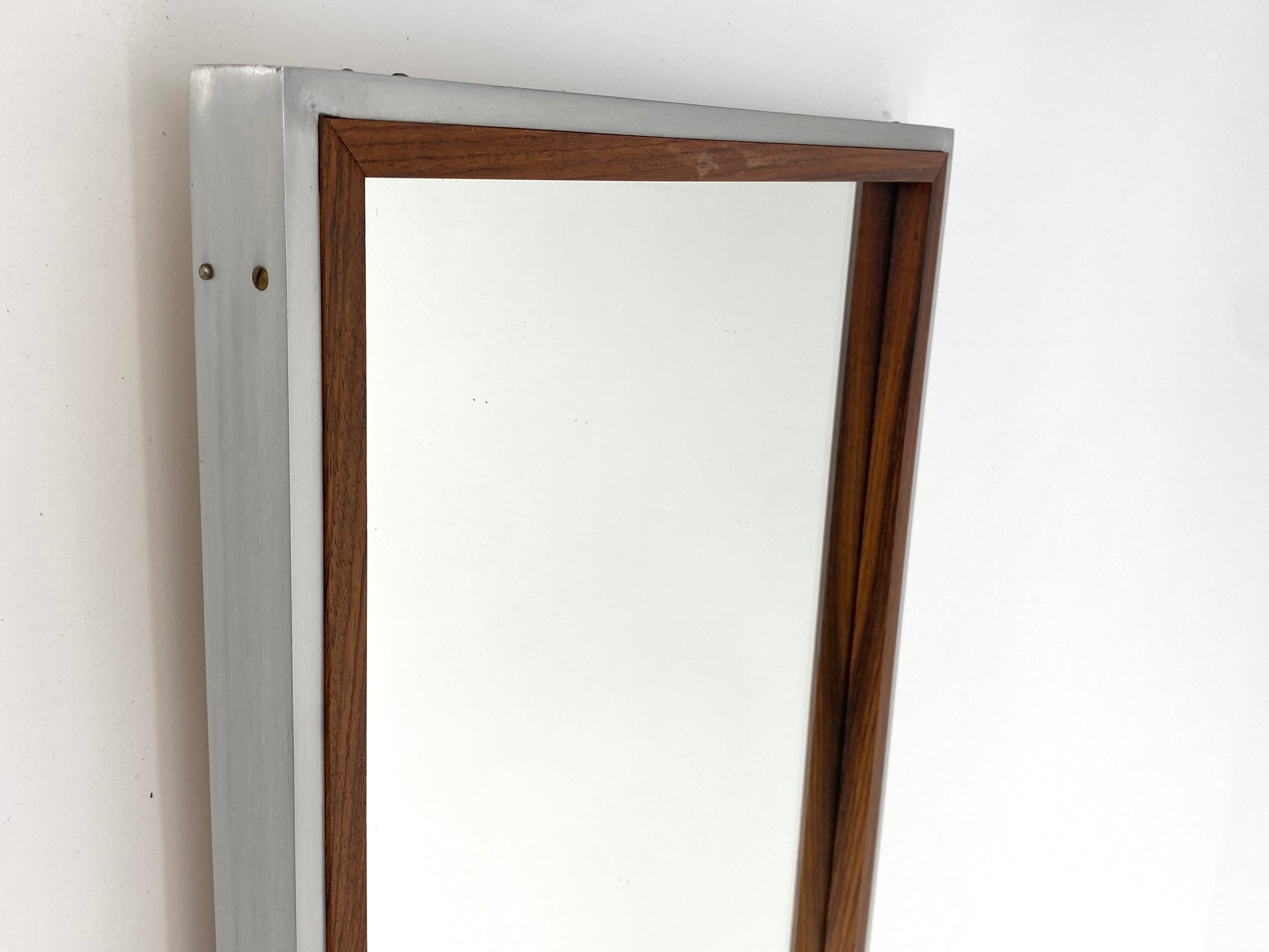 *rechteckiger Wandspiegel, mit umlaufenden Teakholz-und Aluminium Rahmen