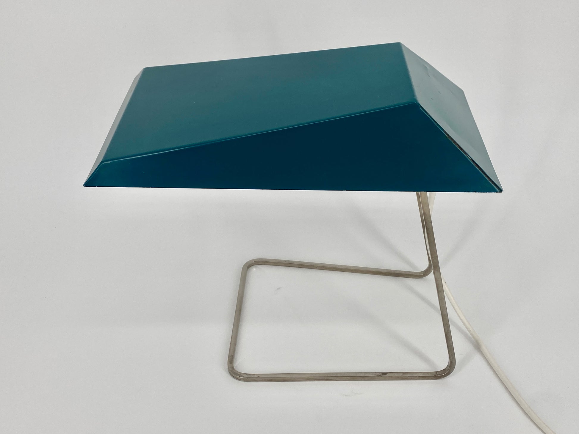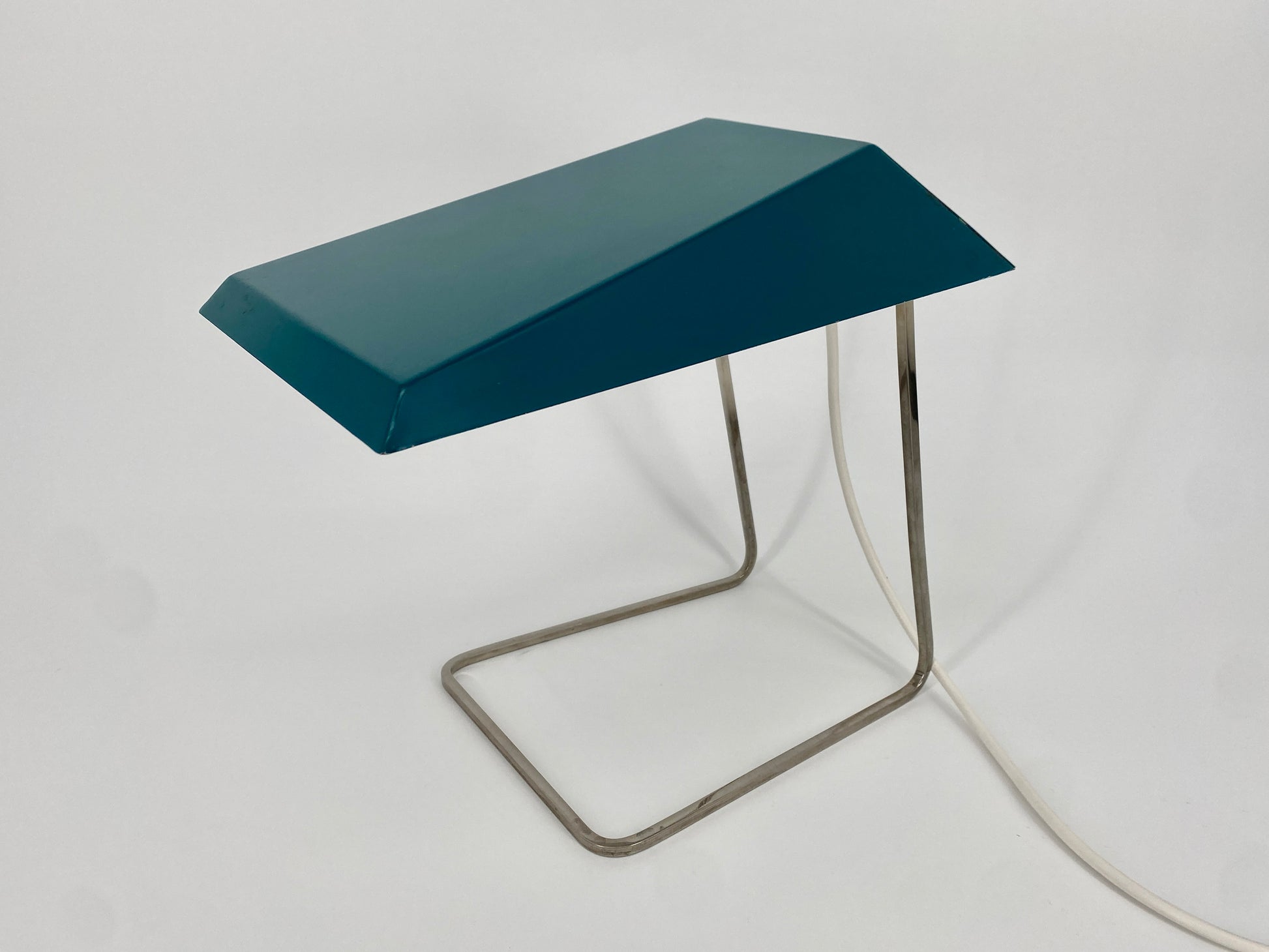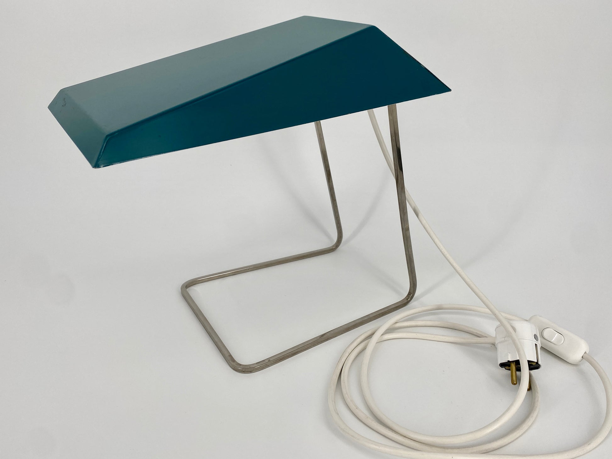 Minimalistische Tischlame von Klaus Hempel für Kaiser Leuchten mit türkisfarbenem Schirm, Deutschland 1960er