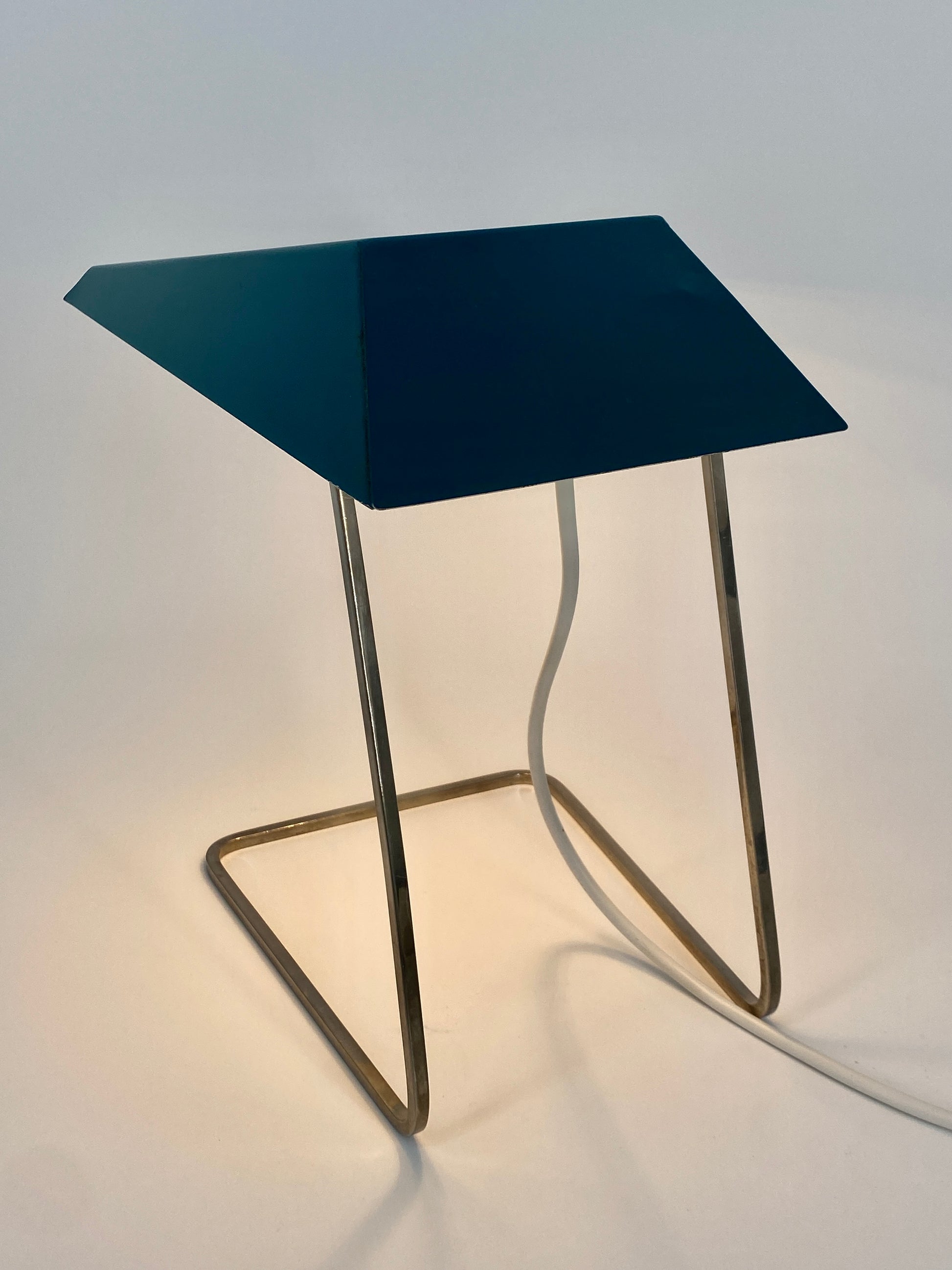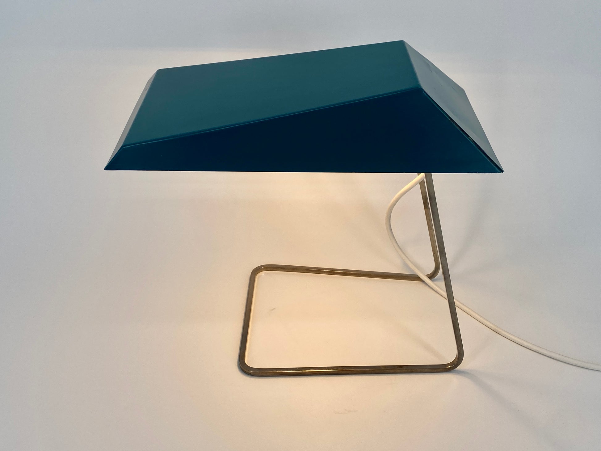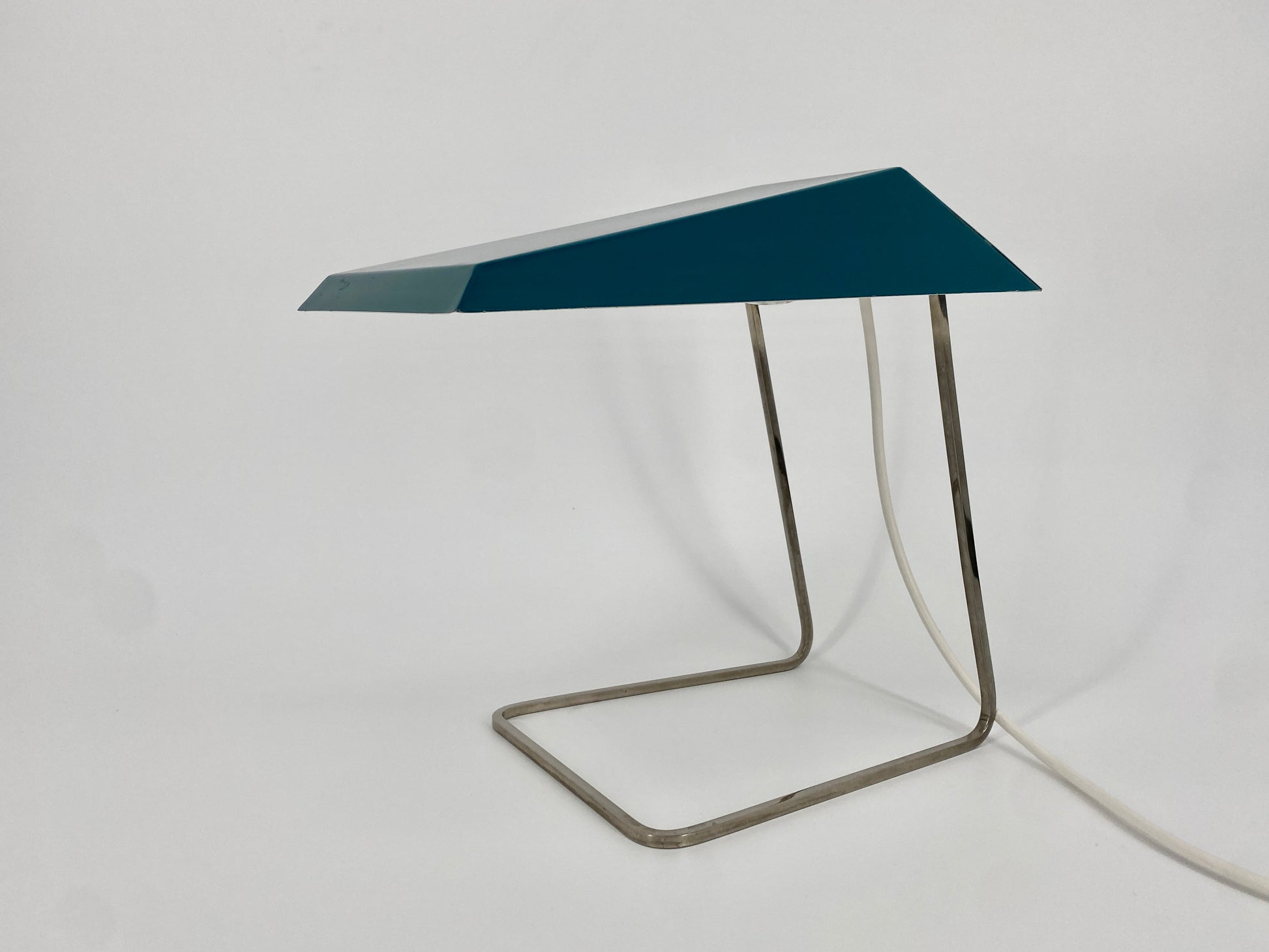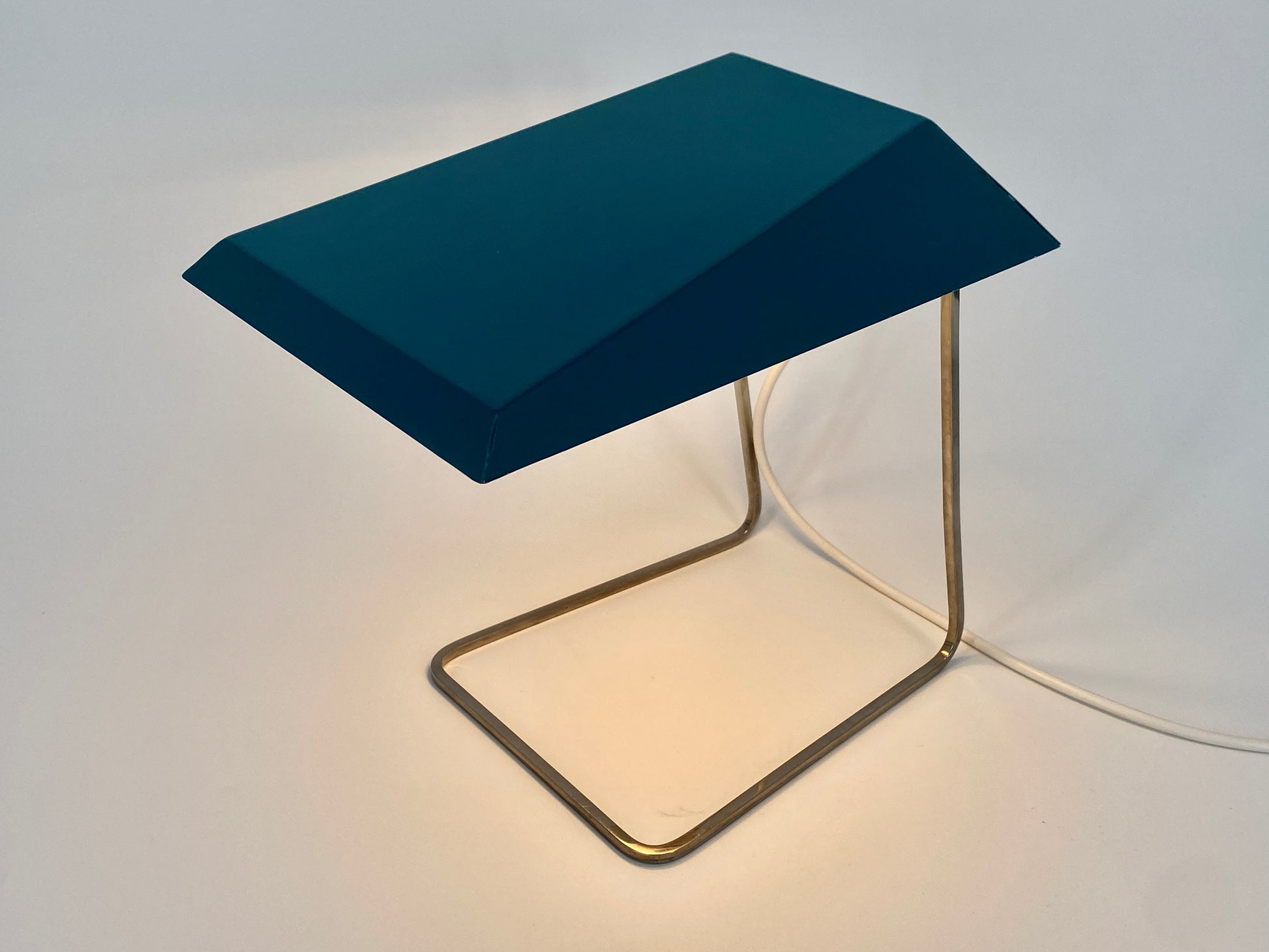 Minimalistische Tischlame von Klaus Hempel für Kaiser Leuchten mit türkisfarbenem Schirm, Deutschland 1960er
