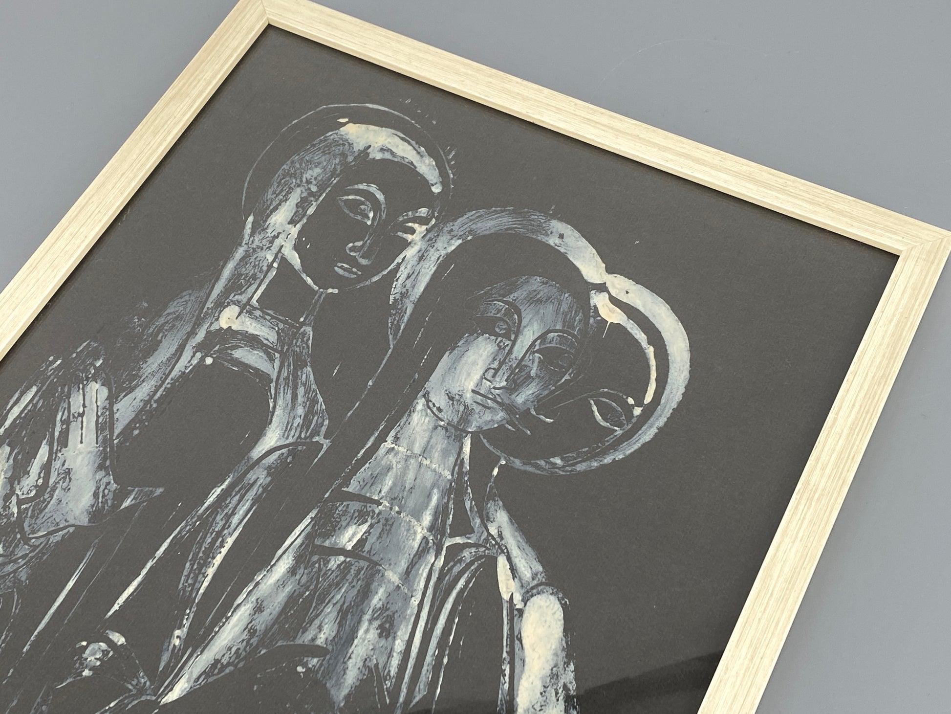 * ÖLGEMÄLDE ENGEL MADONNA KIRCHENHEILIGE MONOTYPIE GERAHMT RELIGIÖS VINTAGE UNIKAT