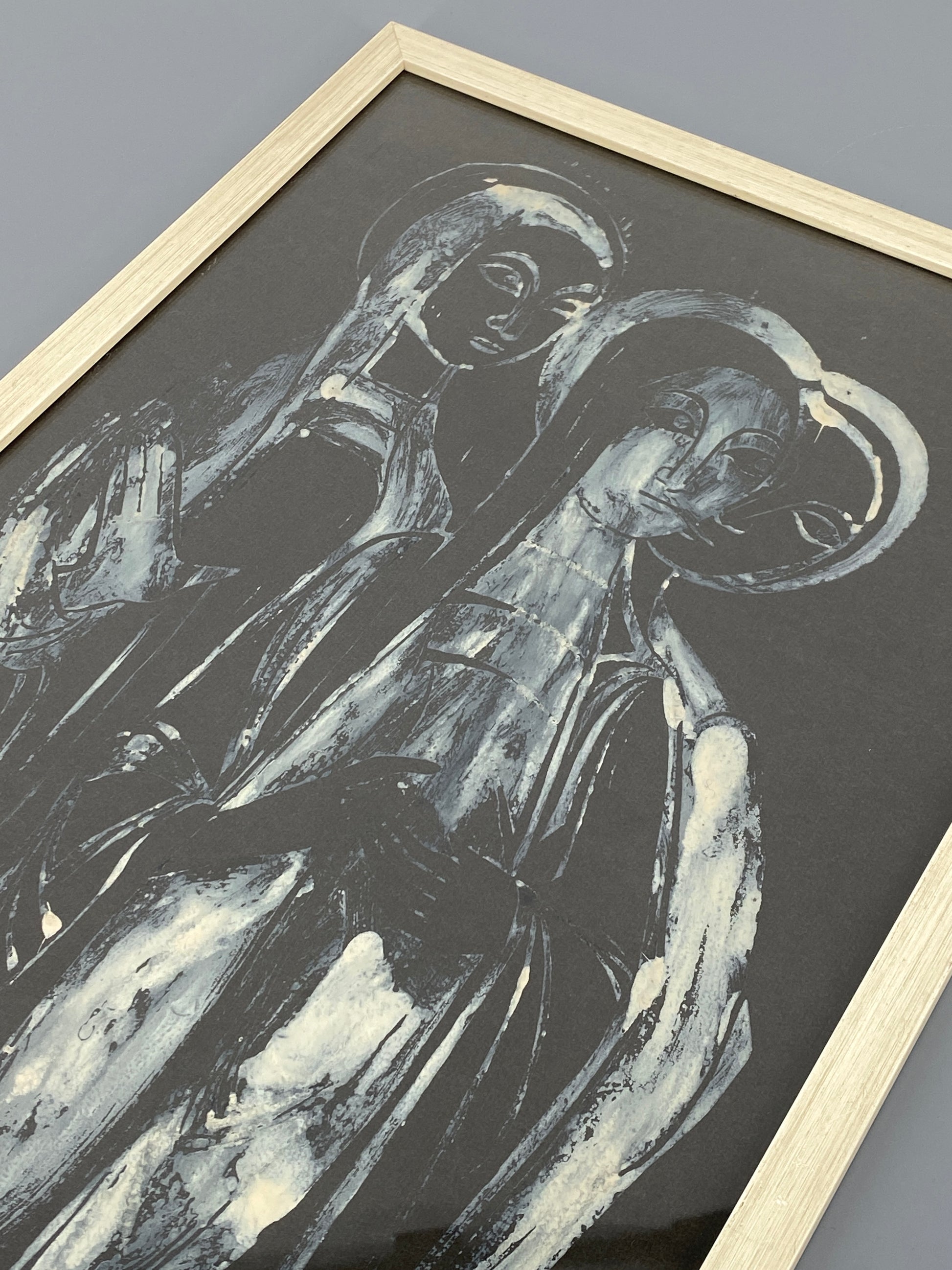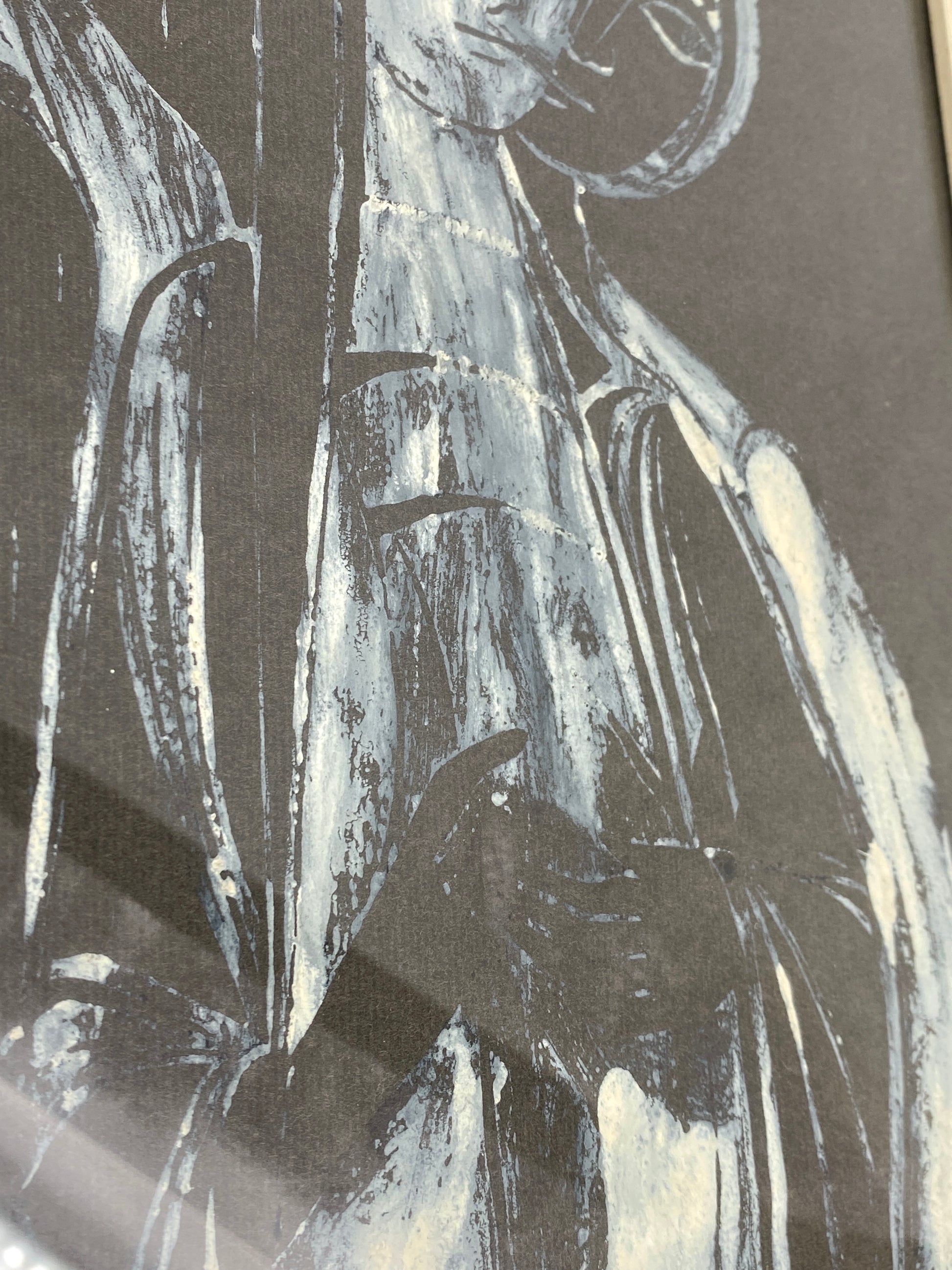 Monotypie "Engel" in weißem Rahmen gerahmt, Unikat