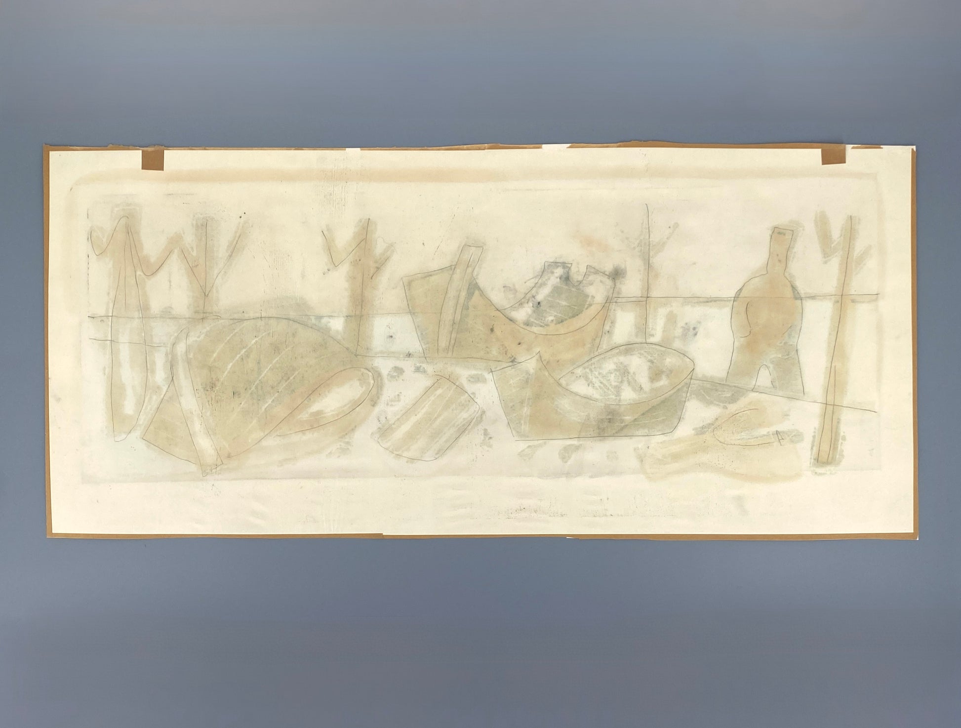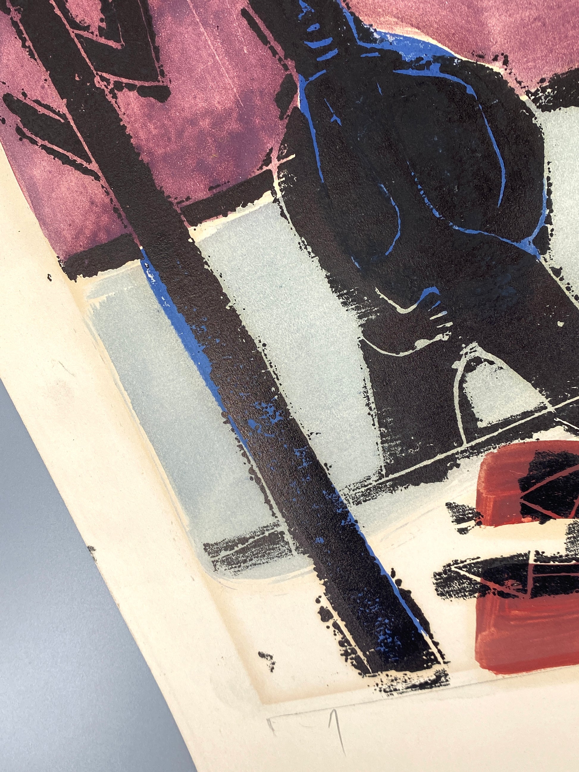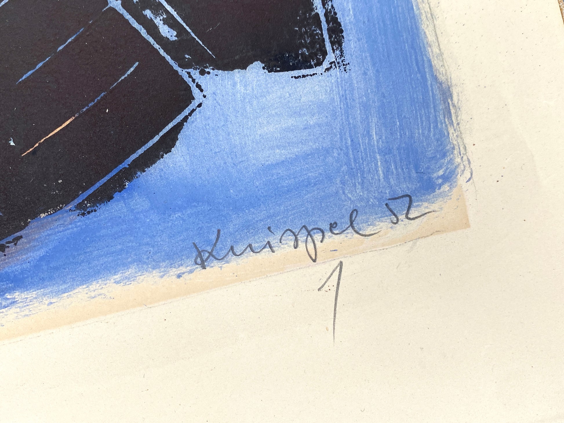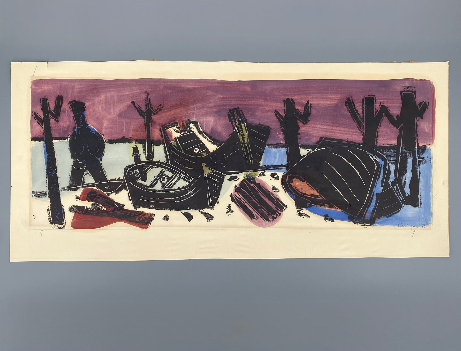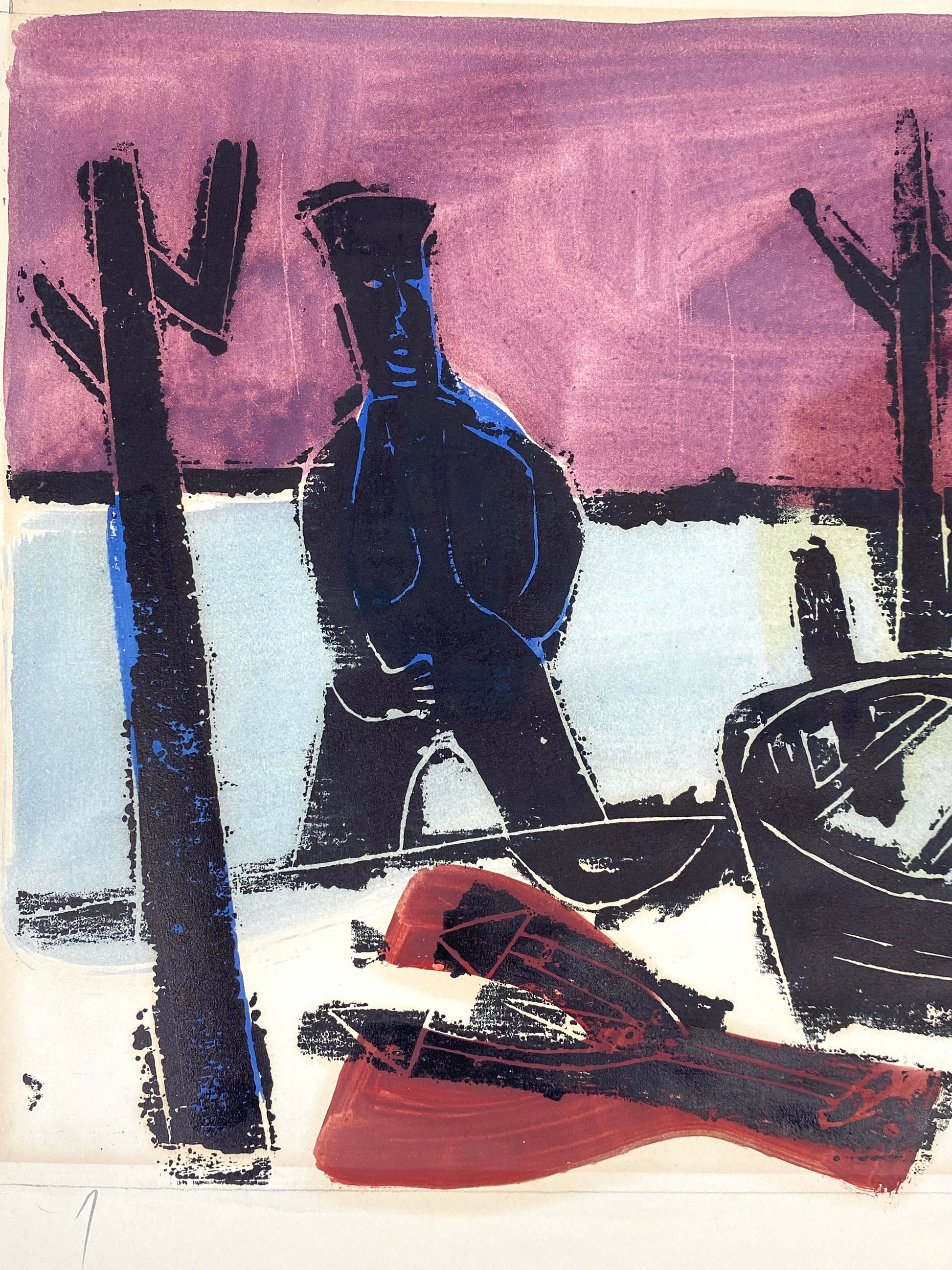 Monotypie und Gouache-Malerei "Am Steg" von Ulrich Knispel (1911–1978), 1952