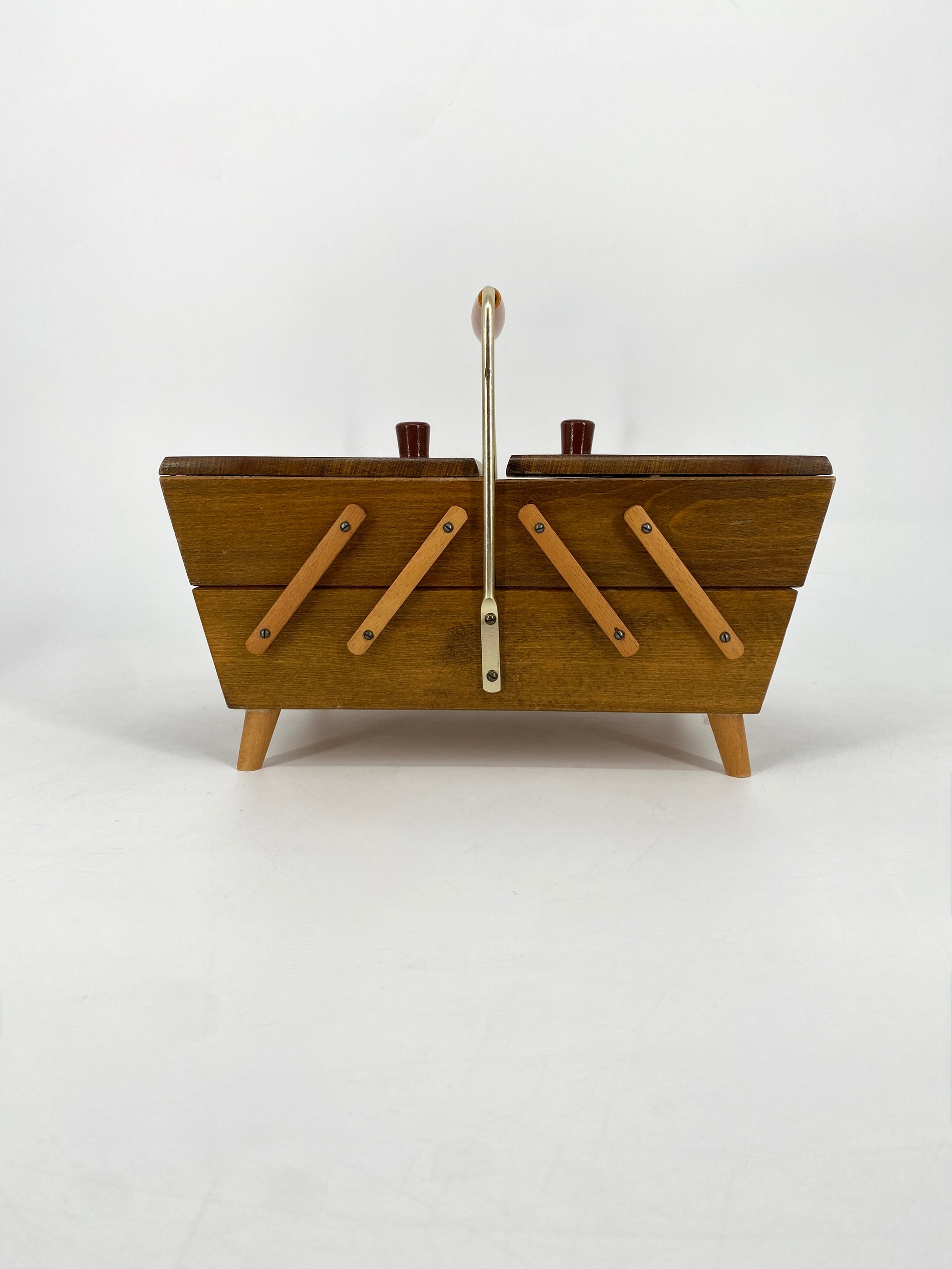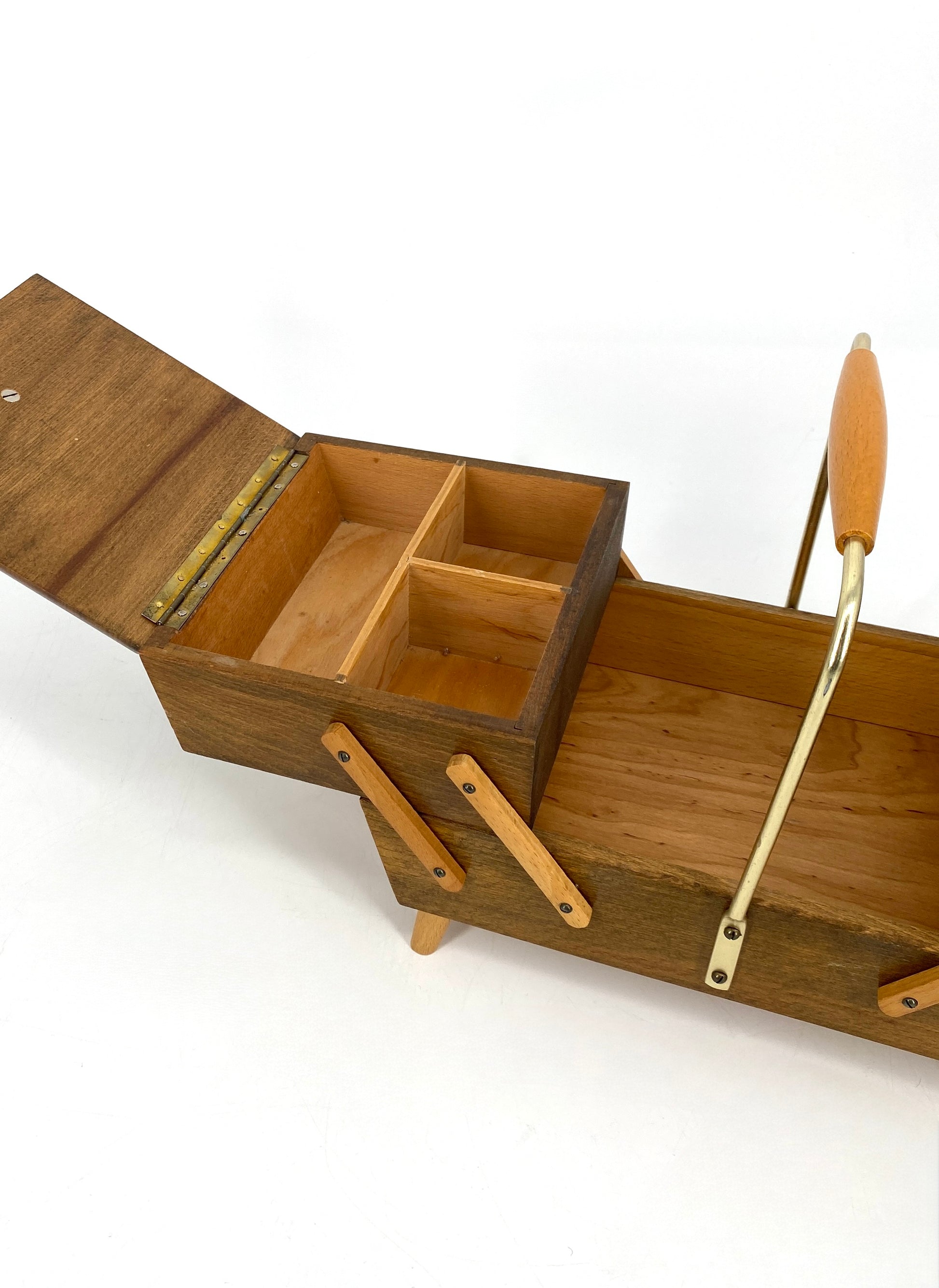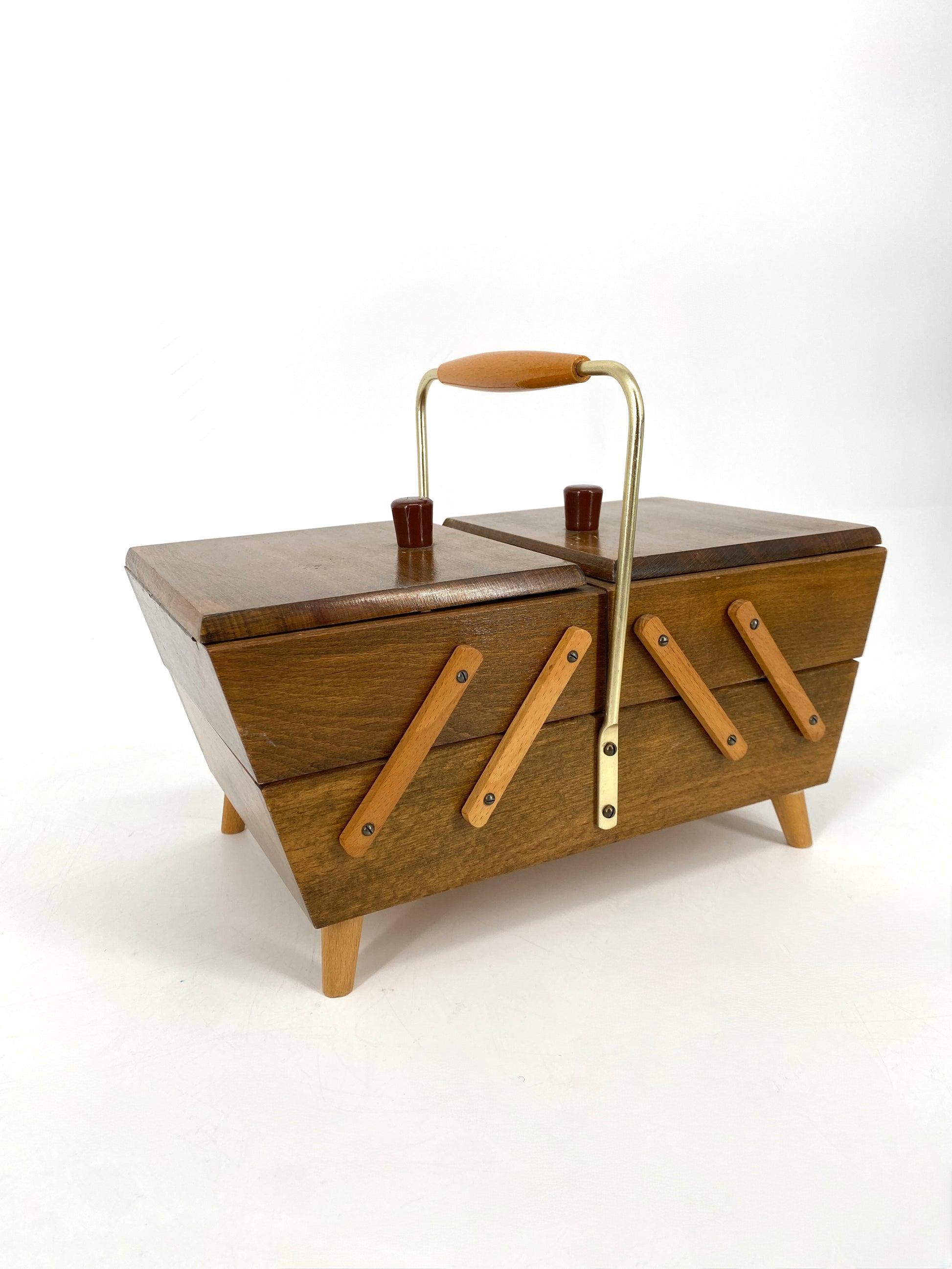 * NÄHKASTEN MID CENTURY HOLZ KISTE 2 ETAGEN 60er