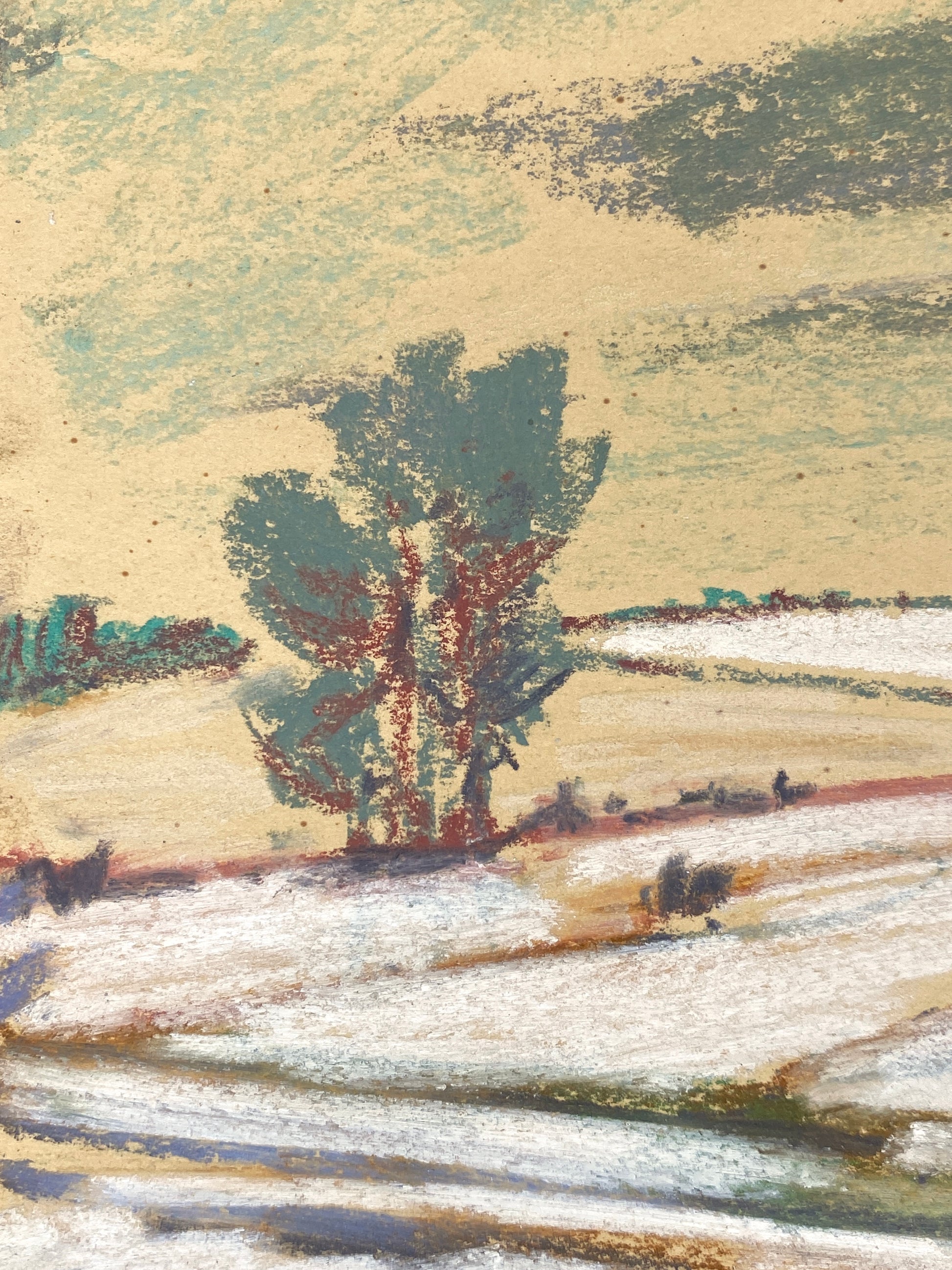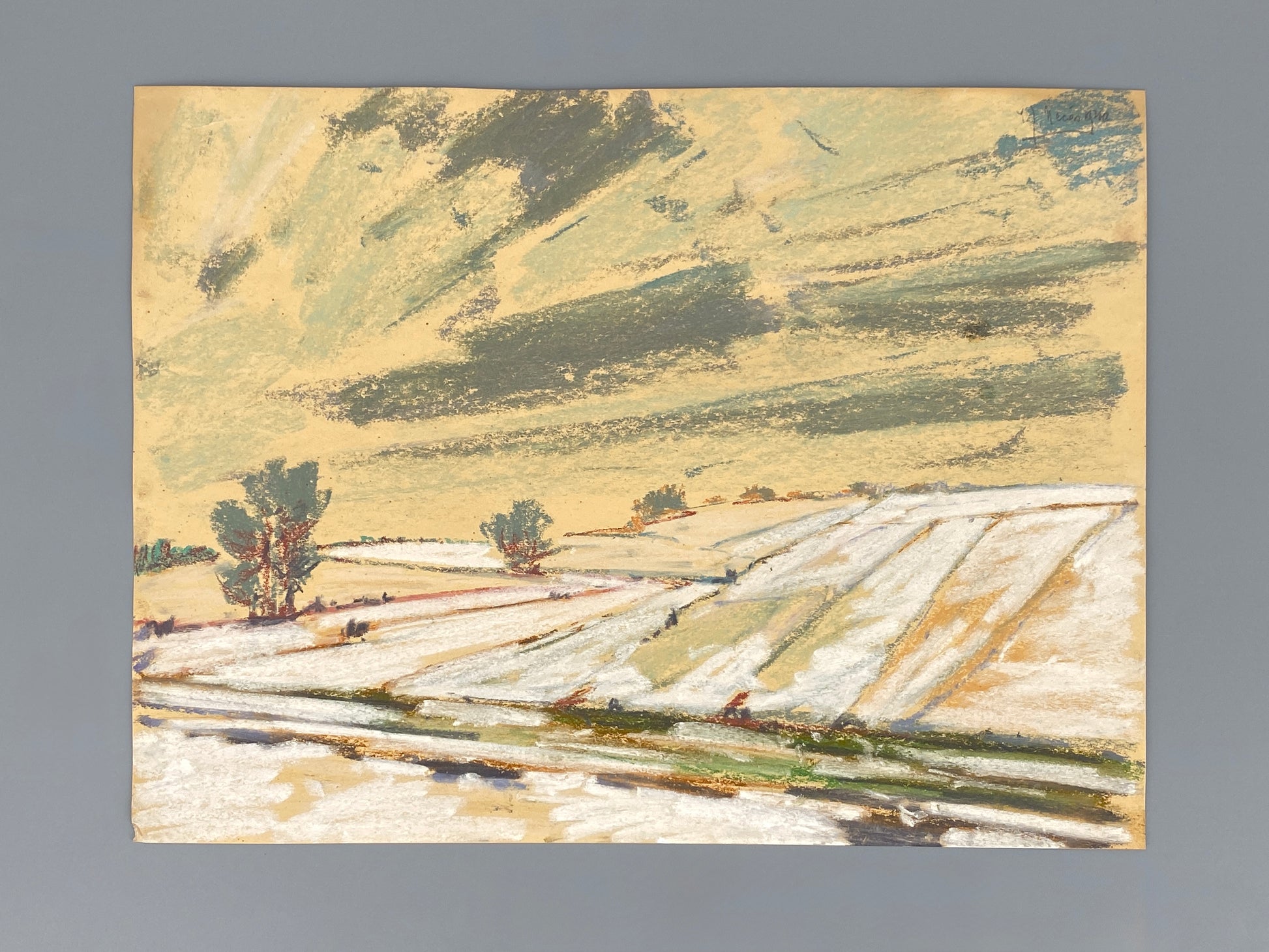 Sensitives Pastellgemälde einer Winterlandschaft von Emil Josef Nečas, 1940